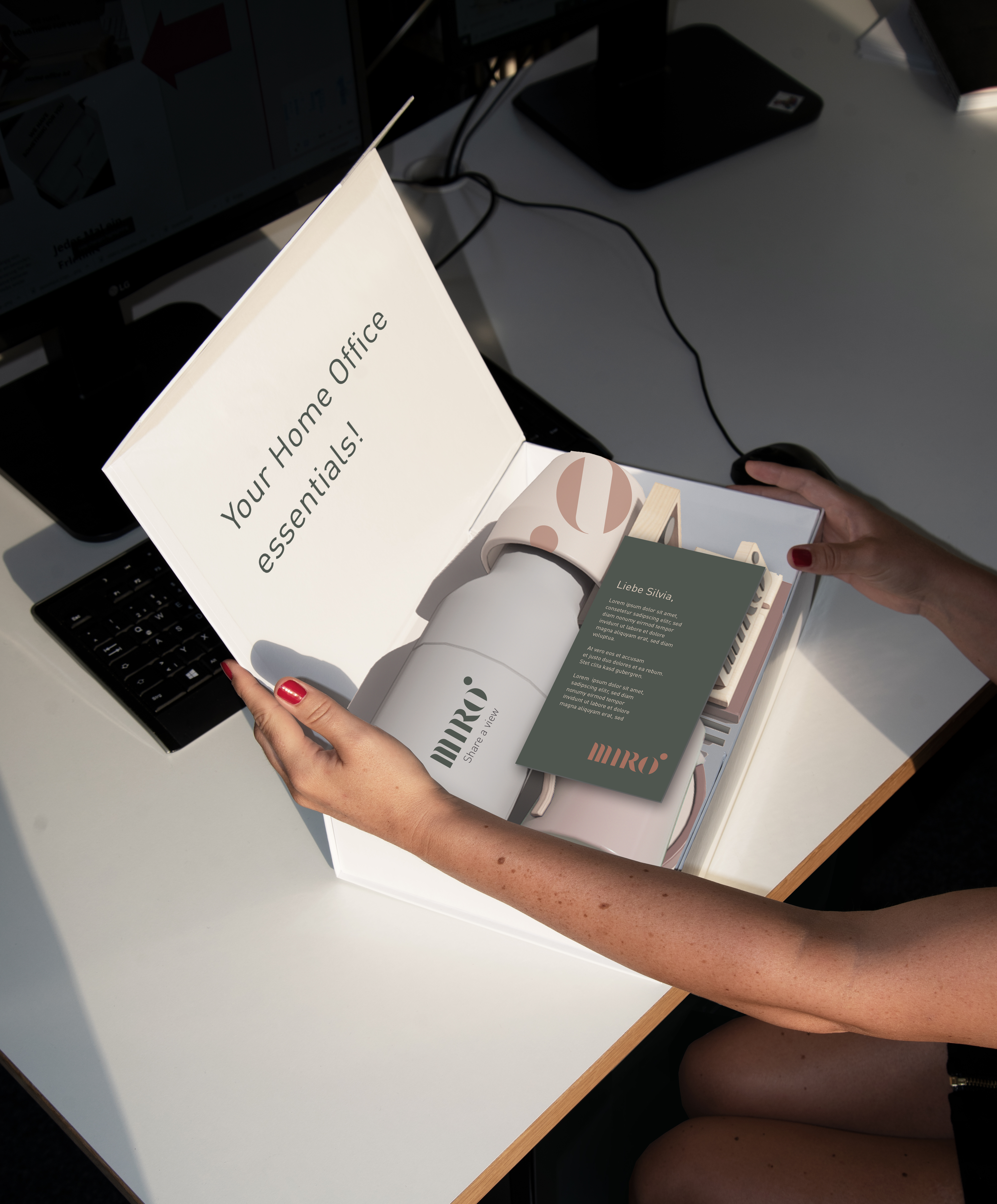 Haben Sie schon ein Gefühl für Ihre Brand-in-a-box bekommen? Wir lassen gerne unserer Fantasie freien Lauf und setzen Ihre Unternehmensphilosophie gekonnt in ein Home-Office-Kit um, das Ihre Professionalität unterstützt und Ihr Team gleichzeitig motiviert.