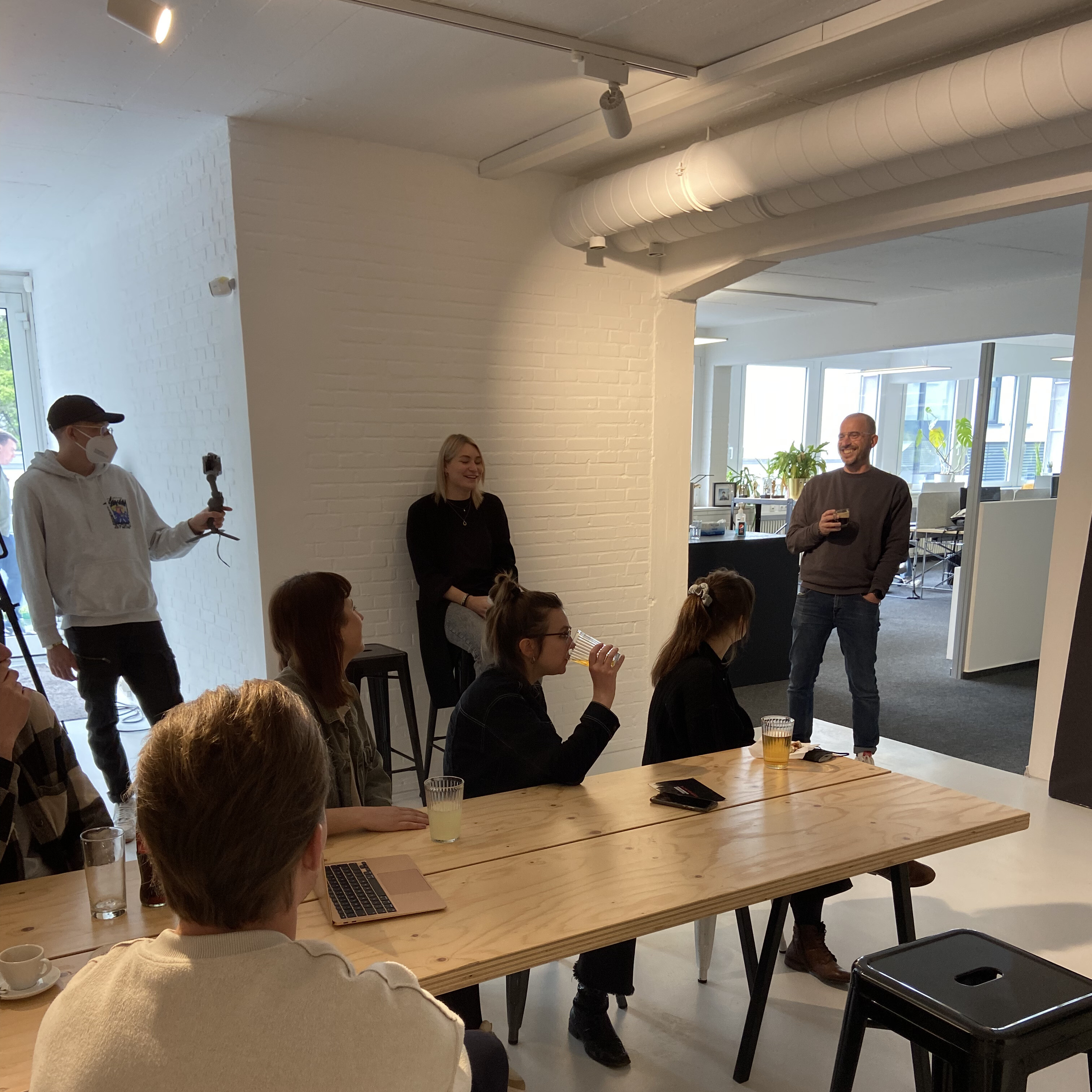 Das treibhaus bietet ausgewählten Kreativ-Konzeptioner*innen die Möglichkeit einer vielfältigen und praxisnahen dualen Weiterbildung im Agenturumfeld. Alle Teilnehmer*innen arbeiten in renommierten Partner-Agenturen deutschlandweit und in der Schweiz und treffen sich monatlich für ein verlängertes Wochenende voller Workshop- und Vortragsangebote an einem der Standorte. Im April durften wir - neben unseren Kolleg*innen von Voss+Fischer, die ebenfalls in Frankfurt ansässig sind und Peng Peng! in Wiesbaden - Gastgeber des aktuellen Jahrgangs sein, zu welchem auch unsere Junior Concept Developer Núria und Jens gehören.