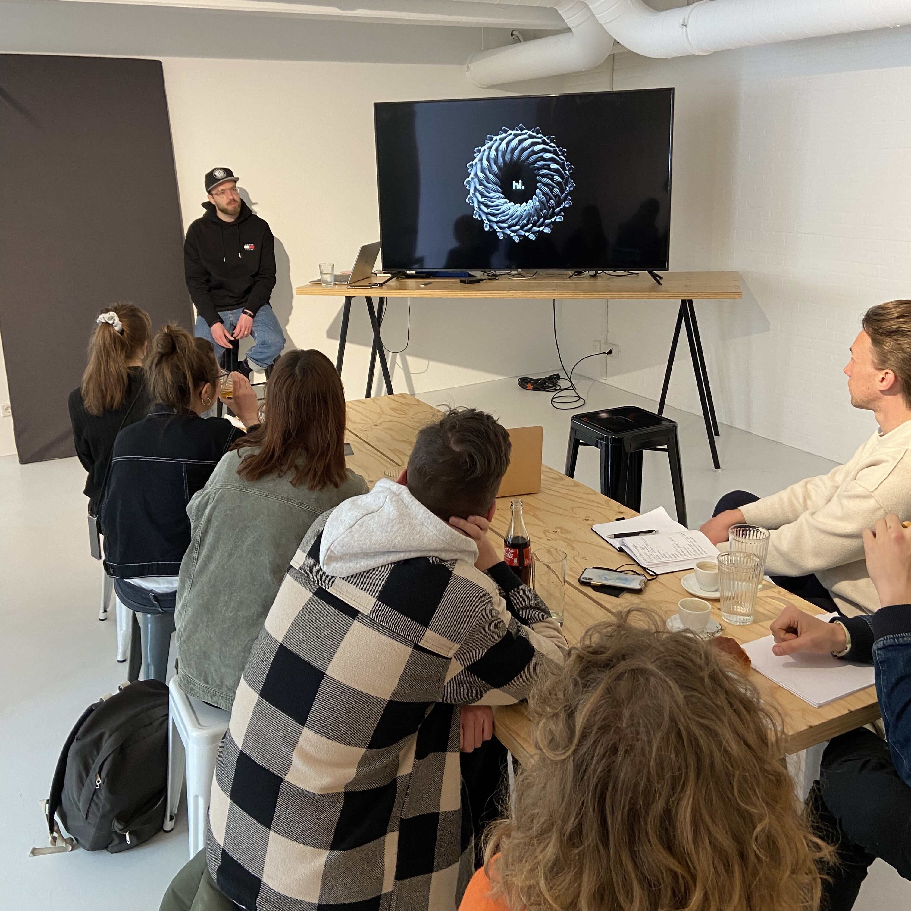 Der dritte Tag des Moduls stand gänzlich im Zeichen des Themas “Design”. Den Vormittag gestalteten die beiden ehemaligen Jazzunique-Mitarbeiter Damiano Ippolito und Giuliano Heil mit einer Speed-Session über Presentation Design. Die Zwillinge gaben dem Team ein umfassendes Toolkit zur Hand und ließen es sich nicht nehmen einige nützliche Handgriffe in Photoshop und inDesign aus dem Stegreif zu zeigen. Nachmittags lieferte Heike Schaffernicht - aus dem Hamburger Standort von Voss+Fischer - einen, mit persönlichen Anekdoten gespickten, Einblick in die Geschichte des Designs. Anschließend wurde gemeinsam auf den 30. Geburtstag von Janosch angestoßen, der sein Treibhaus beim Gastgeber des Tages - Voss+Fischer - absolviert.