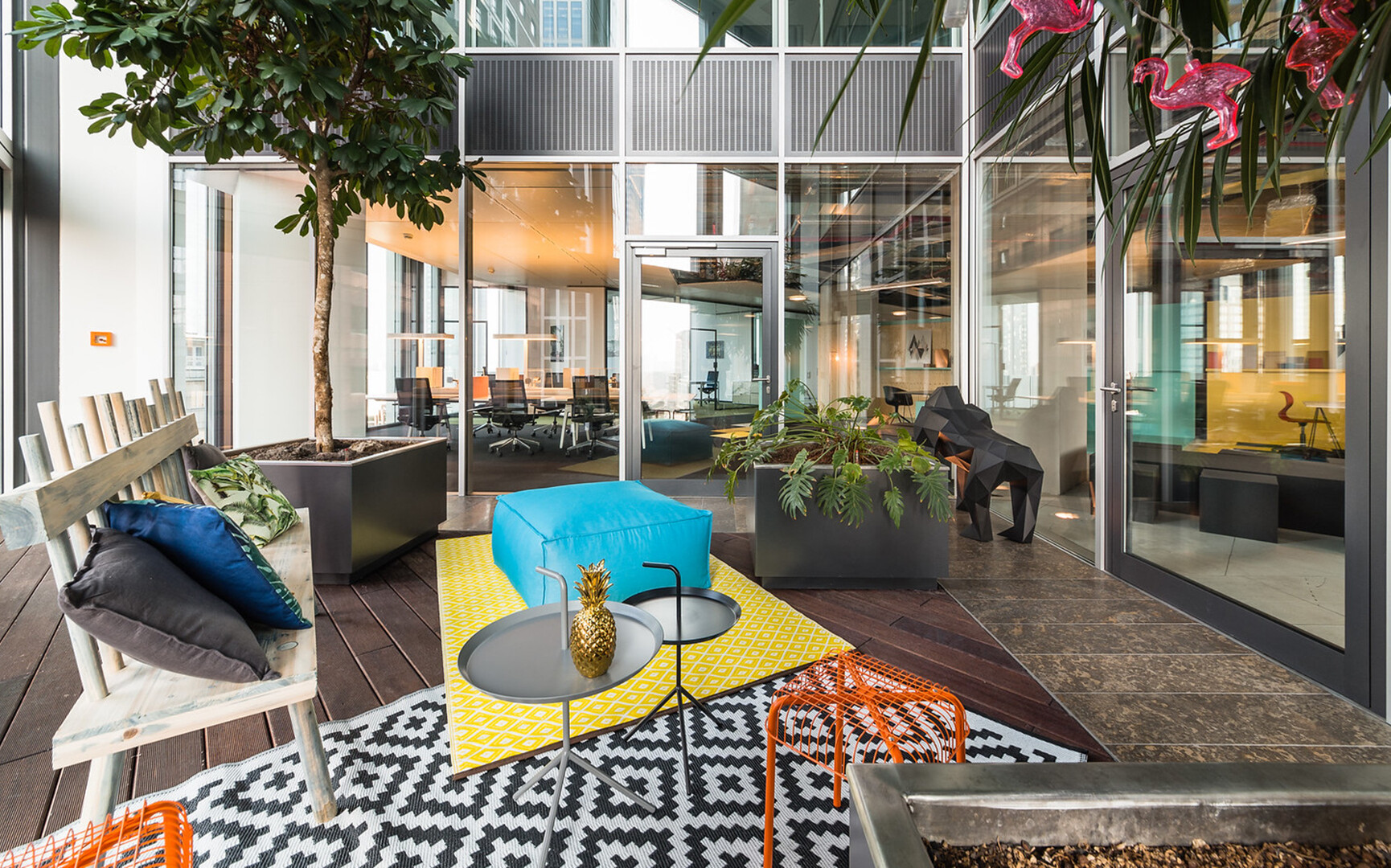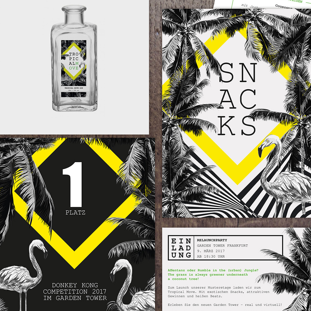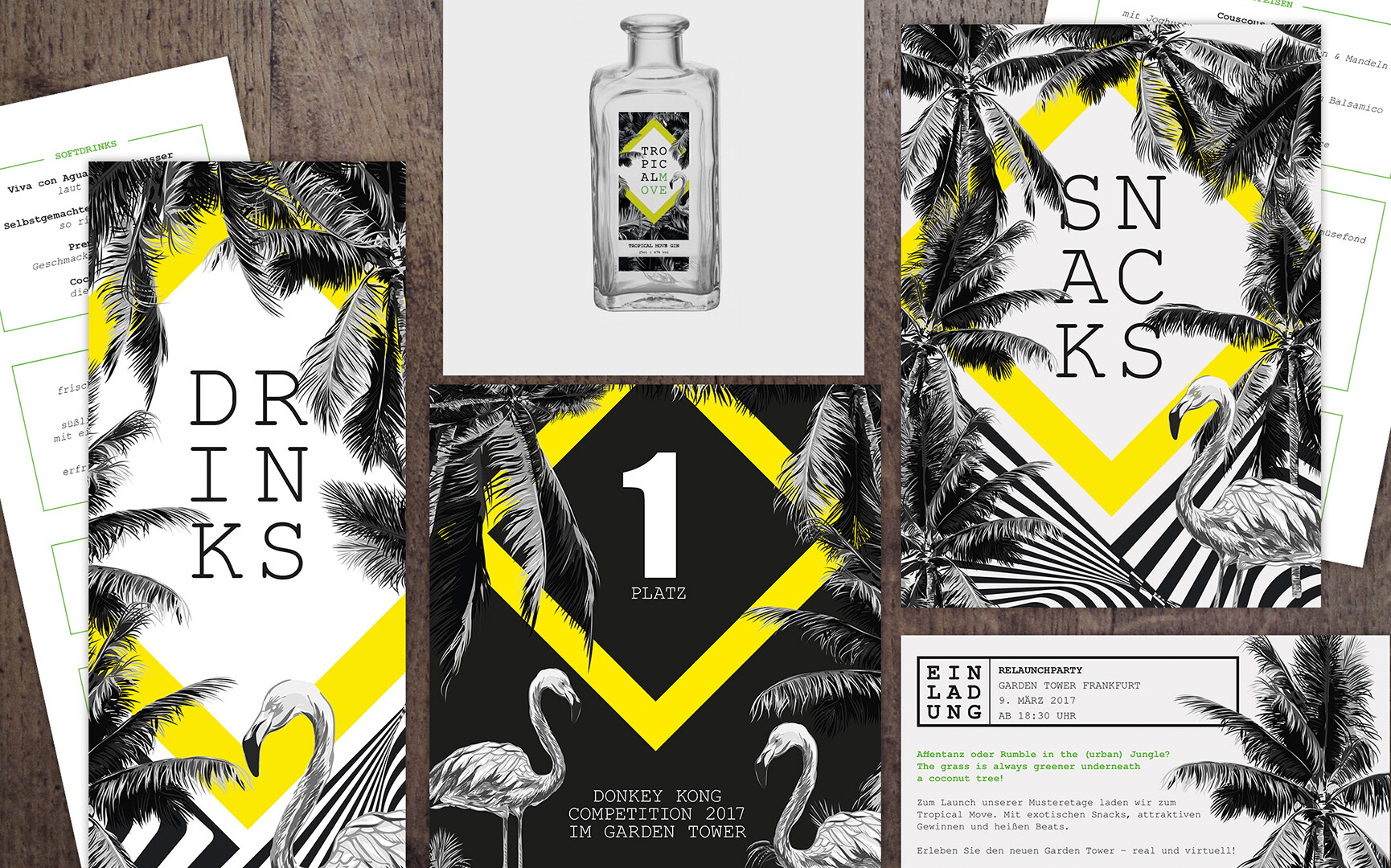 Inspiriert von den Wintergärten auf jeder Etage des Hochhauses floss bereits in die Gestaltung der Musteretage tropisches Flair ein. Seinen Höhepunkt fand das Thema in der Relaunch Party „Tropical Move“. Tropischer Regenwald traf hier auf urbane Bewegung und löste einen spannenden Kontrast aus. Smart und detailverliebt zog sich das Motto stringent durch das Event.