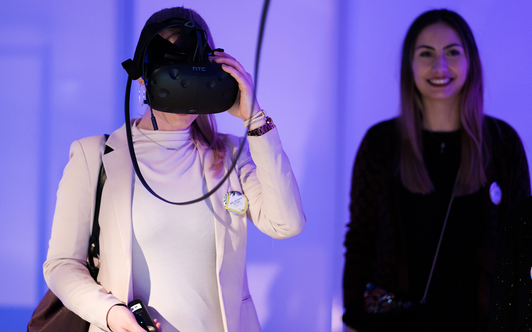 Einen besonderen Clou im Rahmen des Ausstellungserlebnisses stellt die dritte Musterfläche dar. Gemeinsam mit unserem Partner HH Vision erstellten wir hierfür digitale Bürowelten, die die Besucher an vier Terminals mit VR-Brillen erkunden können. Die Visualisierungen stellen die vollendete Bürowelt dar, die die Musterflächen anskizzieren.