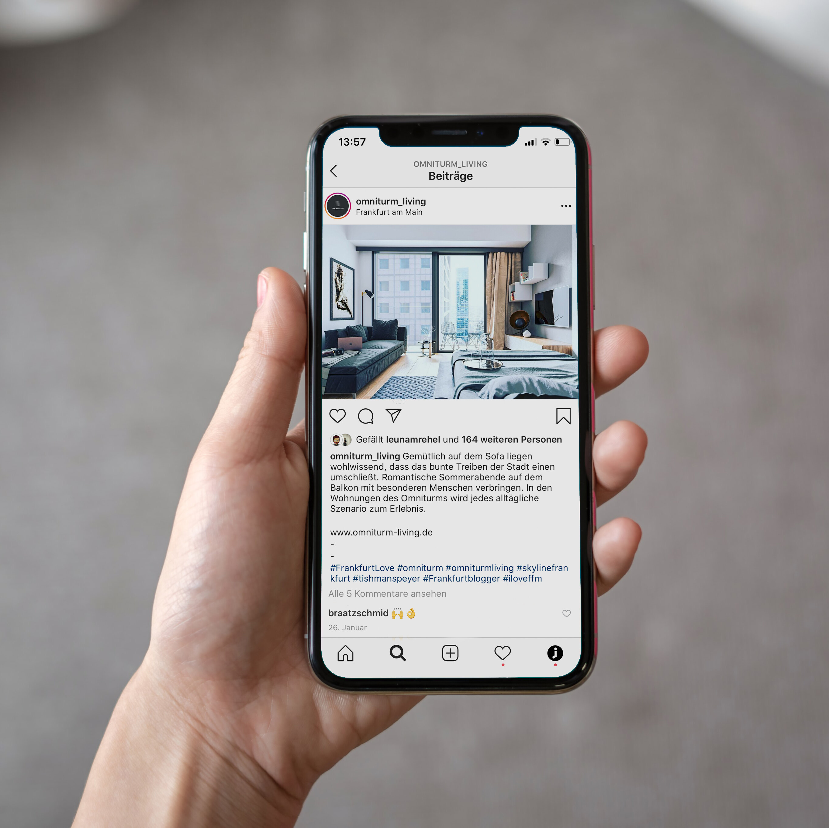 Durch die diversen Frankfurter Persönlichkeiten mit unterschiedlichen Hintergründen wurde die Vielschichtigkeit der Stadt selbst aber auch des Gebäudes selbst untermalt. Durch eindrucksvolle Bildsprache und überzeugenden Captions wurde der digitale Auftritt von Omniturm Living effektiv abgerundet.