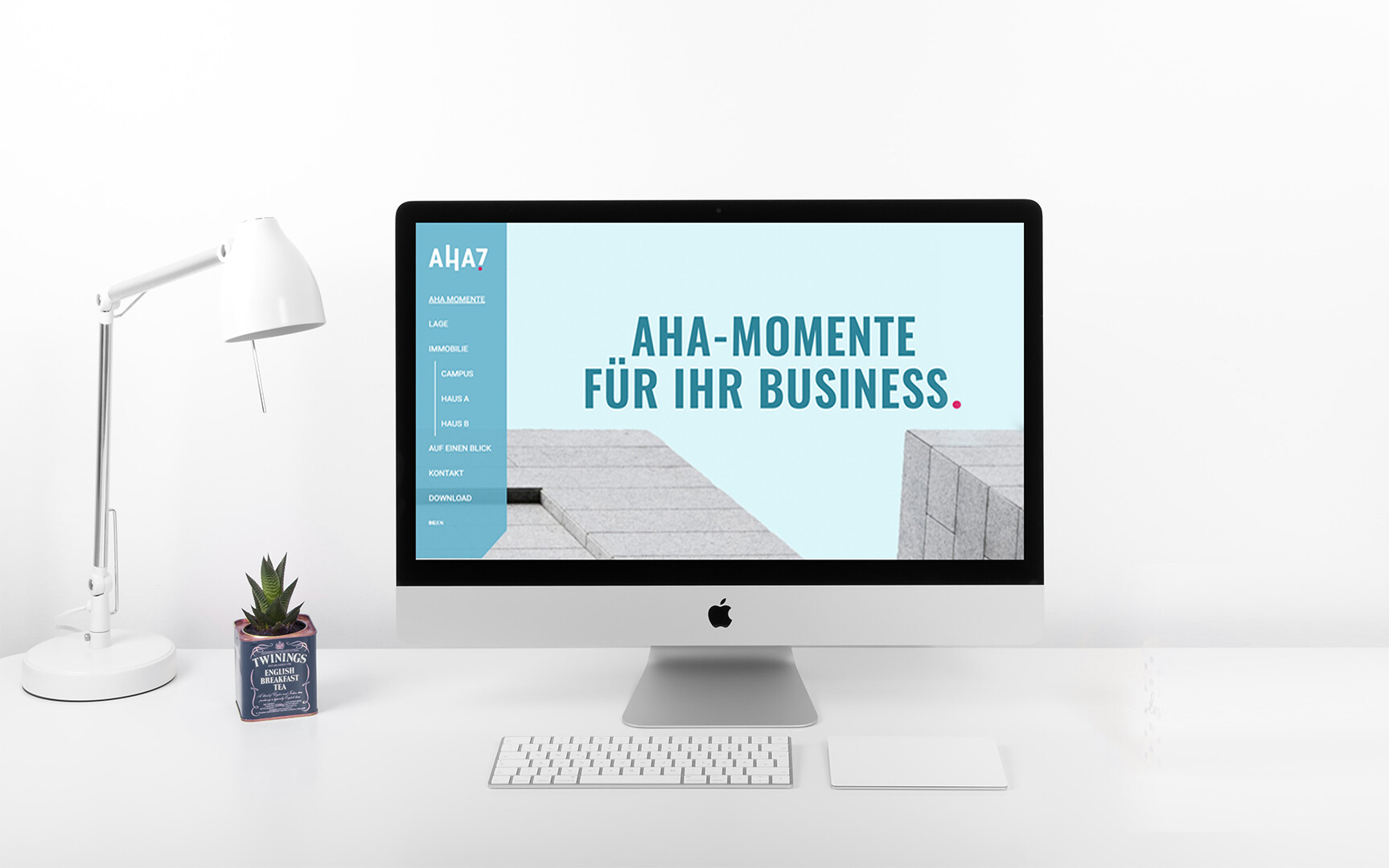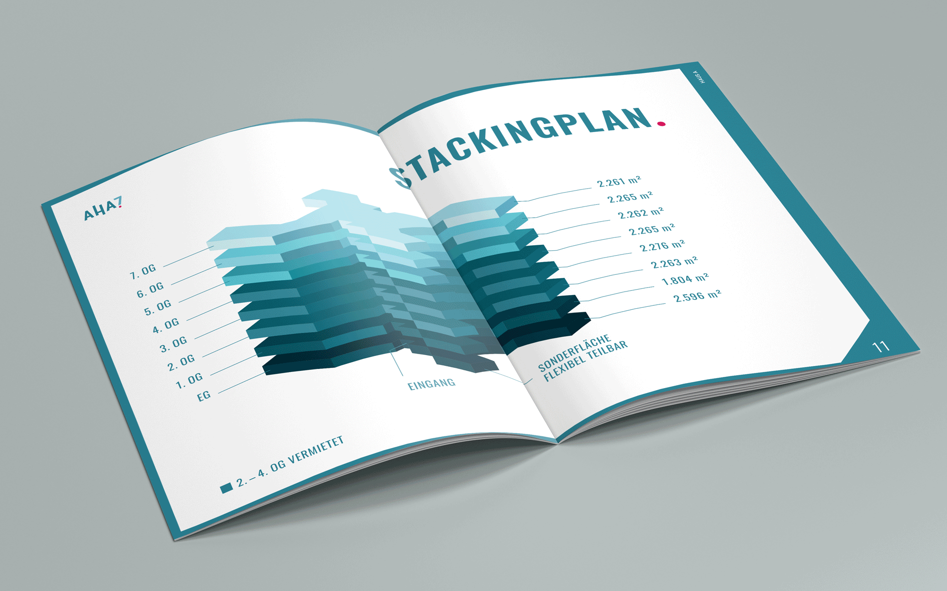 Für die Vermarktung des AHA7 wurde ein effizienter Mix aus analogen und digitalen Tools gewählt: Das digitale Exposé und die Website von AHA7 präsentieren die verschiedenen Attribute des Gebäudekomplexes durch klare Aussagen sowohl in der inhaltlichen als auch in der gestalterischen Ausarbeitung. Für die klassische Kommunikation entwickelten wir eine elegante Broschüre, die im Design perfekt mit allen anderen Maßnahmen harmoniert und somit adäquat (vor)ankündigt, was den Betrachter auf der Fläche erwartet.