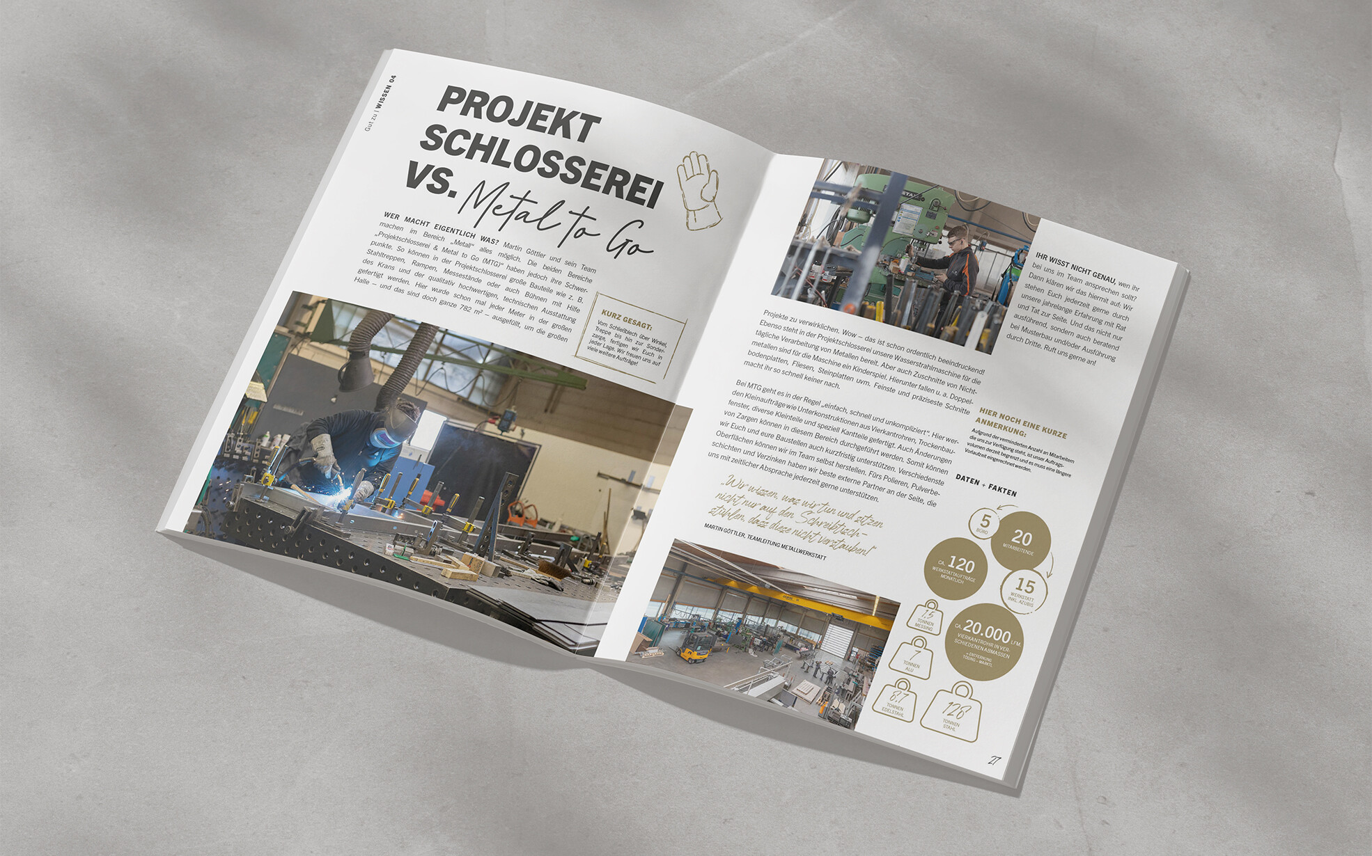 Unsere Leistungen umfassten die kreative Gestaltung und Begleitung des gesamten Prozesses, von der Definition der Gestaltungsgrundsätze bis zur Fertigstellung des Magazins.