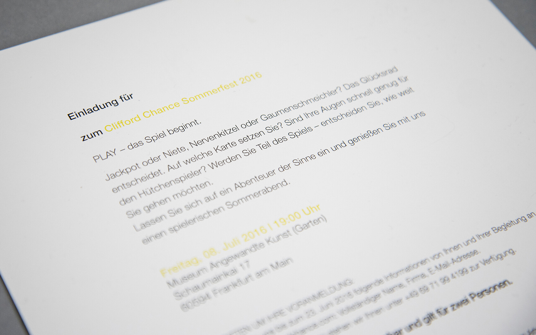 Mal ist es eine Reise zum Mond, mal in den Garten der glücklichen Zufälle – beim Sommerfest der Anwaltssozietät Clifford Chance entführte Jazzunique die Gäste jedes Mal in neue Welten. Dies gilt auch für das Design – hier erinnerte nichts mehr an das eher konservative Klischee der Branche. Verspieltheit, Kreativität und Mottotreue bestimmten die Gestaltung – so wurde die Einladungskarte kurzerhand zur Schallplatte oder der Veranstaltungsname stand plötzlich Kopf. Durch die visuellen Teaser stimmten wir die Gäste bereits auf die detailgetreue Themenwelt ein, die sie auf der Veranstaltung erwartete.