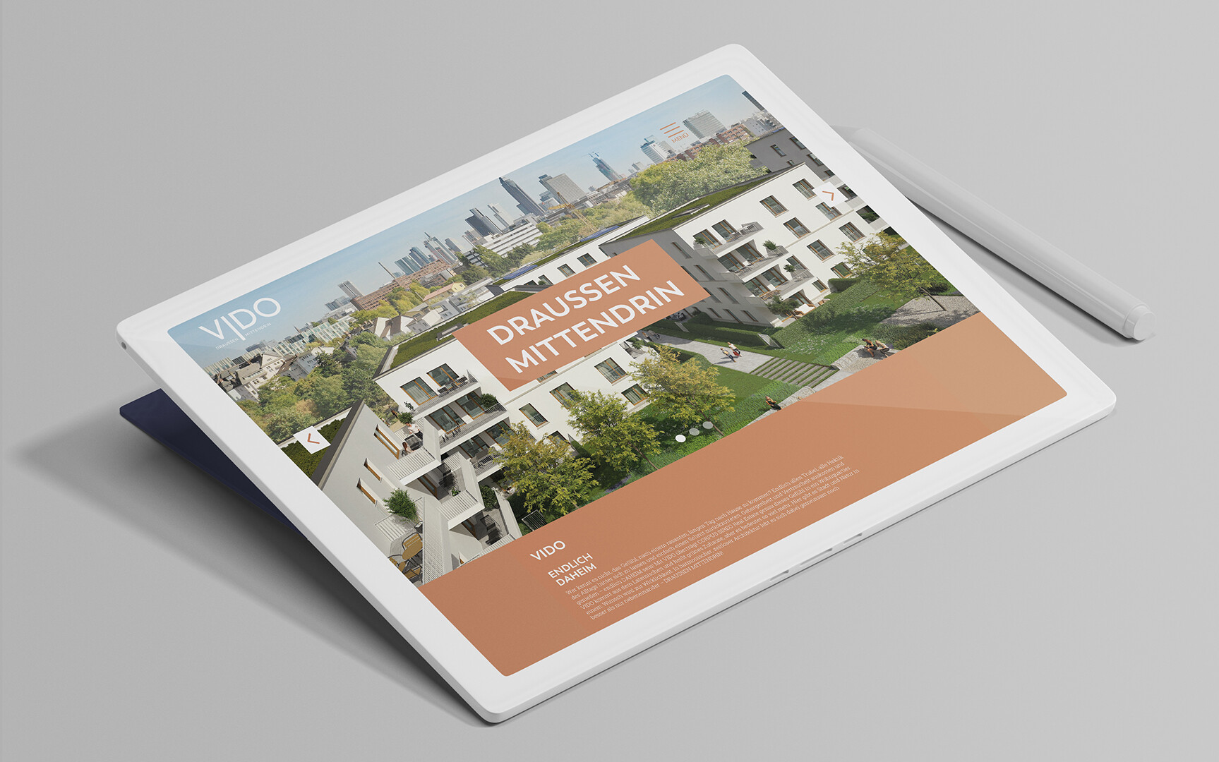Um die Vorteile der Immobilie zwischen Bockenheim und Rödelheim für potenzielle Mieter und Investoren auf den ersten Blick erkennbar zu machen, konzipierten und realisierten wir ein ganzheitliches Vermarktungskonzept mit unverkennbarem Design. In sämtlichen Kommunikationsmedien des "VIDO" werden im Magazin-Look neben der Immobilie verschiedene Lifestyle-Themen gespielt, um das künftige Lebensgefühl des neuen Zuhauses charmant zu transportieren.