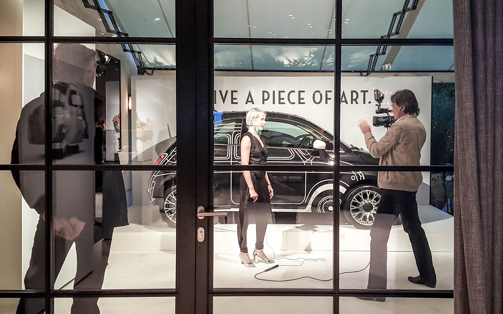 Im prestigeträchtigen Hotel „ZOO“ am Berliner Kudamm waren 250 Gäste geladen, um vor Ort das von einem der einflussreichsten Künstler, Industriedesigner und Architekten der Gegenwart designte Sondermodell des Fiat 500 „Ron Arad“ zu erleben. Unter dem Titel „Drive a piece of art“ wurde das außergewöhnliche Modell und die Marke Fiat mit den Kooperationspartnern AD-Magazin und Design Hotels AG in Szene gesetzt. Der Kern der Inszenierung war die Kreation eines „Gallery Space“, der die Hotelterrasse mit dem ausgestellten Sondermodell des Fiat 500 „Ron Arad“ und den Innenbereich mit den Exponaten in der „White Box“ in Verbindung brachte. Der Außenbereich des „Gallery Space“ bekam entsprechend ein überwiegend weißes Setup. Der Innenraum schien sich beim Eintritt durch großflächige weiße Teppichböden weit zu öffnen und bot zudem einen perfekten Rahmen für die spektakulären Exponate Arads mit dem Titel „IN REVERSE“.