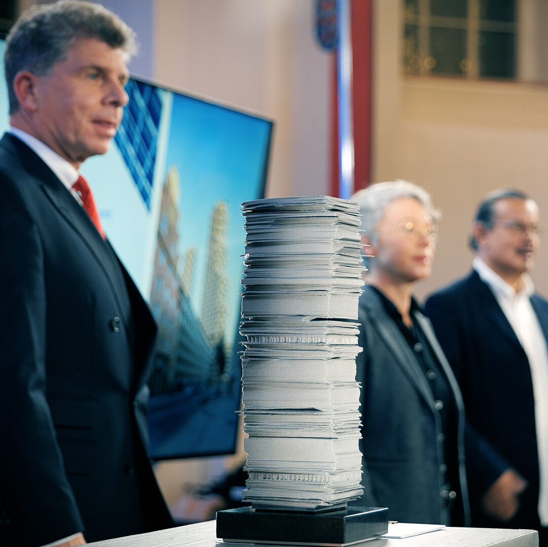 Von der Einladungsgestaltung über die konzeptionelle Betreuung und der technischen Durchführung bis hin zur kommunikativen Begleitung mit Social Media Content gestalten wir ein rundes Veranstaltungspaket für den renommierten Hochhauspreis.
