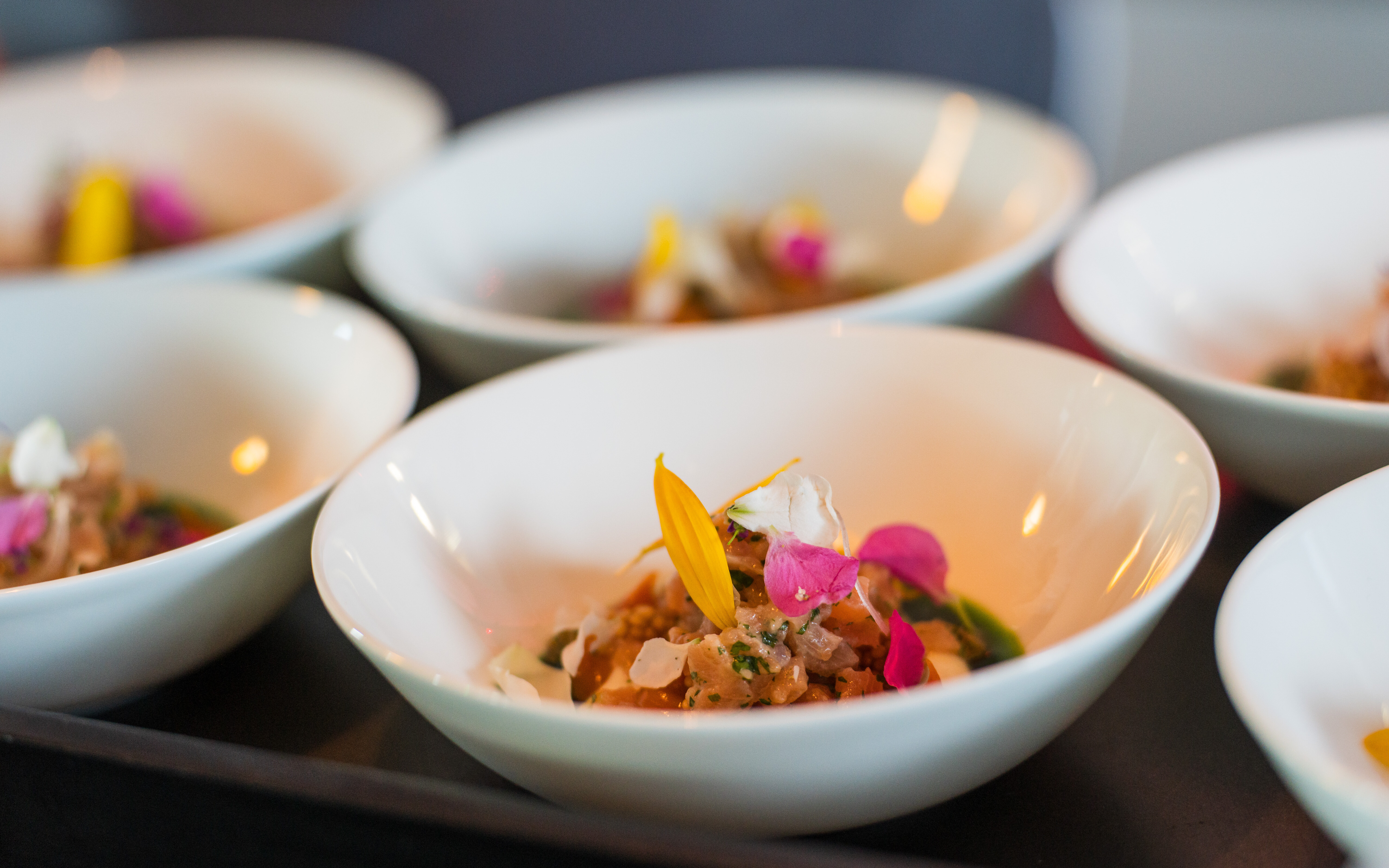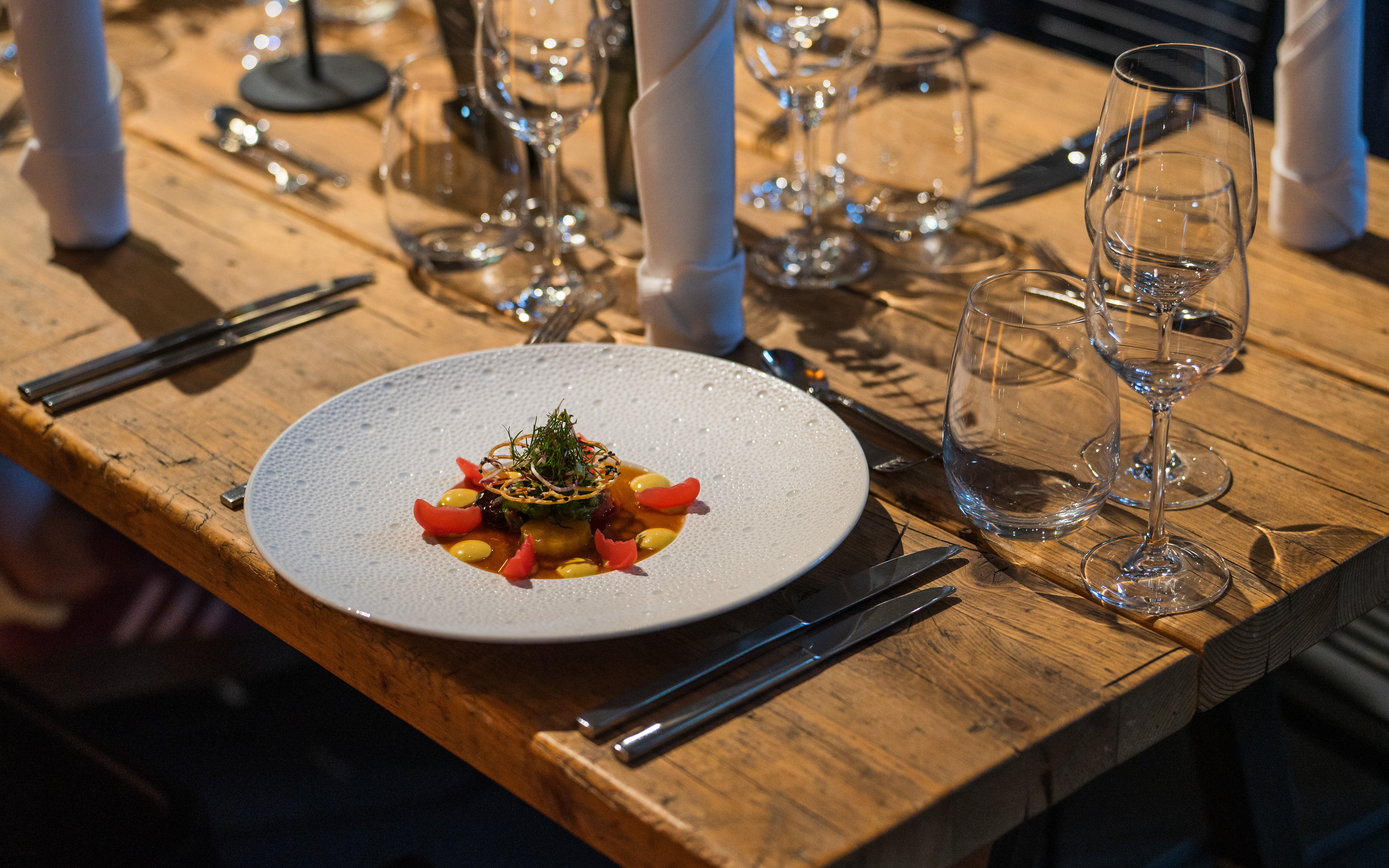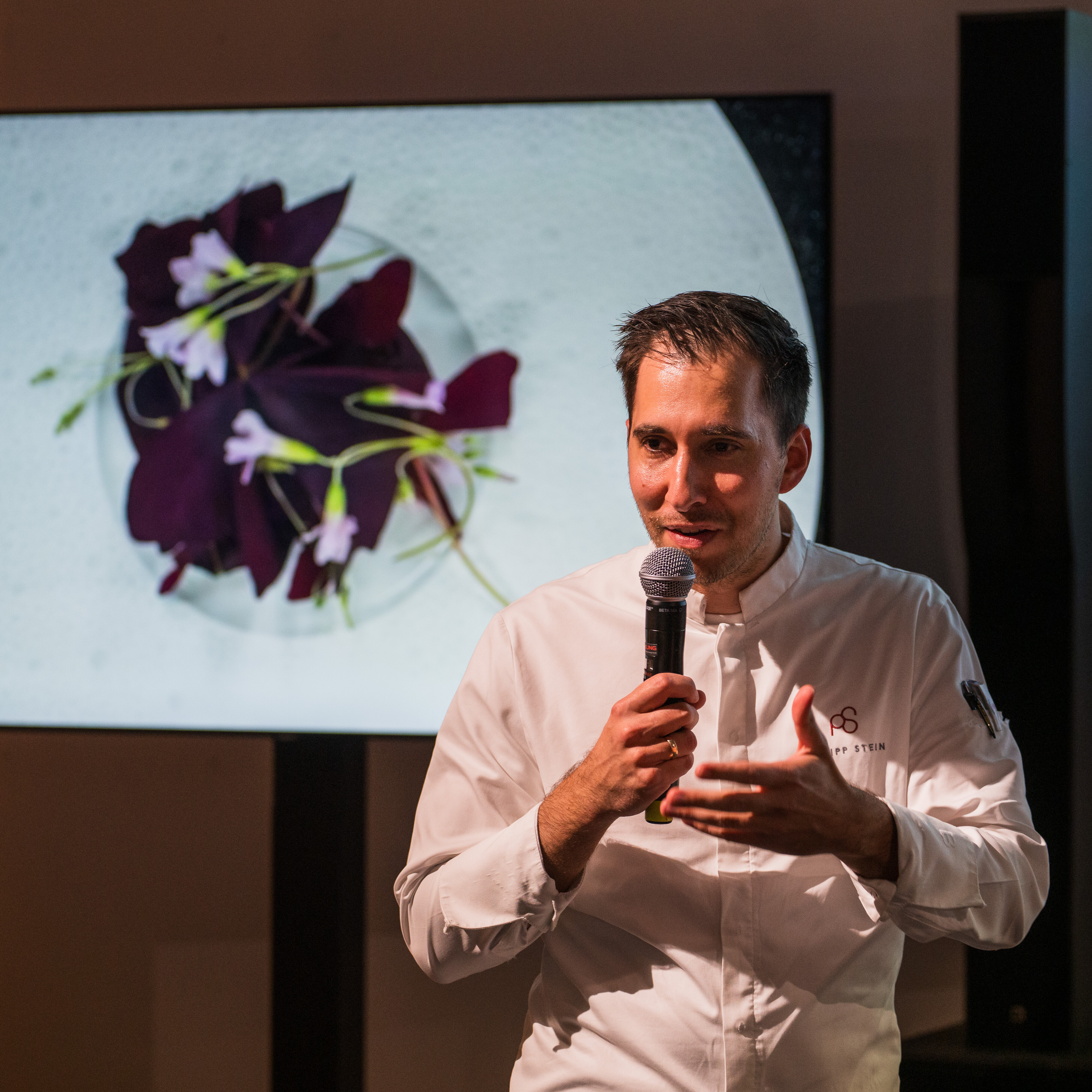 Die Umsetzung erfolgte in drei Phasen – Vorspeise, Hauptgericht, Dessert – mit jeweils eigener dramaturgischer und visueller Qualität. Während der Sternekoch Philipp Stein für die Speisen verantwortlich war, generierte der Künstler János Déri digitale Visualisierungen, die vor Ort eingebunden wurden. Jeder Abschnitt des Menüs brachte eine Veränderung mit sich – in der Bildsprache und in der Atmosphäre.