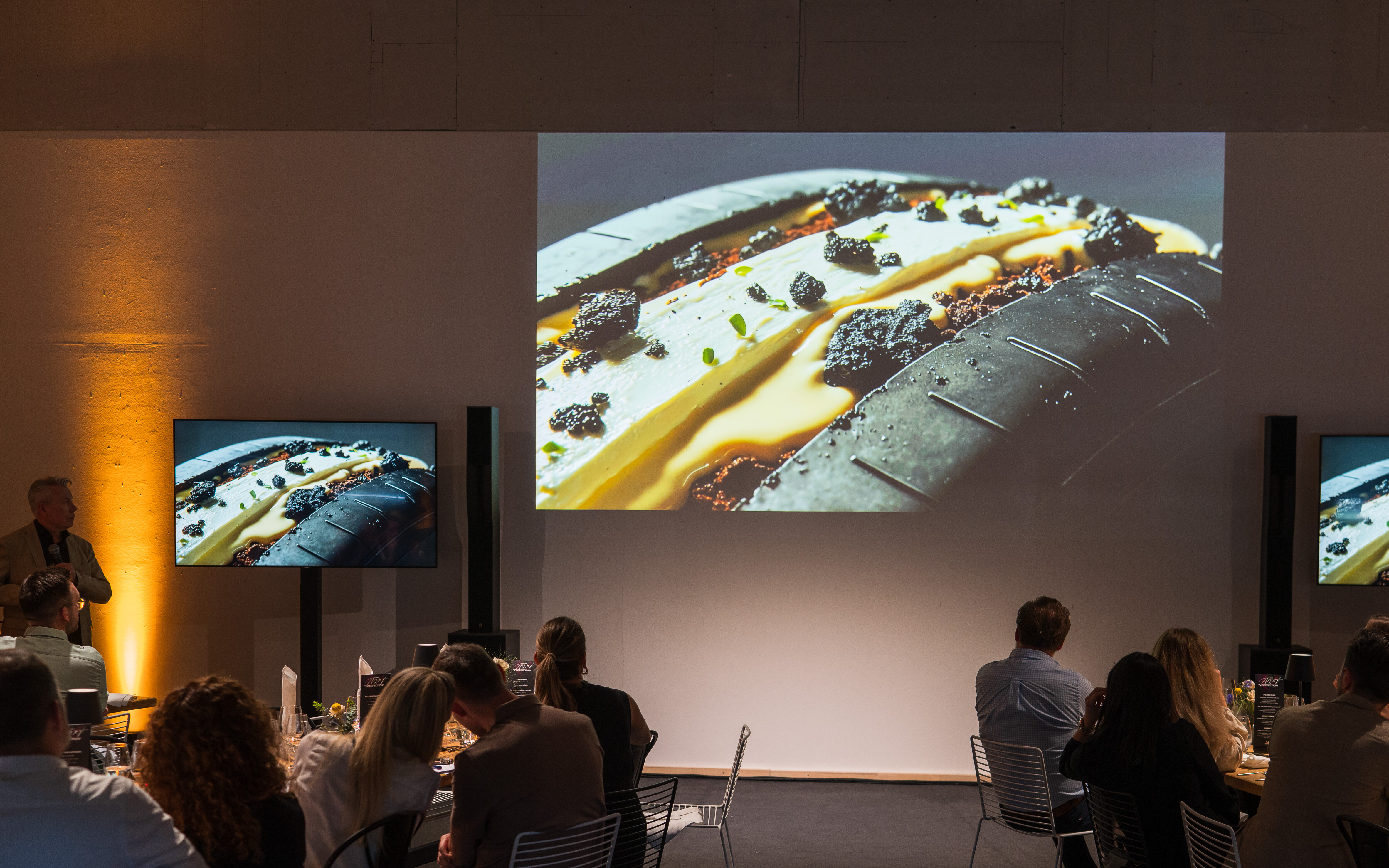 Perfektion ist kein Ziel, sondern ein Prozess – geprägt von Innovation, Handwerk und dem Mut, Neues zu schaffen. The Art of Perfection übersetzt diesen Gedanken in eine inszenierte Komposition aus Kulinarik und digitaler Kunst. Ein Koch auf Sterne-Niveau und ein Digital Artist traten dafür in einen gestalterischen Dialog: Jeder zubereitete Gang wurde zur Inspirationsquelle für eine visuelle Interpretation – visualisiert durch KI-basierte Inhalte, abgestimmt auf den Ablauf vor Ort. Aromen, Texturen und Kompositionen flossen in Farbflächen, Kontraste und Bewegungen ein. Kulinarik und digitale Kunst reagierten aufeinander, synchronisiert in Ablauf und Ausdruck.