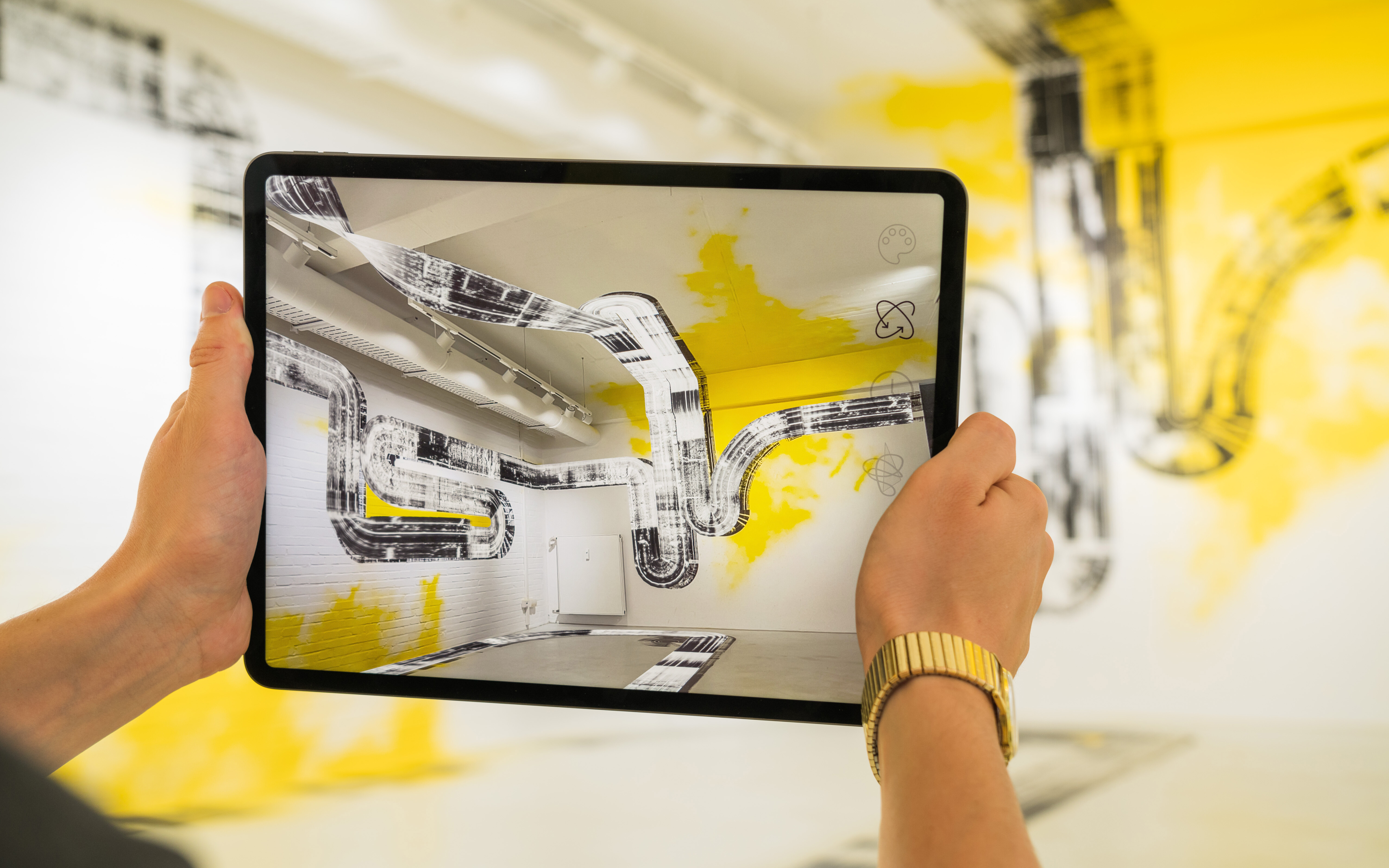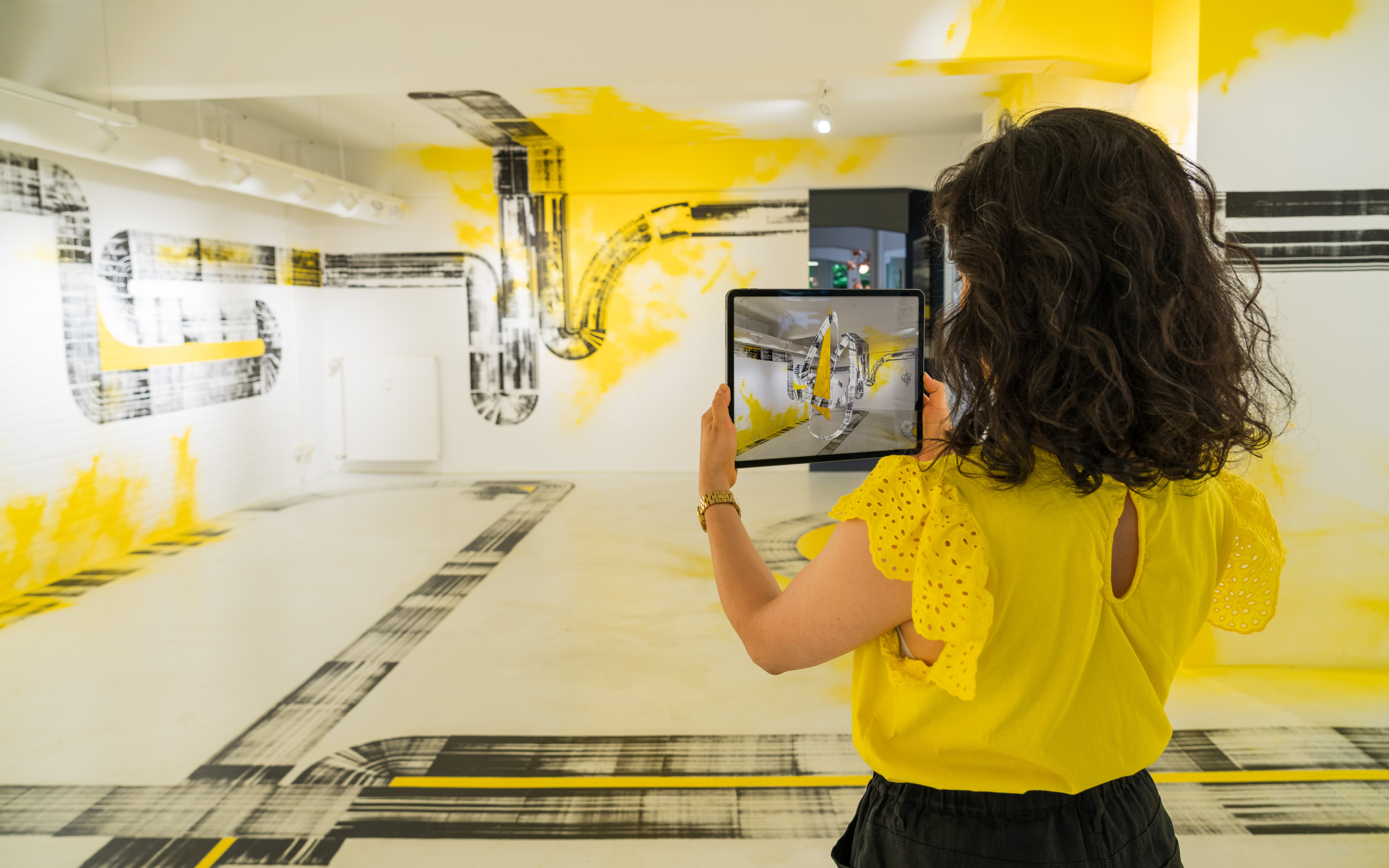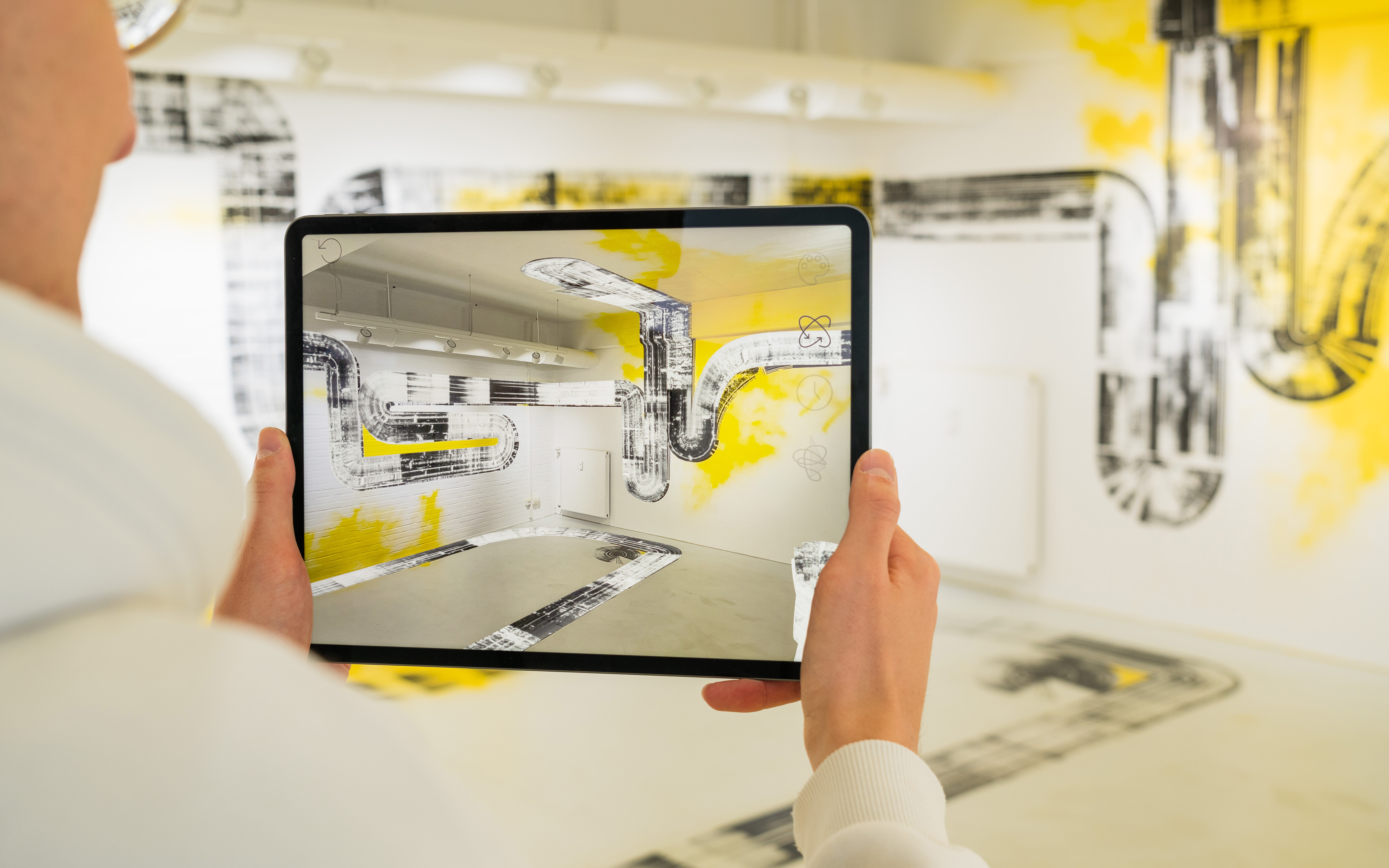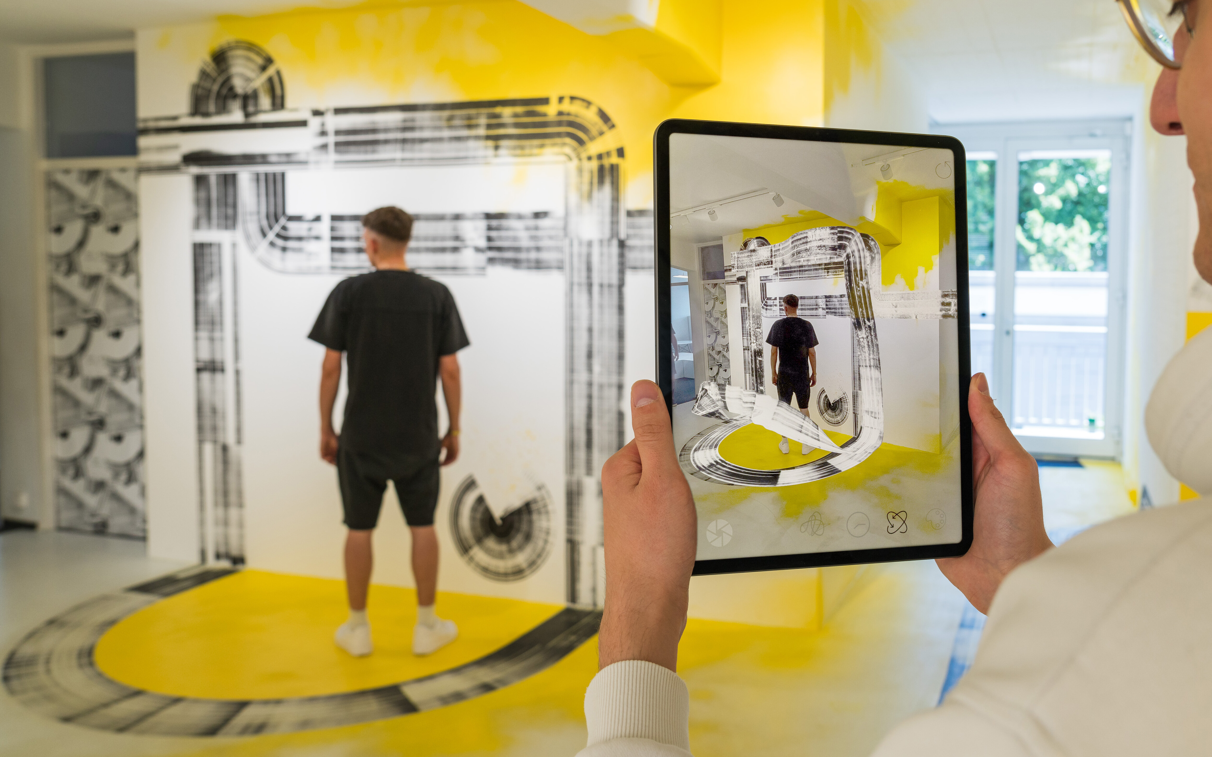 bright!, the design and technology studio based near Frankfurt, was responsible for completing the work of art. For this purpose, the last phases of the spatial design were created digitally by 3D designers and expanded into the room. Under the guidance of Engin Dogan, bright! a result was achieved that could be experienced both two-dimensionally and three-dimensionally using augmented reality technology. The processing mixed different states of the creation process with content that can be experienced purely digitally and thus formed the final link between the past, present and imagined hybrid future of the artwork.