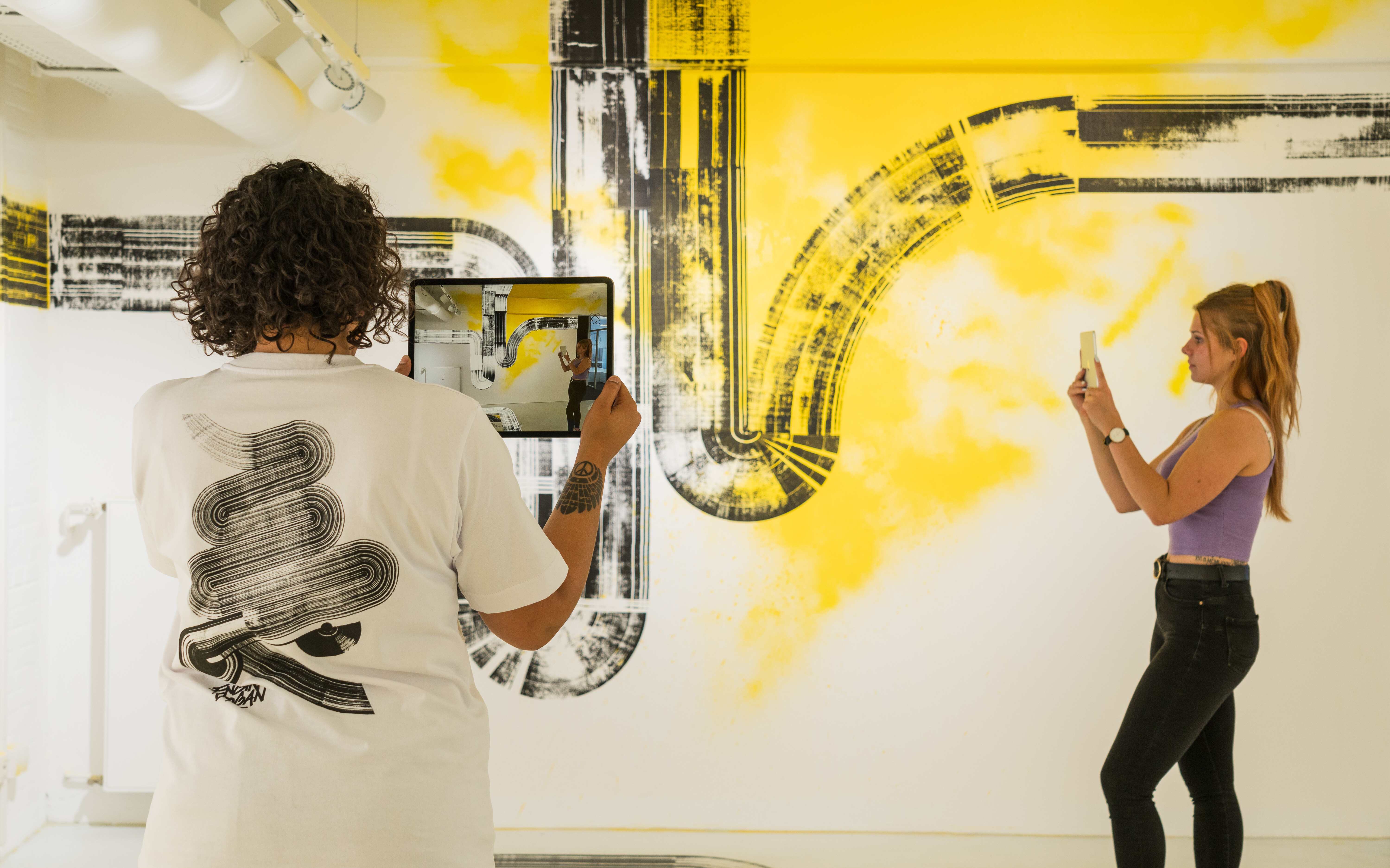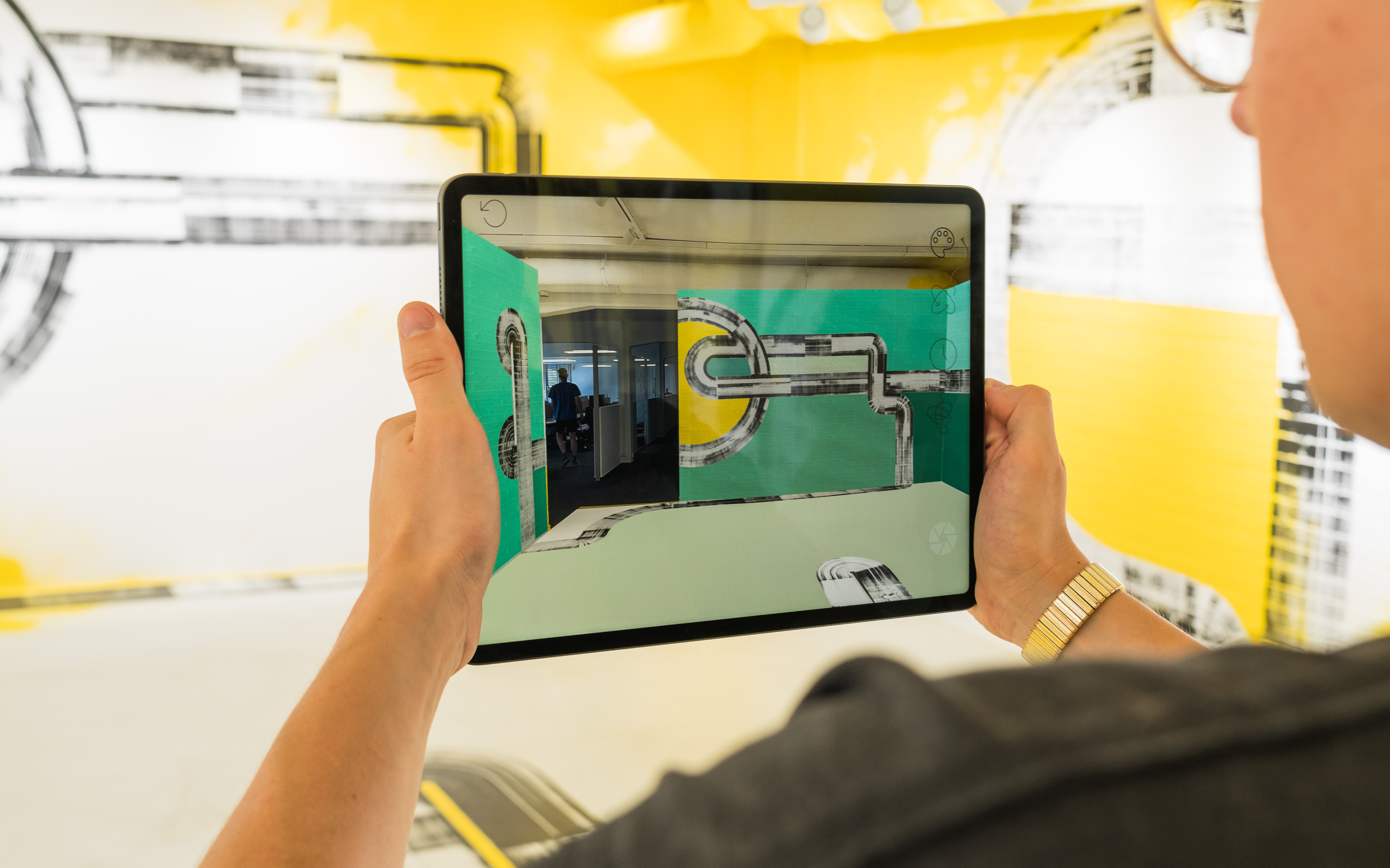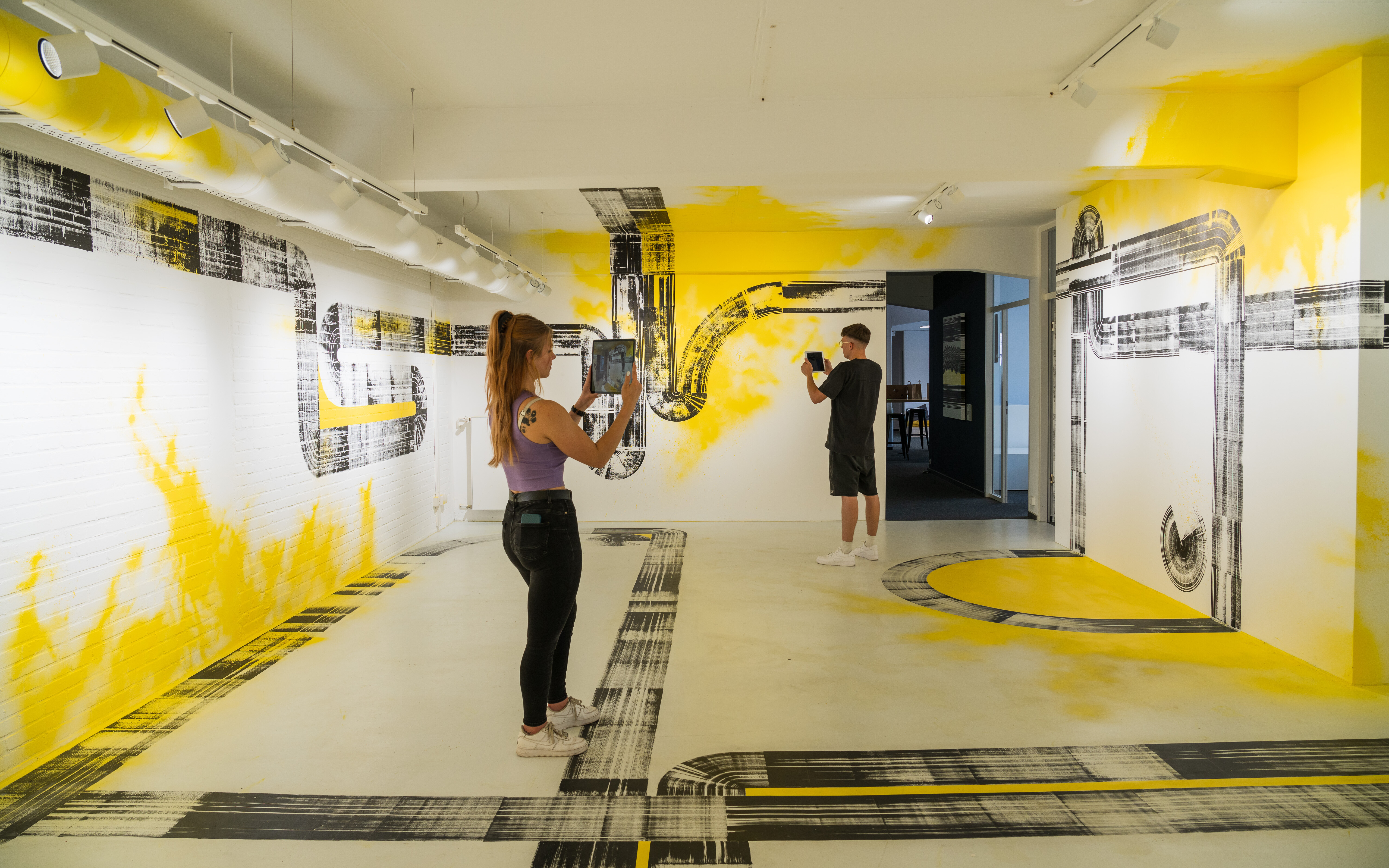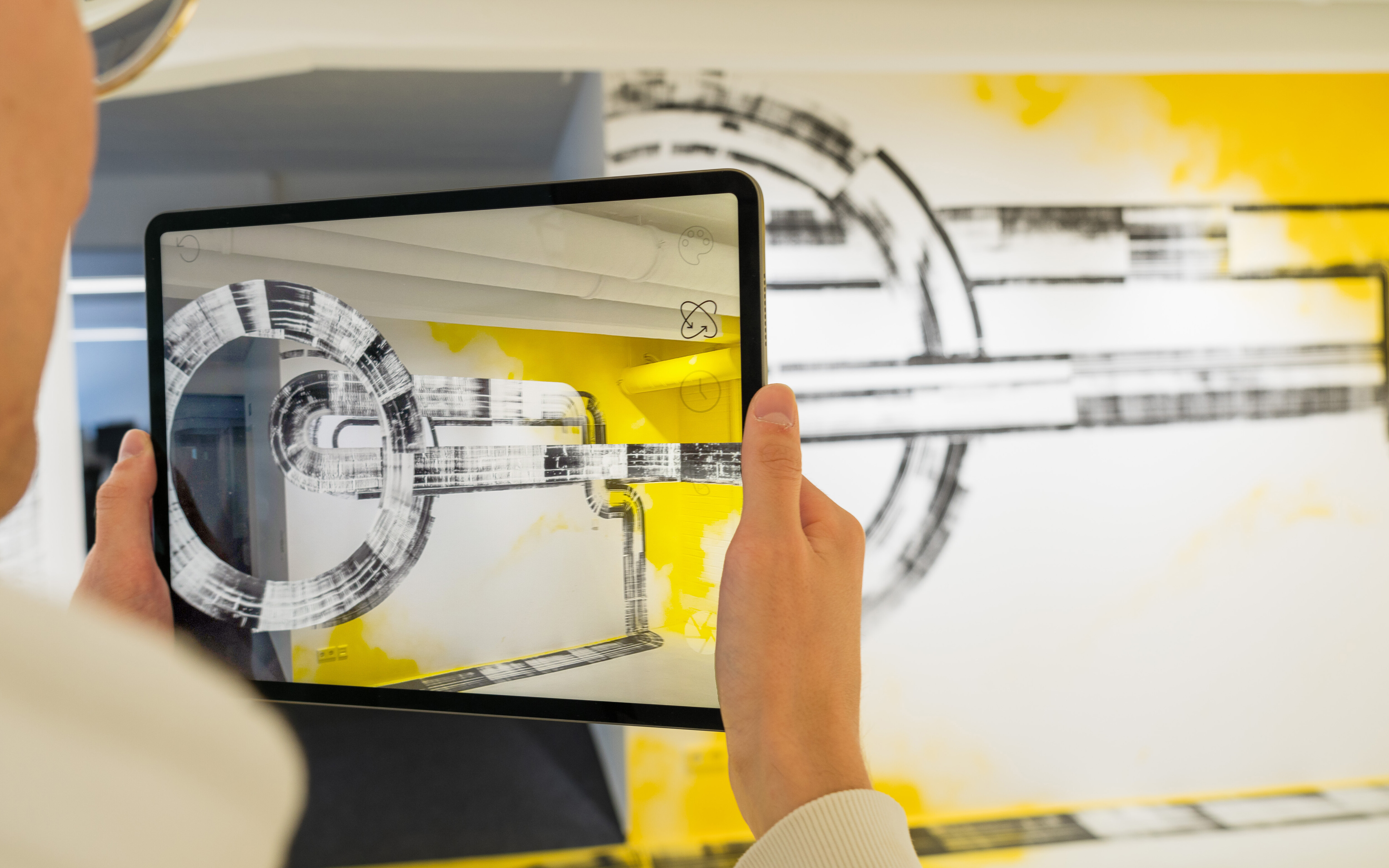 bright!, the design and technology studio based near Frankfurt, was responsible for completing the work of art. For this purpose, the last phases of the spatial design were created digitally by 3D designers and expanded into the room. Under the guidance of Engin Dogan, bright! a result was achieved that could be experienced both two-dimensionally and three-dimensionally using augmented reality technology. The processing mixed different states of the creation process with content that can be experienced purely digitally and thus formed the final link between the past, present and imagined hybrid future of the artwork.