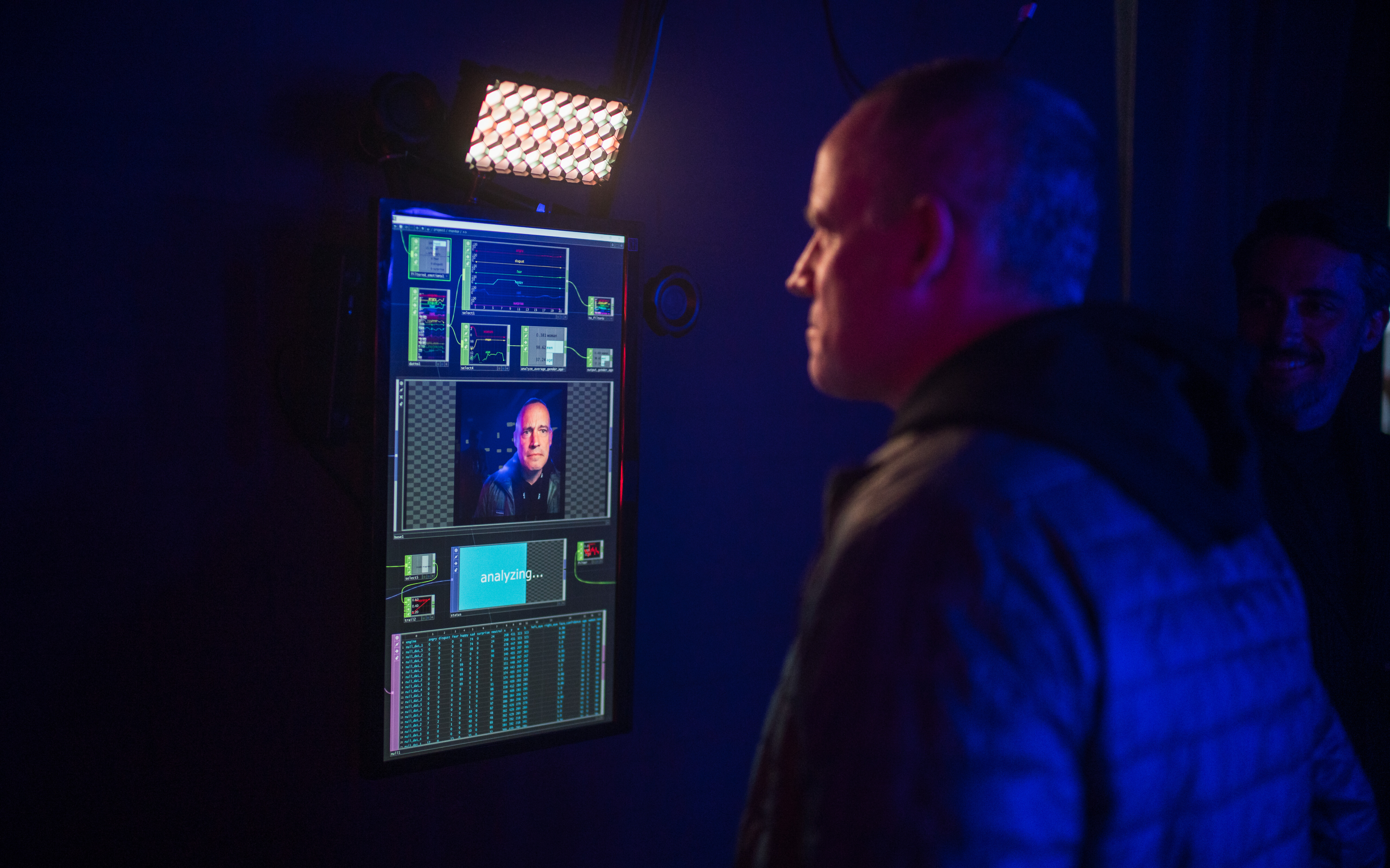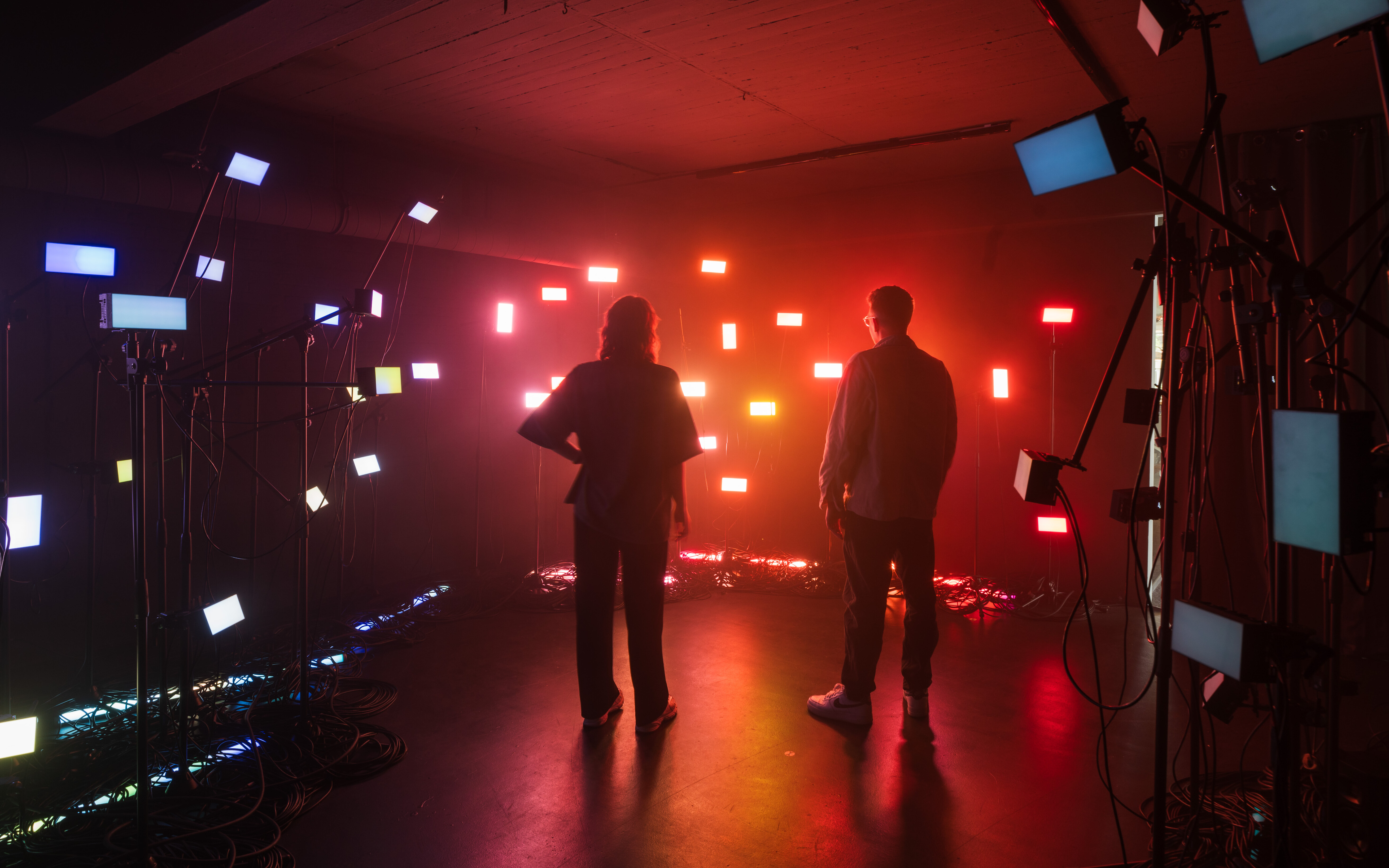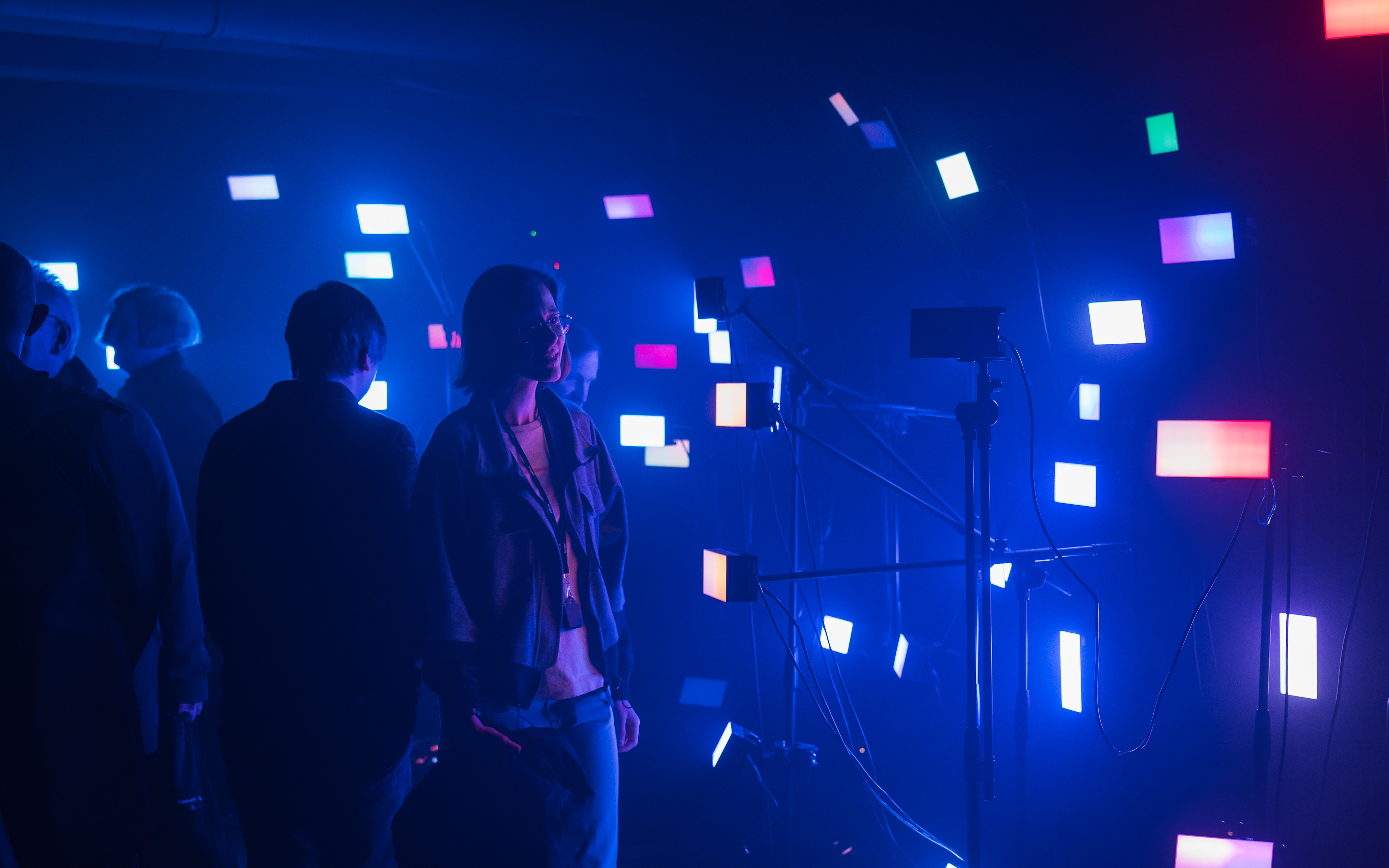 By spatially capturing the participants, the generated effects can be arranged 3-dimensionally in the room. On the lighting level, this is reflected in individual lighting effects, which are displayed with pixel-precise control using large Astera HydraPanels. At the audio level, audio tracks generated to match the emotional profiles are played via loudspeakers. The unit creates a unique audiovisual experience.