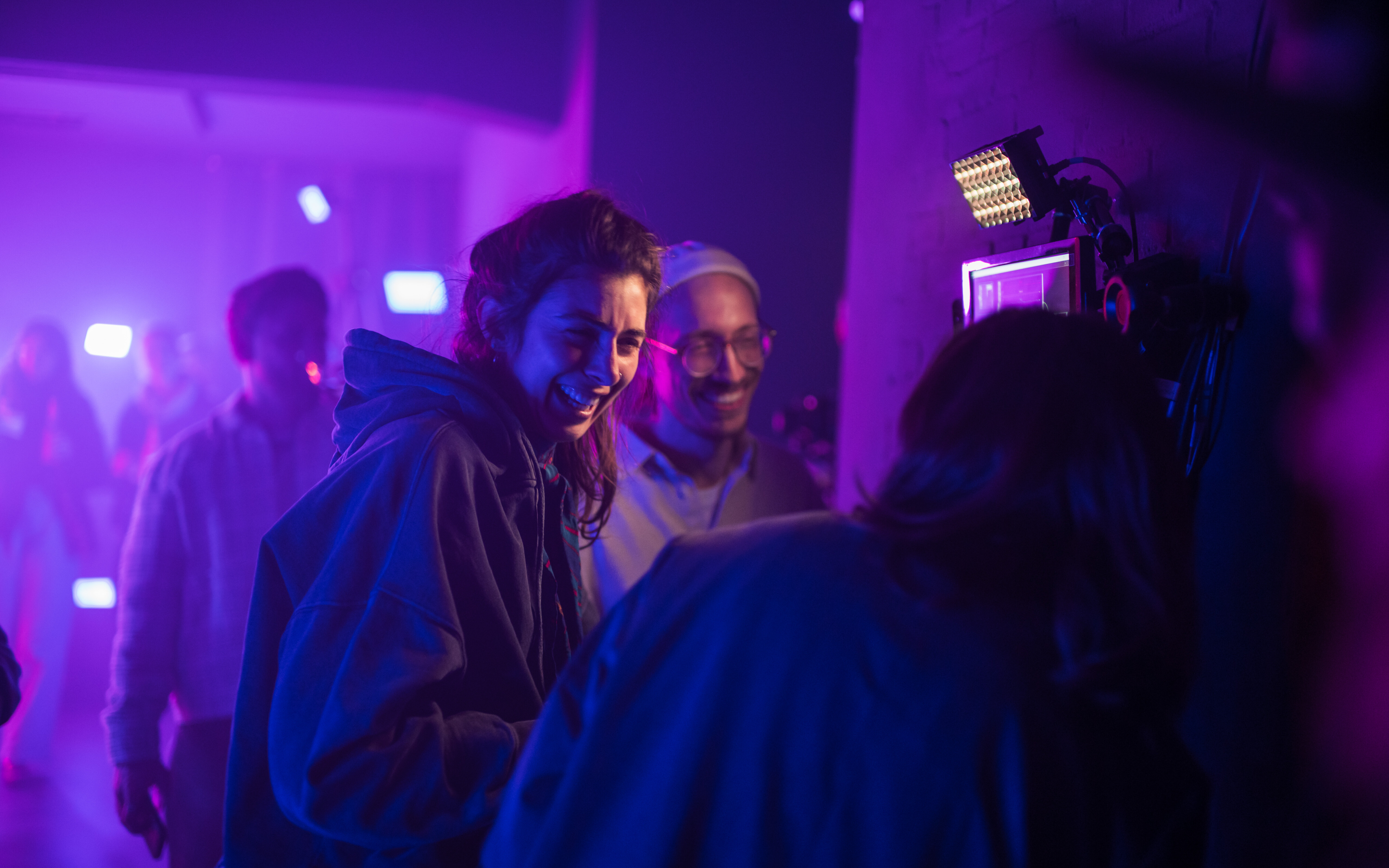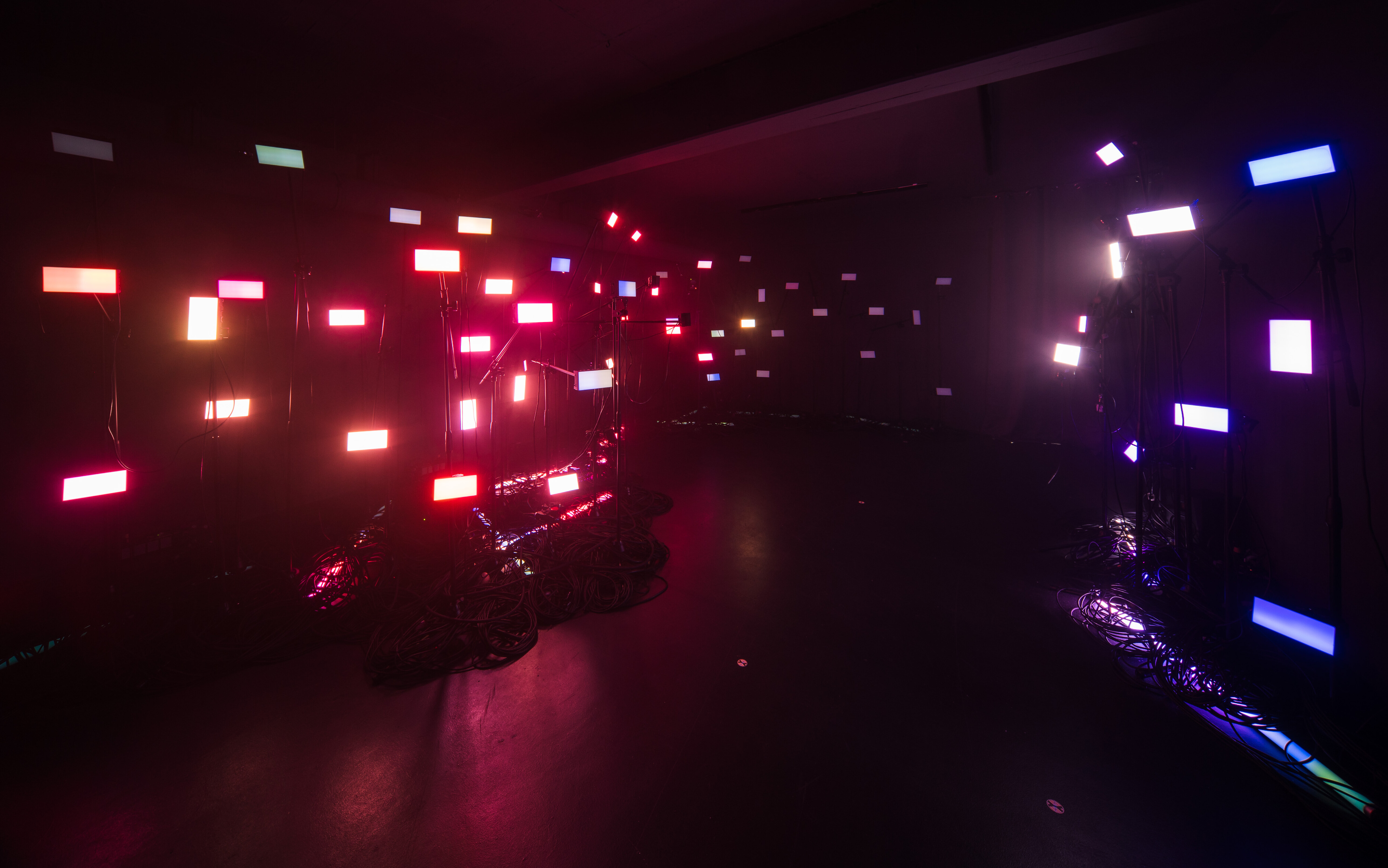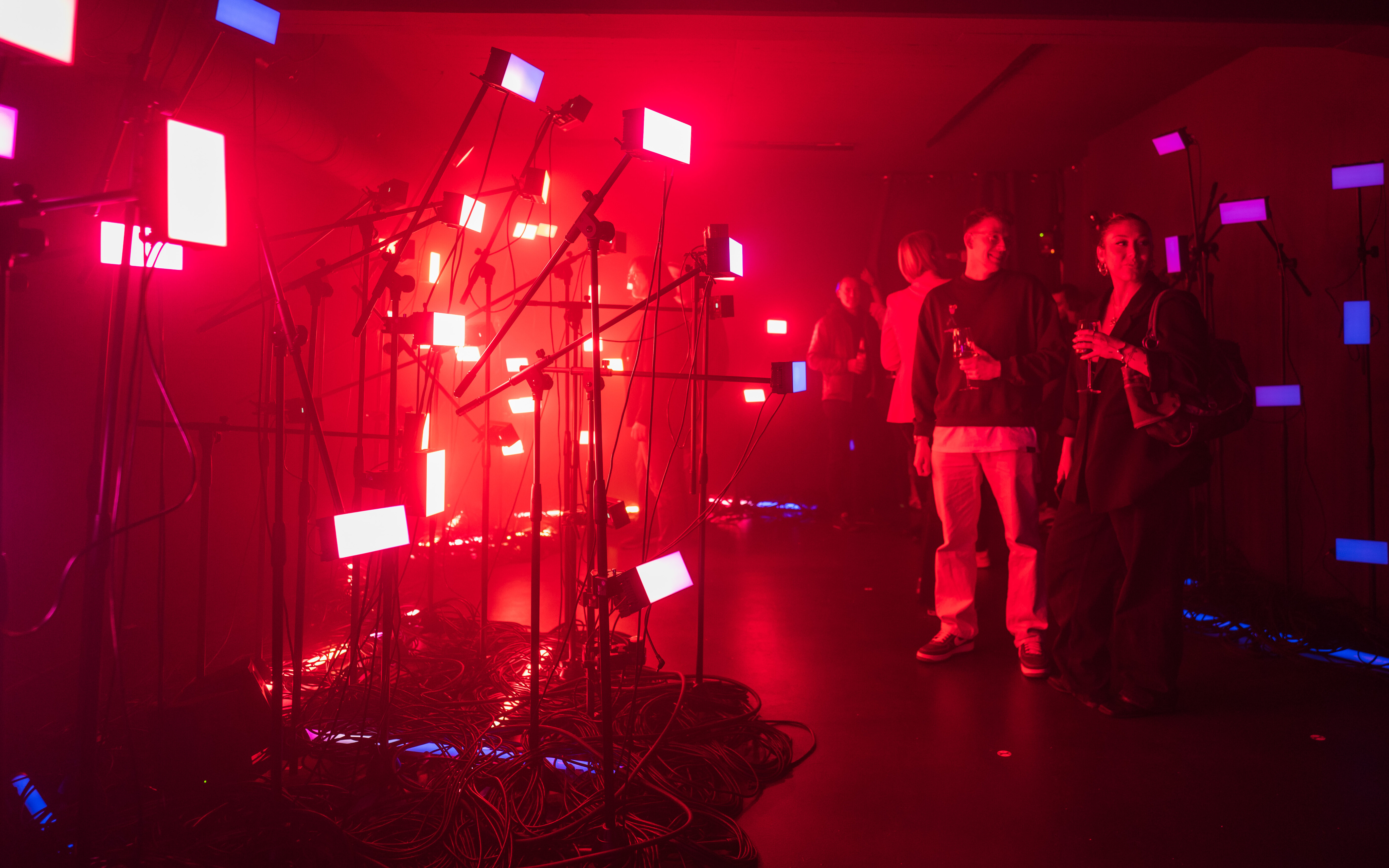 By spatially capturing the participants, the generated effects can be arranged 3-dimensionally in the room. On the lighting level, this is reflected in individual lighting effects, which are displayed with pixel-precise control using large Astera HydraPanels. At the audio level, audio tracks generated to match the emotional profiles are played via loudspeakers. The unit creates a unique audiovisual experience.