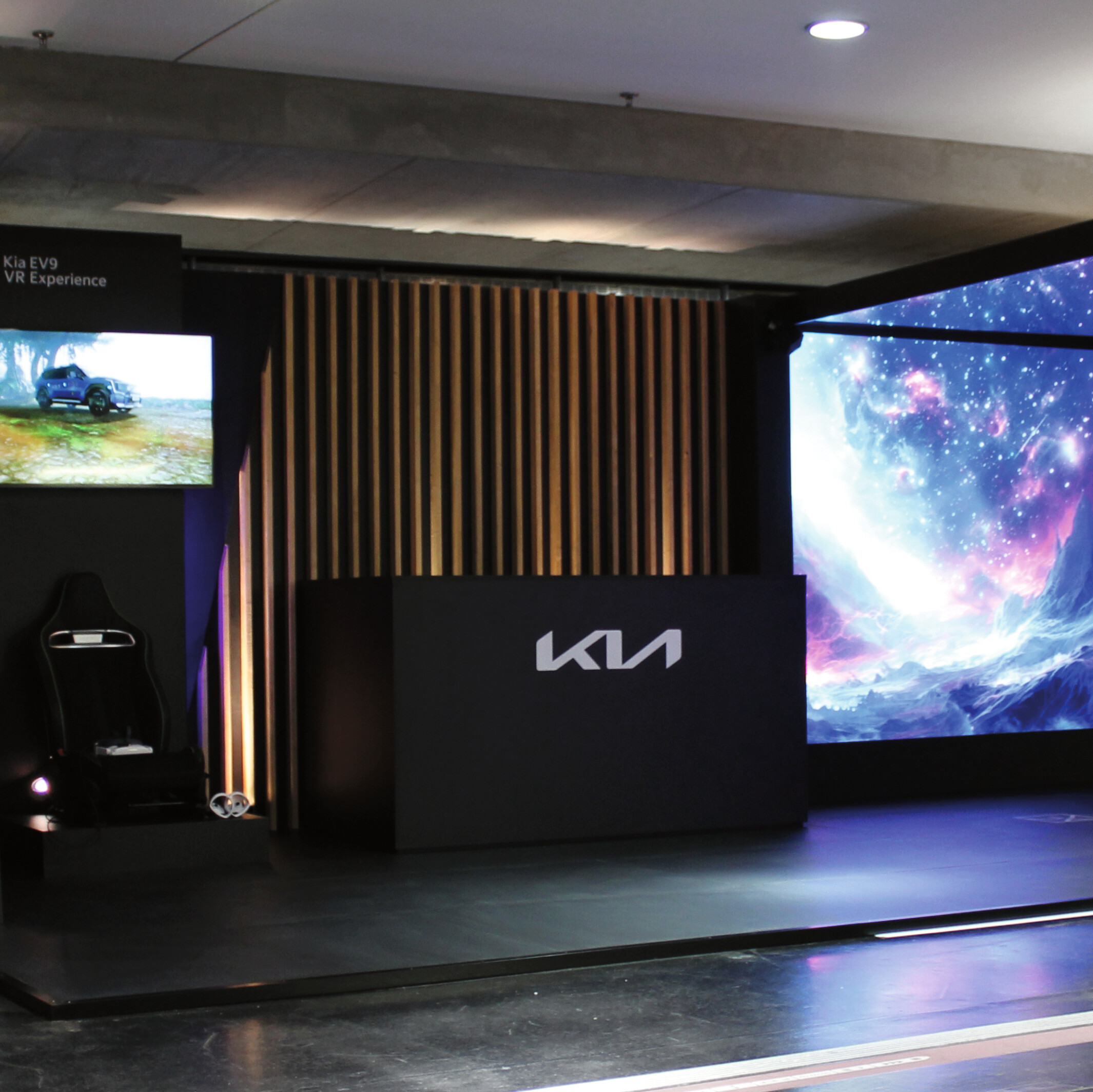 Within a minimalist room design, visitors to the event were able to interact directly with the Kia brand via various activation areas and experience its new EV9 electric car up close. In addition to a reception desk with trained staff, a VR experience awaited them, allowing them to individually view and configure the EV9 in a play environment. Another highlight of the stand was an immersive portal that created a unique gaming experience through floor sensors, synchronized animations and the associated activation of mysterious symbols. Reactive lighting, generative sound effects and mirror surfaces in the portal enhanced the players' perception.