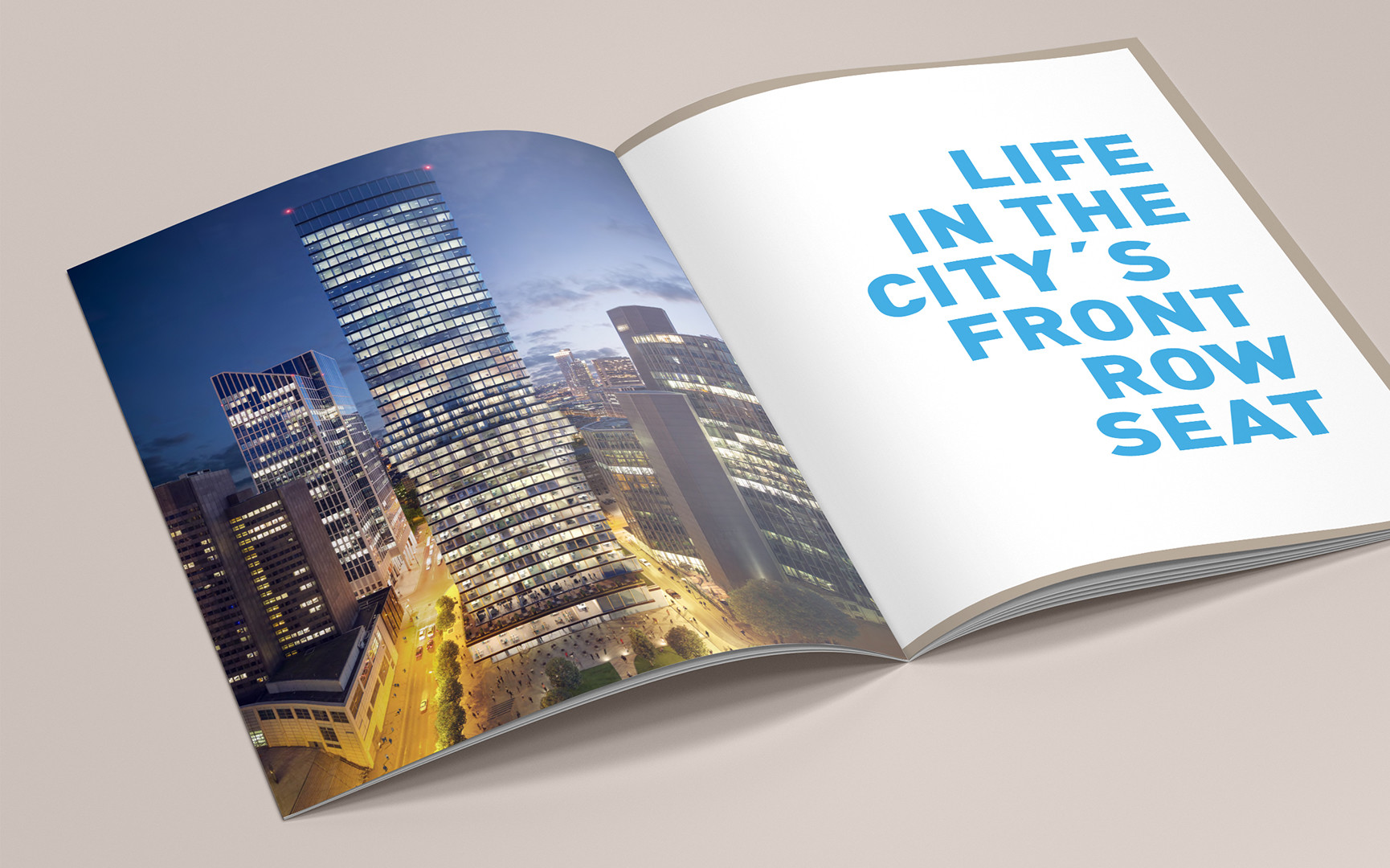 Spectacular and innovative - The marketing documents were supposed to be as impressive as the 147 rental apartments in the architectural sculpture. The brochure reaches the target group with its trendy magazine look and its ornate finishing. The design concept also applies to the website digitally and supports the establishment of contact with the renter.