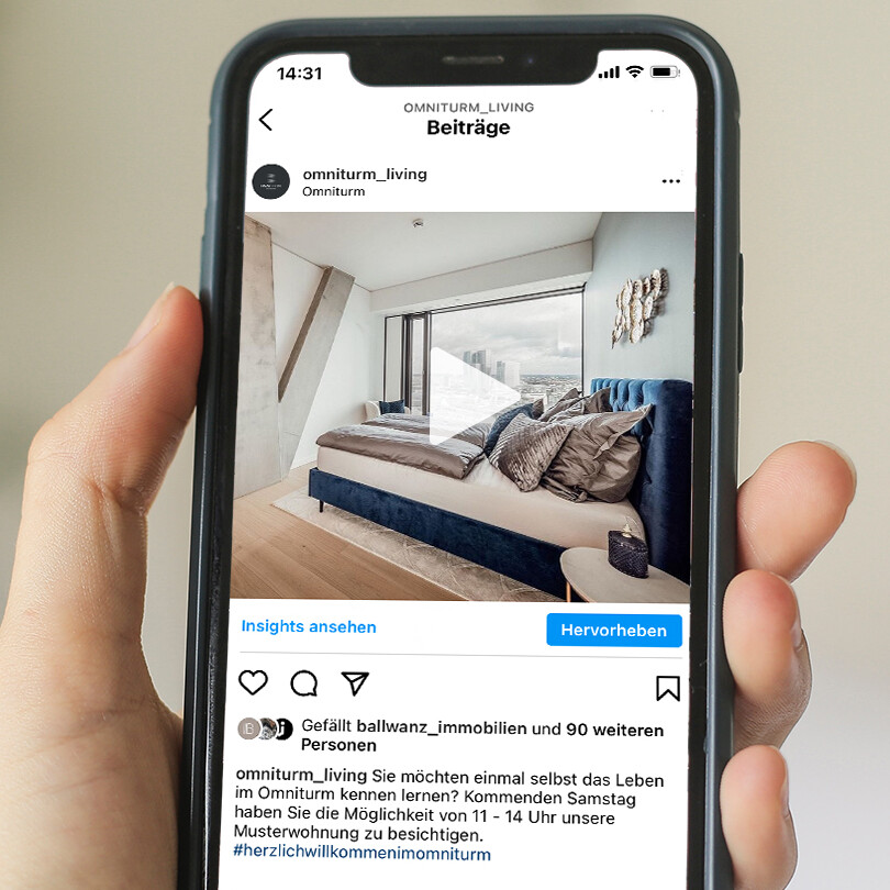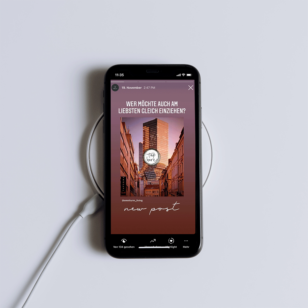 The Instagram presence perfectly rounded off the marketing package for the residential properties in the Omniturm and underlined the feeling of living in an architectural sculpture in the middle of Frankfurt.