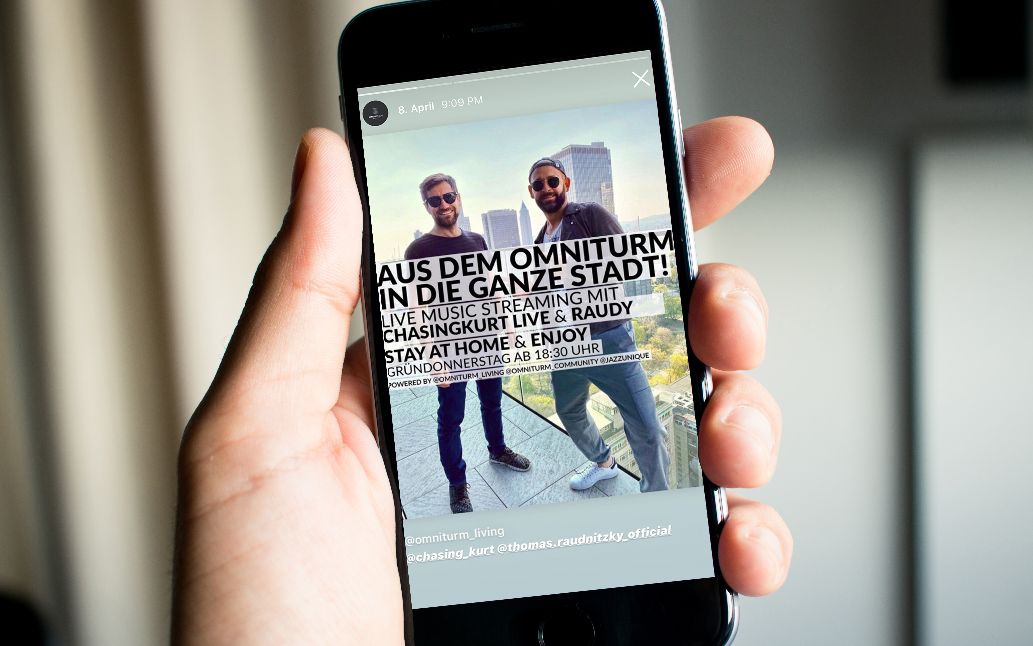 Metropolitan ease and joie de vivre were streamed from the Omniturm to the entire city and beyond through a digital live concert. Thomas Raudnitzky and Chasing Kurt ensured a good mood with their live DJ sets in the Omniturm showroom.