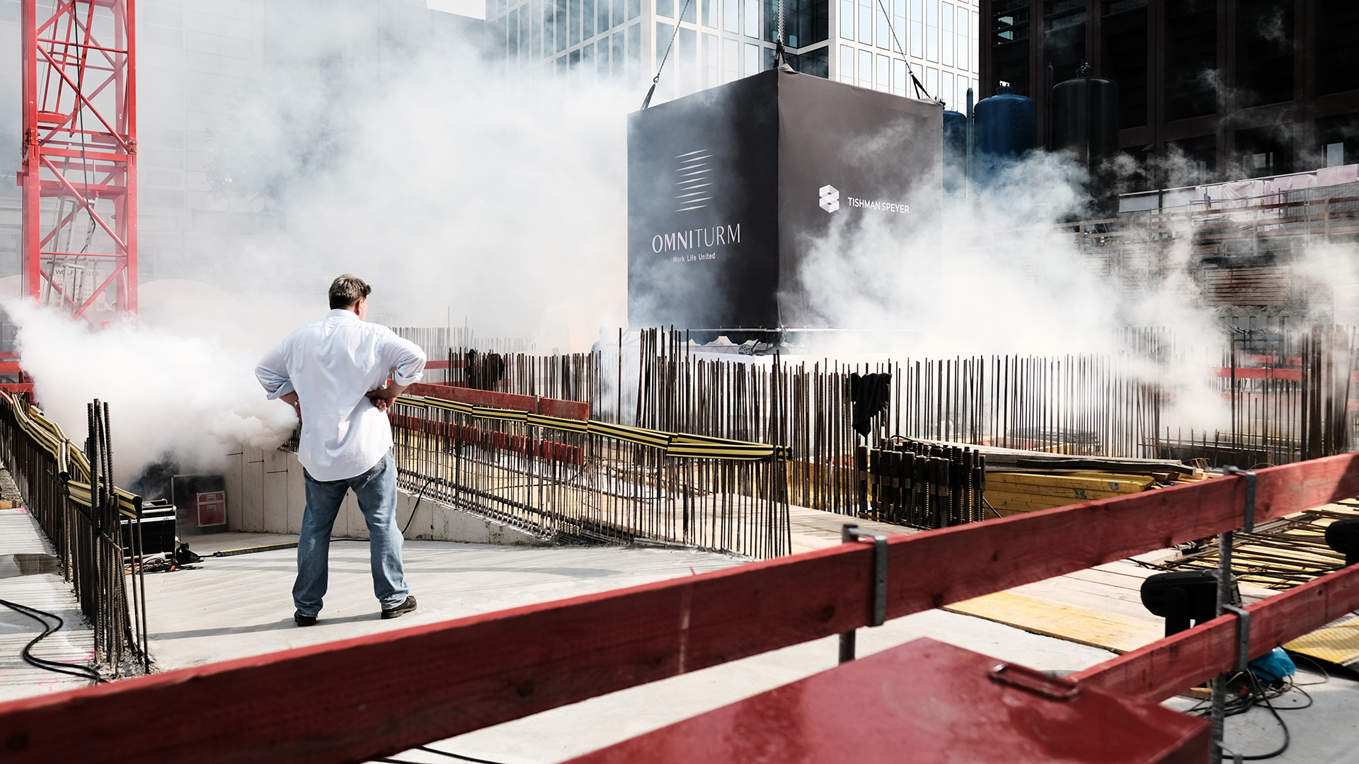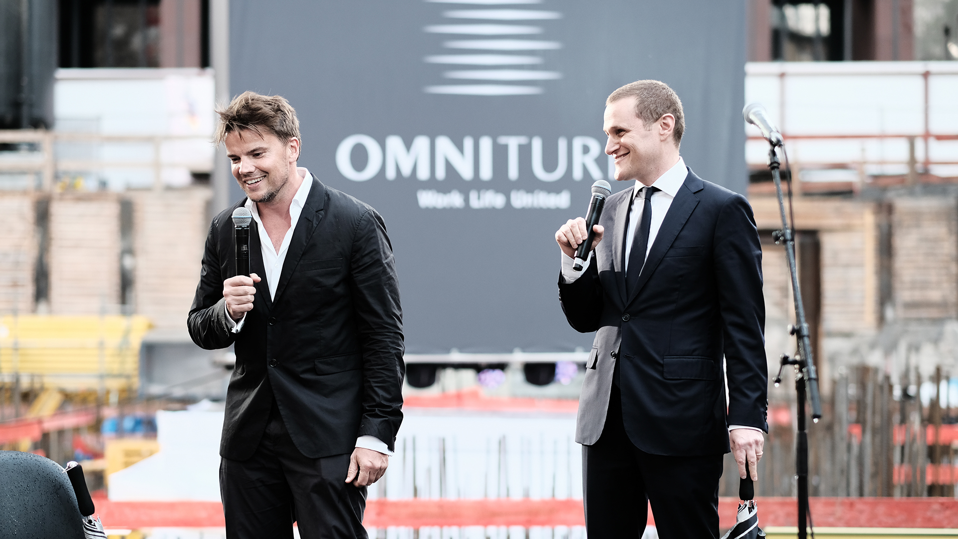 The OMNITURM is the first high-rise in Germany to combine work, residential housing and public life in a single building. We were commissioned by Tishman Speyer to make the laying of the foundation stone of the iconic Frankfurt skyscraper an impressive event. Notwithstanding major logistical challenges in view of the construction site setting and heavy rain, we succeeded in surprising the 450 invited guests in fitting style with a food concept developed by Taste of Now and Hubertus Tzschirner. As well as creating an advance marketing campaign for the project, for the entire time the OMNITURM was under construction we projected images on the surrounding fences, blazoning the claim 'WE ARE THE OMNIPEOPLE' and displaying the faces of well-known Frankfurt personalities whose diversity reflects the special features of the building.