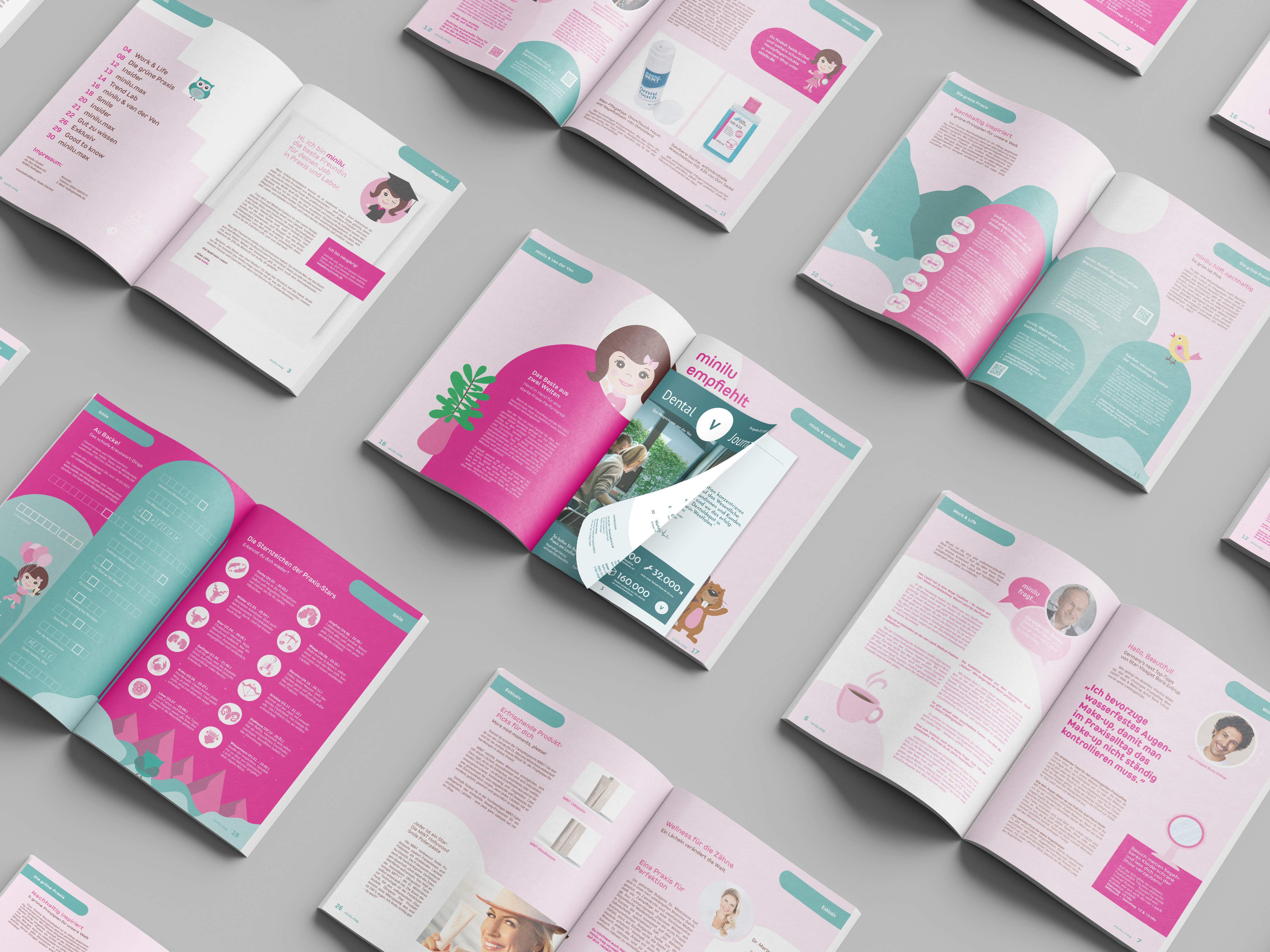 We designed minilu.mag for our client minilu - the first work and lifestyle magazine exclusively for dental assistants (ZFA)!
