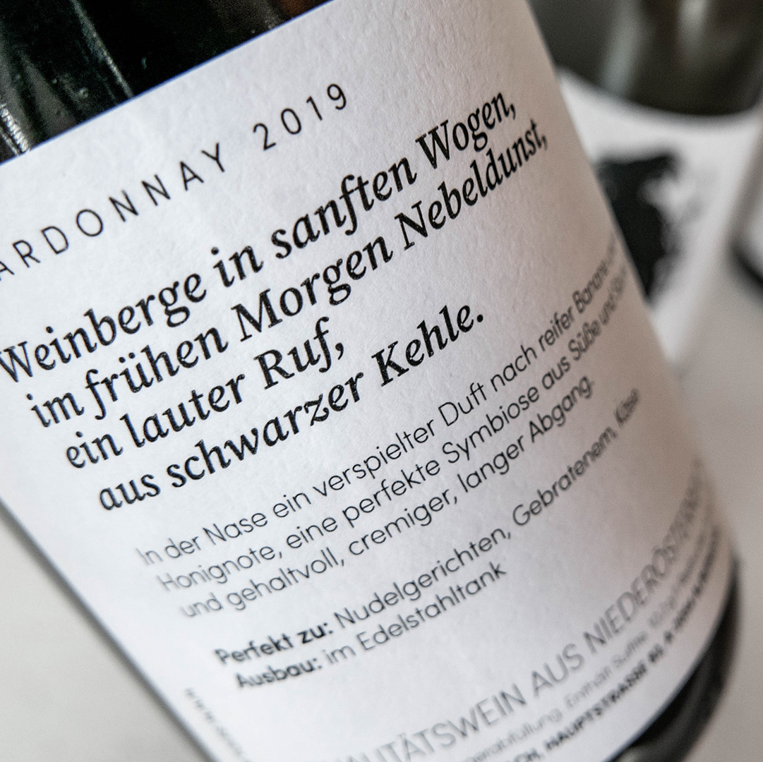 When redesigning the labels, we therefore focussed on an abstract visual connection to nature and the region. We assigned each type of wine in the new vintage its own graphic symbol. In addition to the new design, the labels were each given a calligraphic animal motif with an individual brushstroke. We also redesigned the winery's website to match the minimalist, modern look of the products.