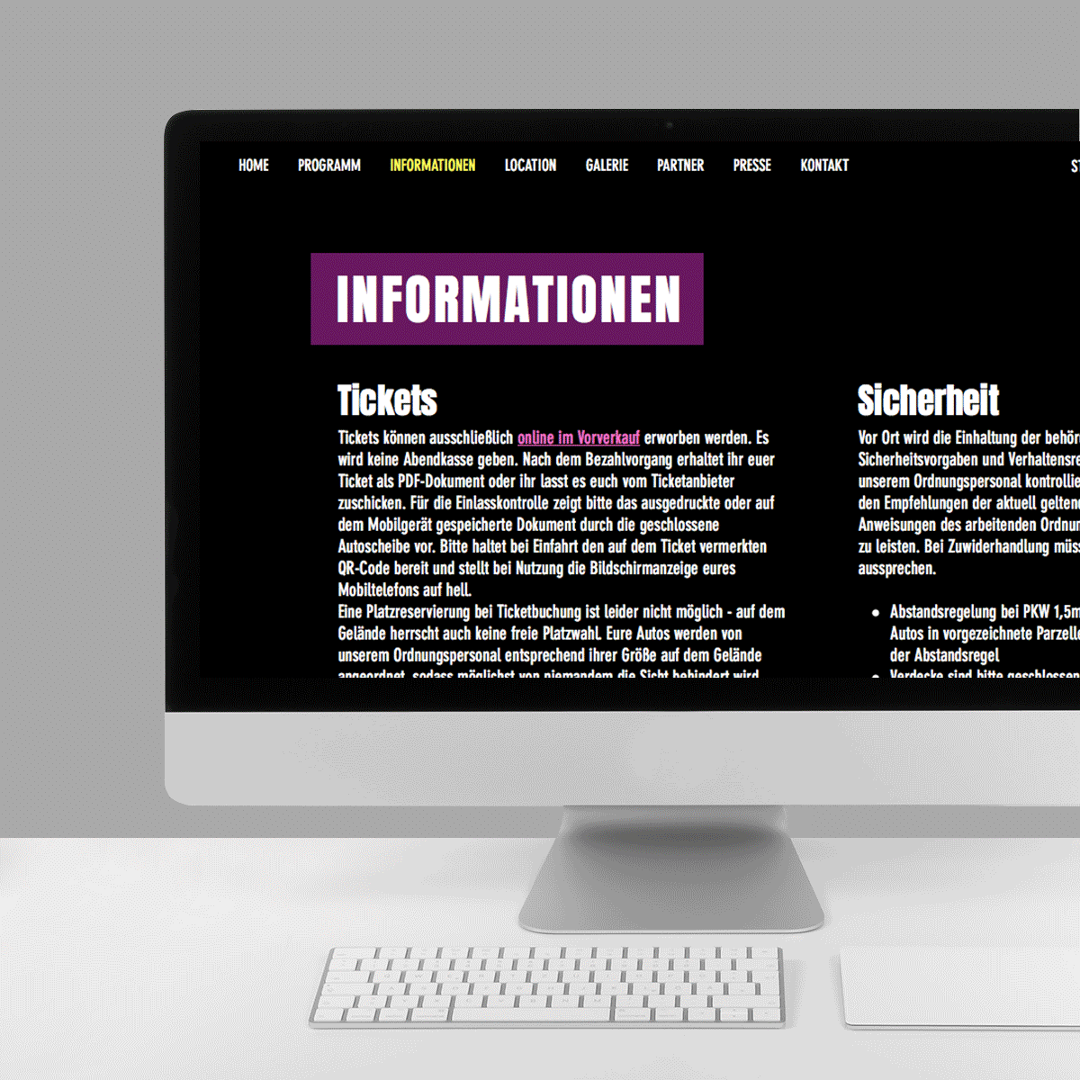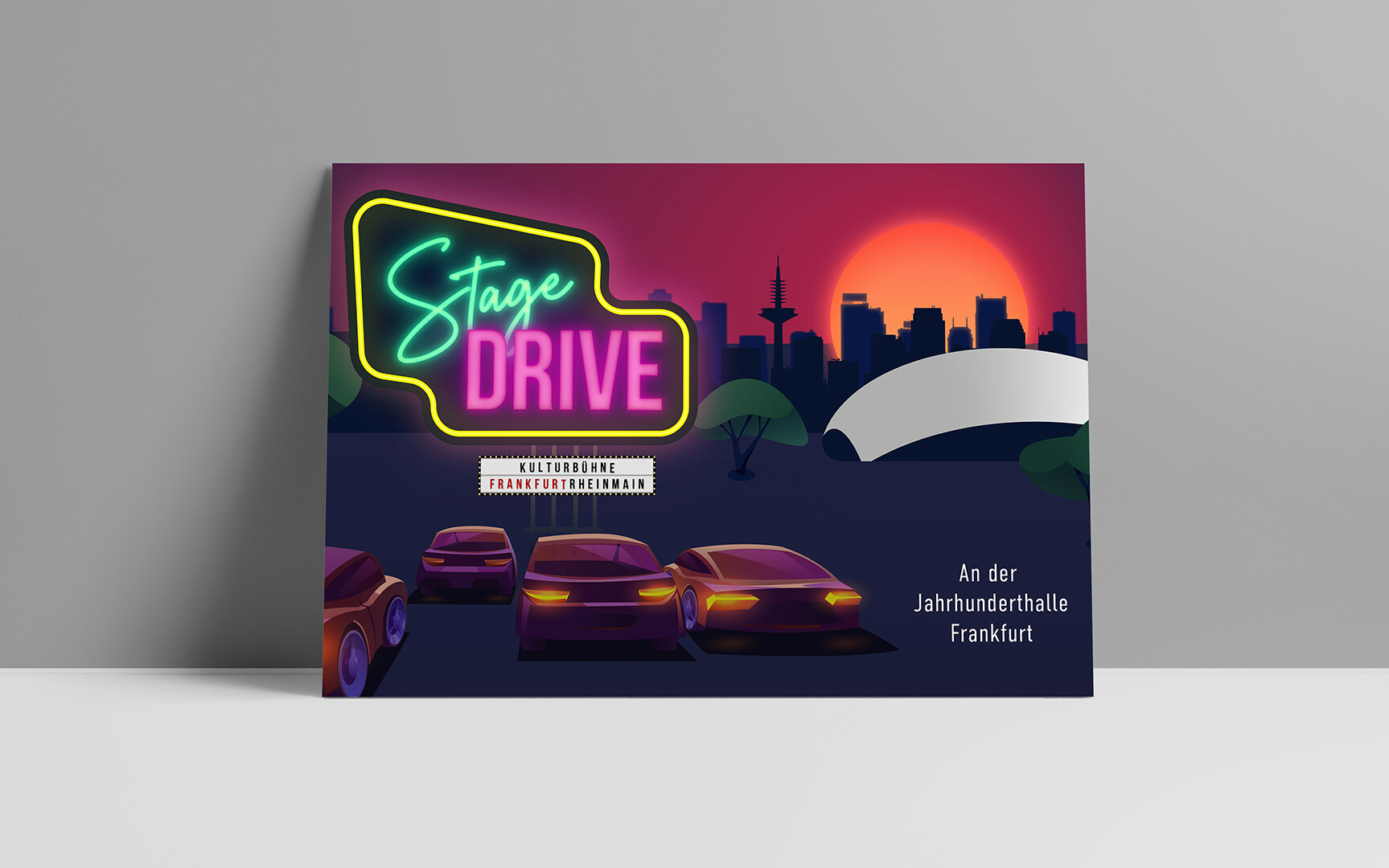 Jazzunique brought the drive-in cinema feeling of the 80s to the Kulturbühne Rhein Main - and it is exactly this feeling that is reflected in the design of the Kulturbühne and other design elements. We were responsible for the conception and creation of the key visuals as well as the website of the Kulturbühne. We used bright colours in the Eighties look and an illustrated style for the scenery. In addition, we rolled out the key visual in various analogue and digital advertising media.