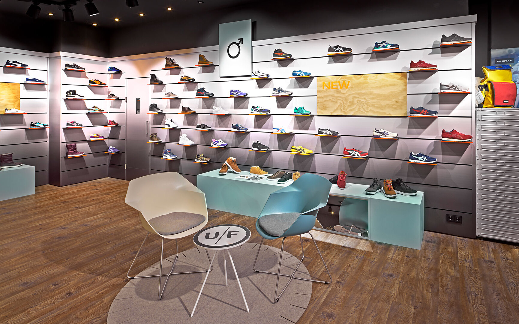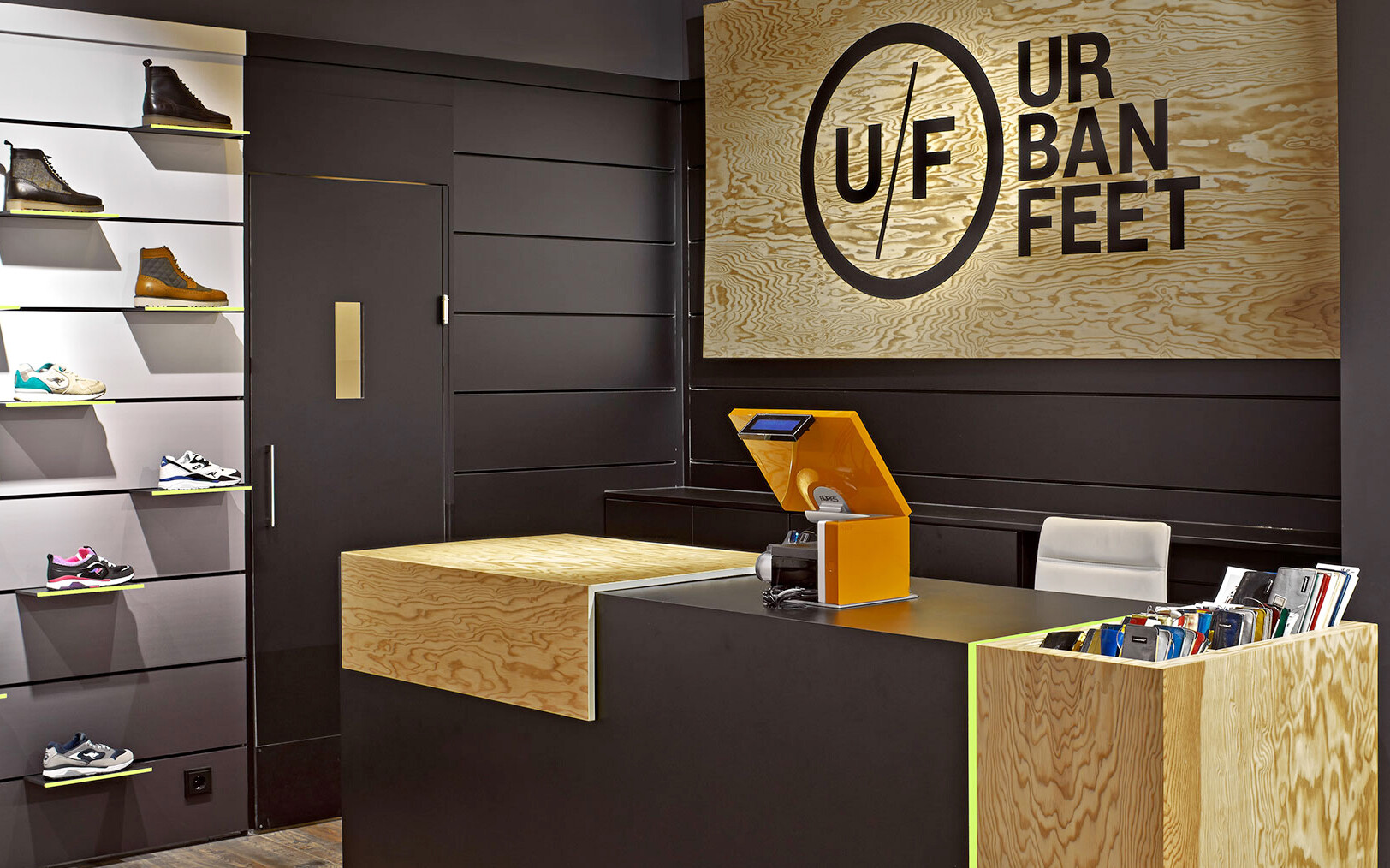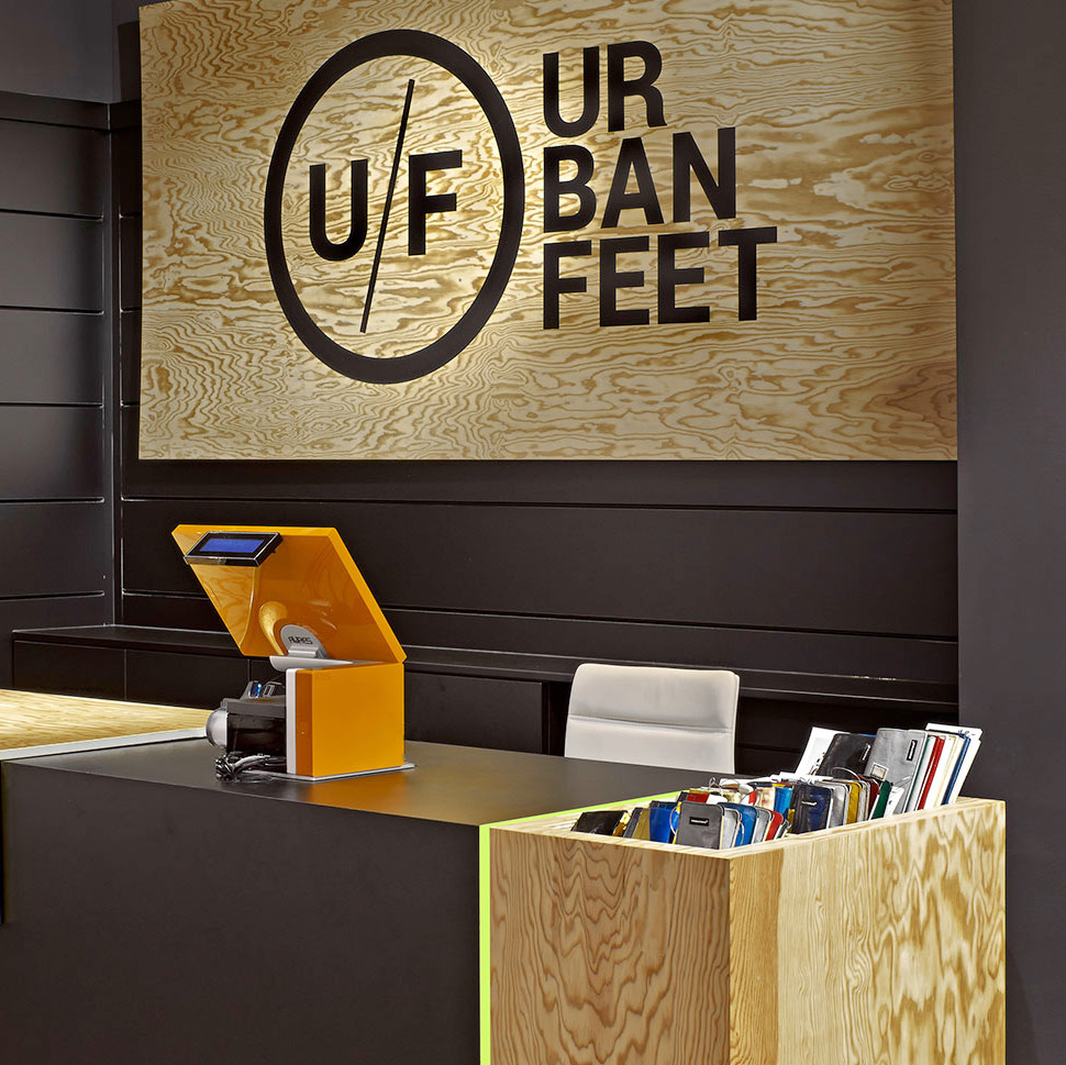 The makeover of the Urban Feet shop utilised the full power of Jazzunique. We were responsible for the shop design, colour concept and the complete shop fittings. The special feature of the interior is the highly flexible back wall: the shop staff themselves can re-stage the goods again and again. We also accompanied the opening event and developed the entire business stationery consisting of corporate identity, logo and graphics. These were also used directly on paper bags, business cards, a flyer for the opening, give-aways for the event and matching T-shirts.