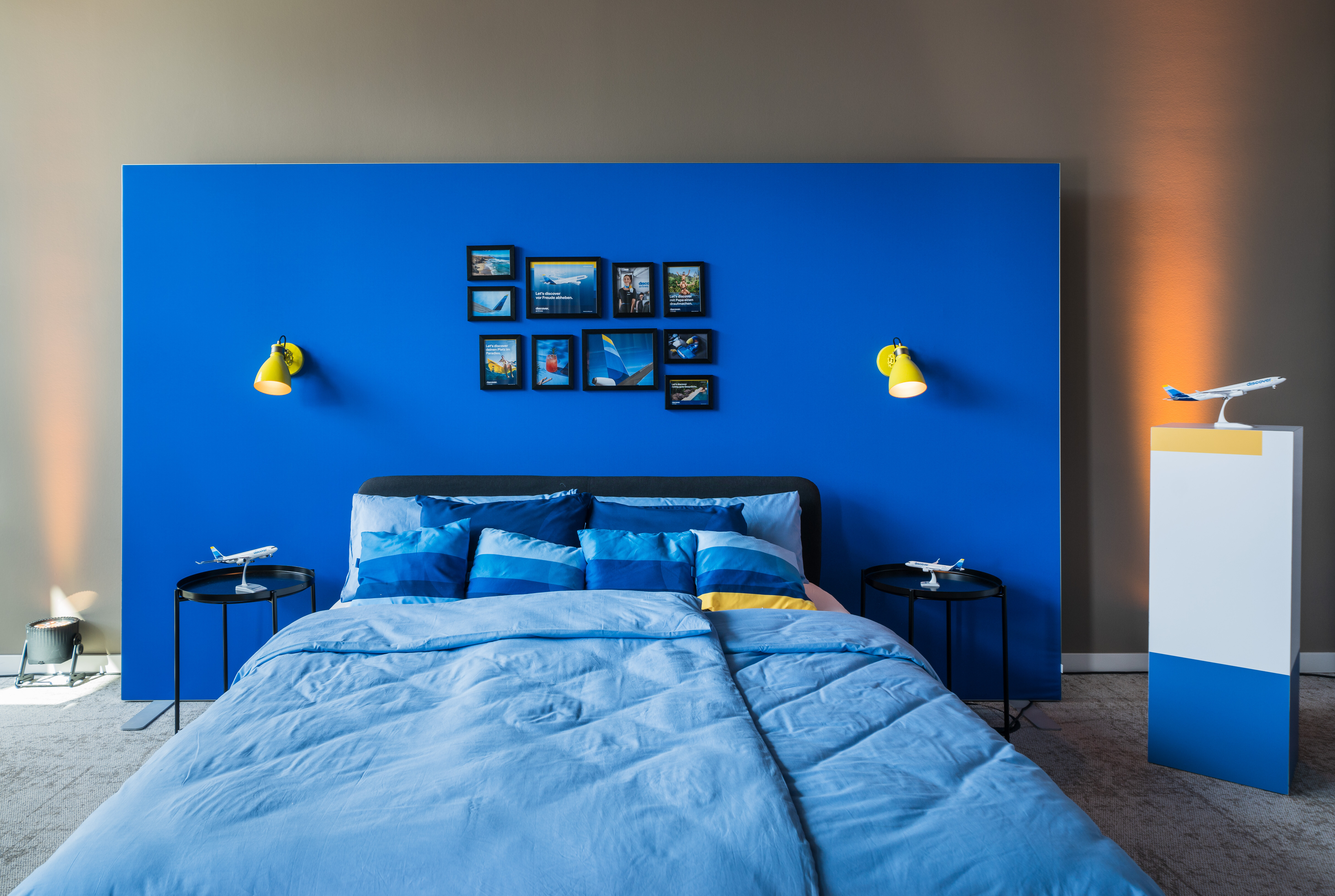 The living room, as the centrepiece of the flat, created an atmosphere of relaxation and encounter, where each guest's individual journey of experience began. In the playroom, the airline's DNA was brought to life in a playful way (including "joyful"), while the bedroom conveyed the essence of the airline and thematised it in terms of colour design and spatial presentation. The culinary offerings supported the atmosphere with themed catering.