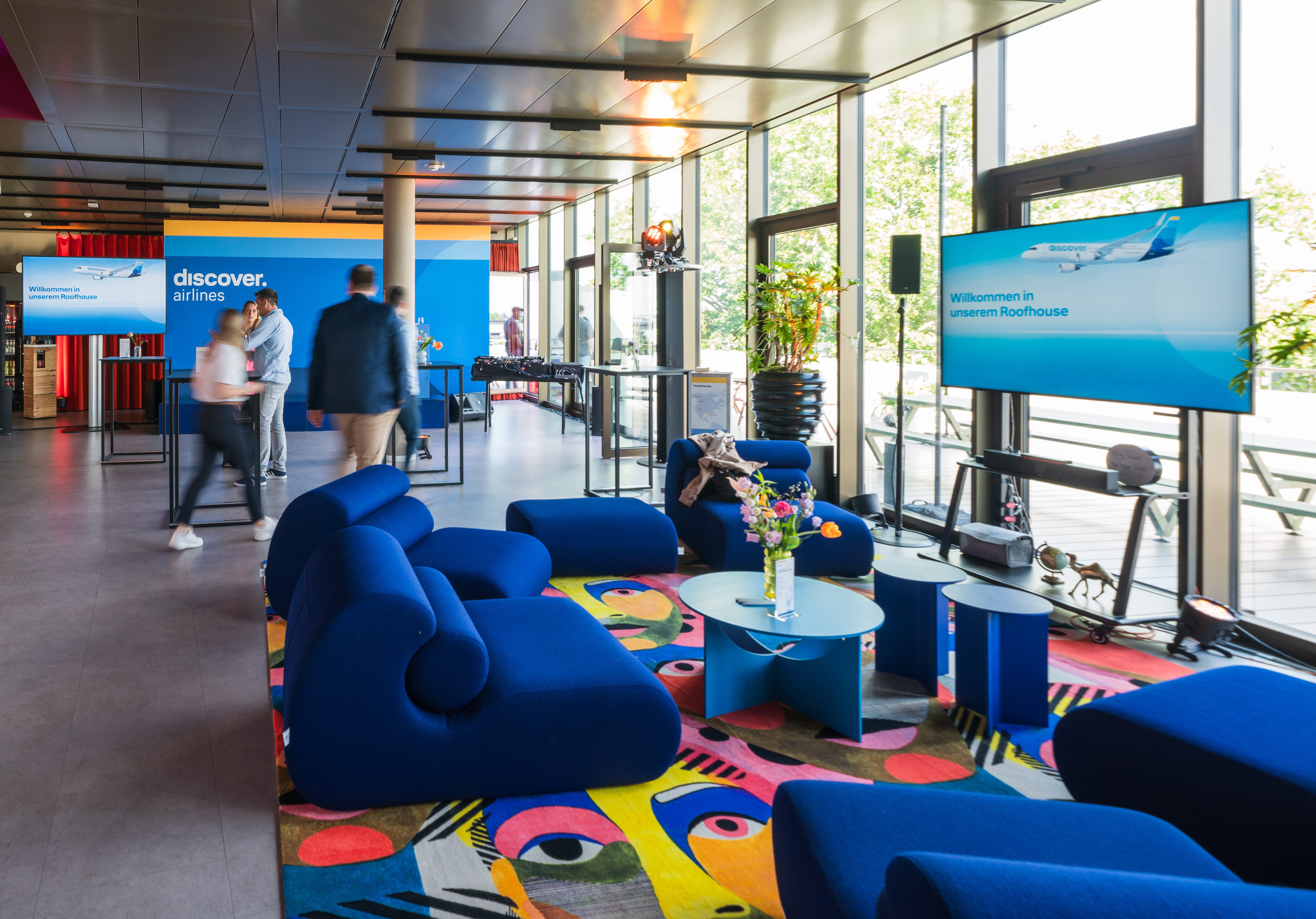 The task for the realisation of the Discover Airlines Roofhouse was to create an individually authentic, approachable and emotional atmosphere for each room of the location and to make the identity of the brand tangible. To this end, each area was assigned a special meaning, which was ultimately translated into a unique look through the use of conceptual and design elements. This gave guests the opportunity to participate interactively in brand experiences.