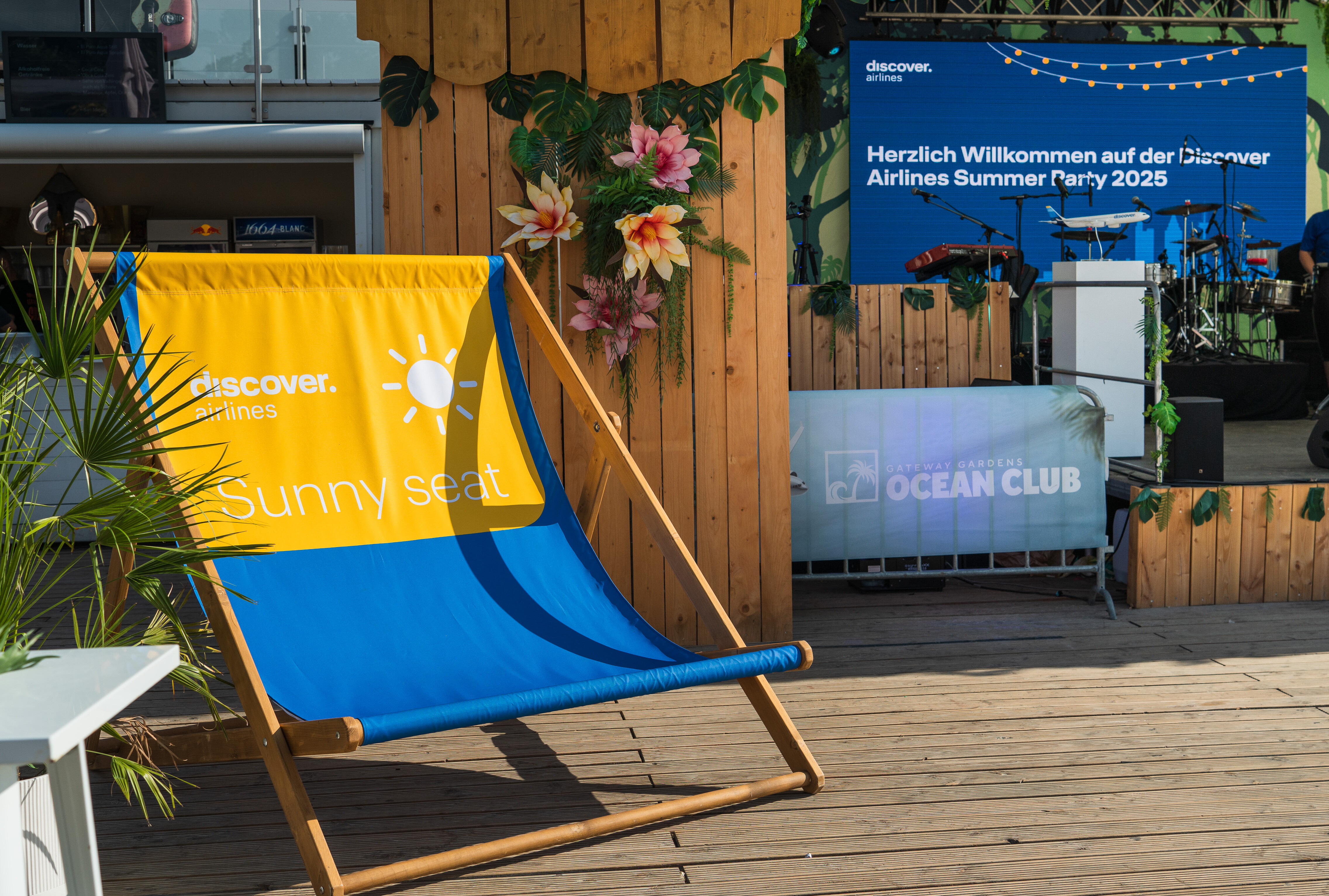 A particular highlight was the club's proximity to the airport: when a Discover Airlines plane flew directly over the club during its landing approach, the guests waved and knew that the crew of that plane would soon be joining them. This moment directly linked the event to the fascination of flying, allowed guests to experience the brand identity deeply, and strengthened their connection to the brand in a lasting way – an unforgettable moment for everyone present.