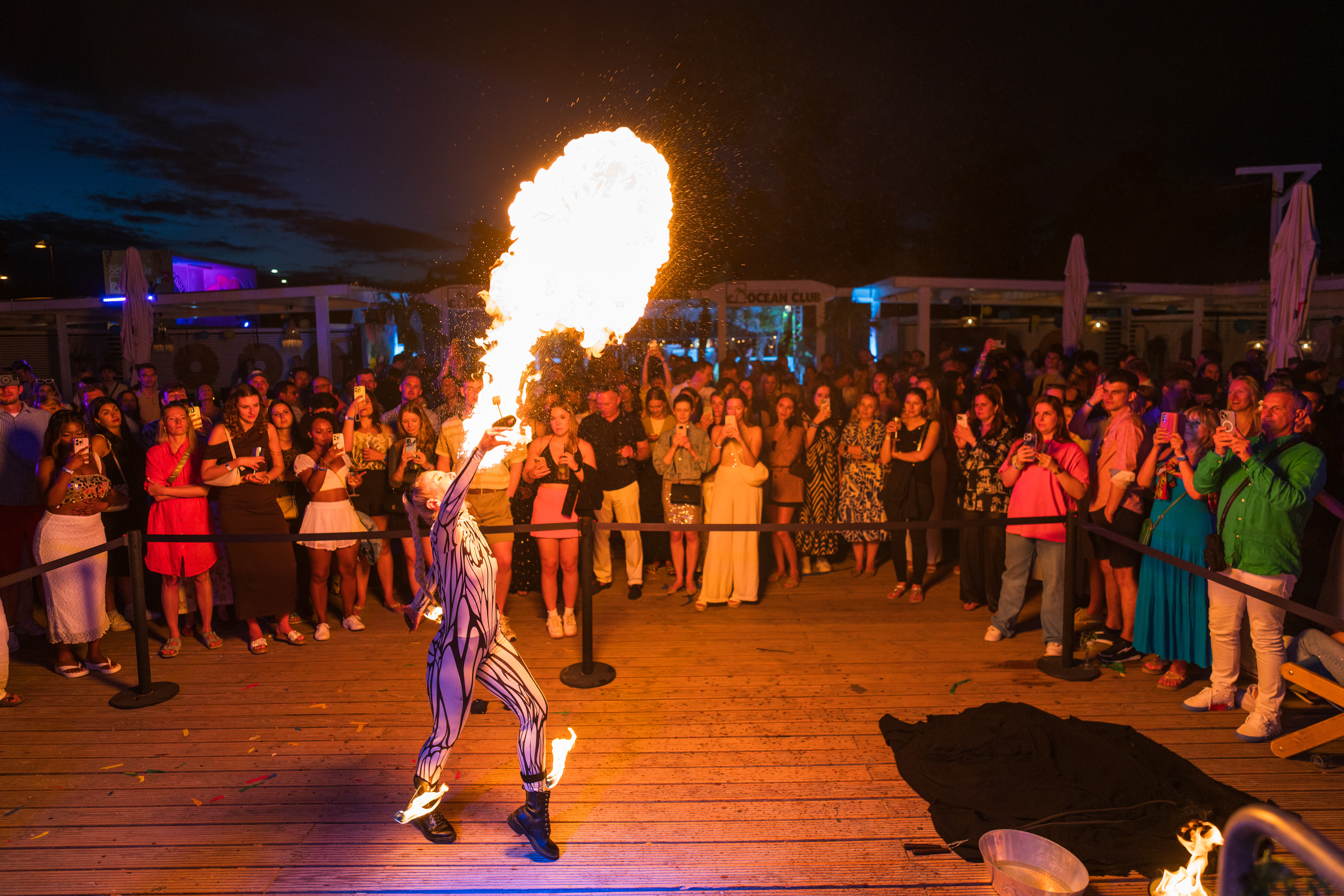 Guests were immersed in a world of interactive experiences: from creative photo opportunities such as mirror walking acts and a swing photo spot to sporting challenges such as beach volleyball and the Speed Tunnel familiar from the 2025 International Tourism Exchange. Culinary delights took participants on a journey around the world, delightfully reflecting the diverse destinations offered by Discover Airlines. The Urban Club Band and DJ LeSkim created a lively atmosphere and got guests dancing, before a fire show ceremoniously opened the dance floor in the evening.