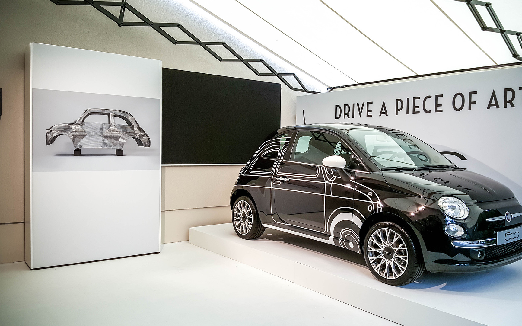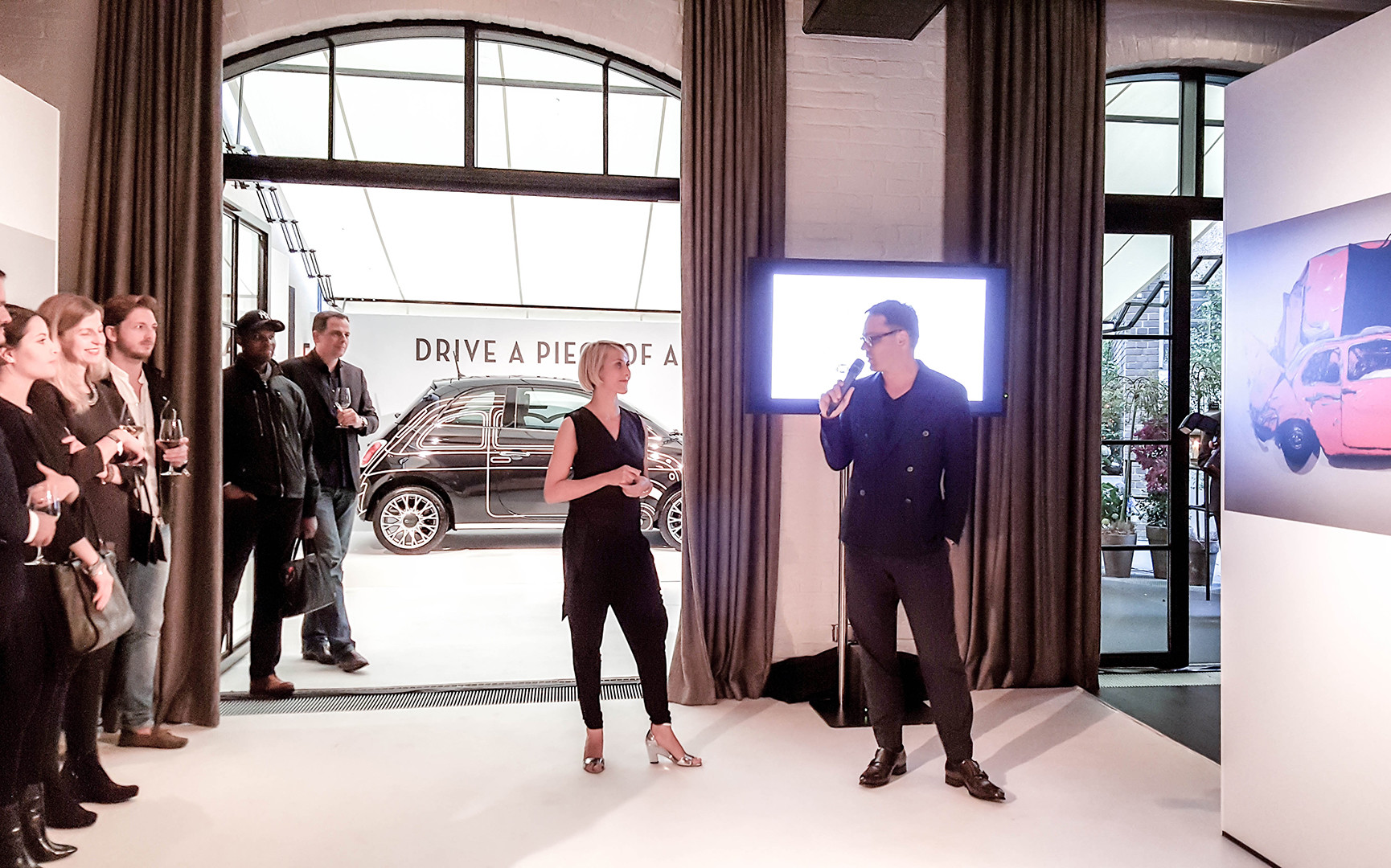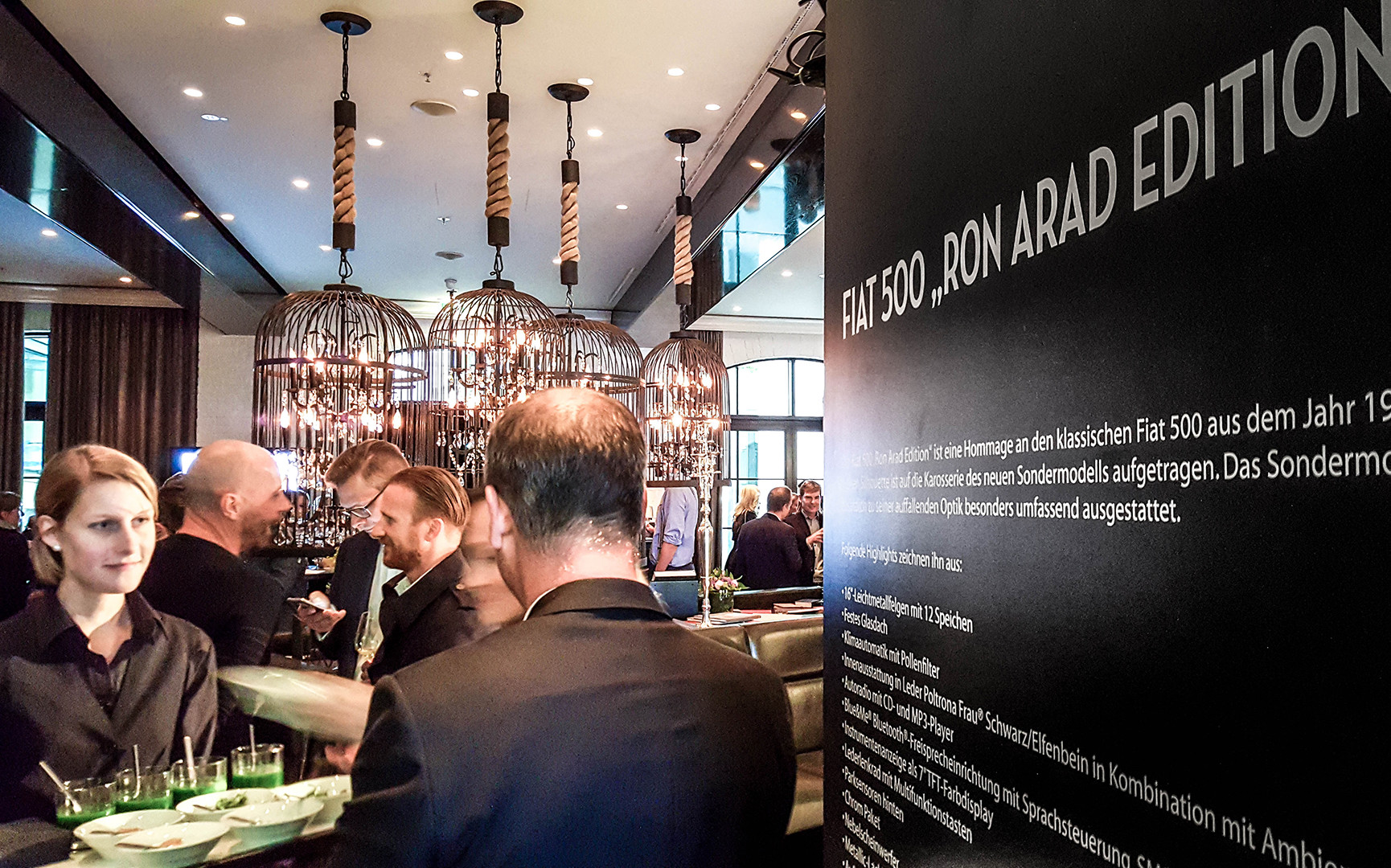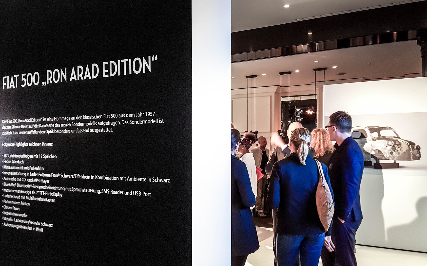 Commissioned by the automobile manufacturer Fiat, Jazzunique drafted and designed the presentation of the Fiat 500 special model ”Ron Arad“. In the prestigious hotel ”ZOO“ at Berliner Kudamm, 250 guests were invited to experience the special mode designed by one of the most influential artists, industry designers, and architects in the present. Under the title ”Drive a piece of art“, the extraordinary model and the brand name of Fiat with the cooperation partners AD magazine and the Design Hotels AG are placed in the limelight. The special challenge was placed in the specification, the presentation of the model in the exterior area are to be unified with the exhibition of selected exhibits by the artist as part of an opening reception.