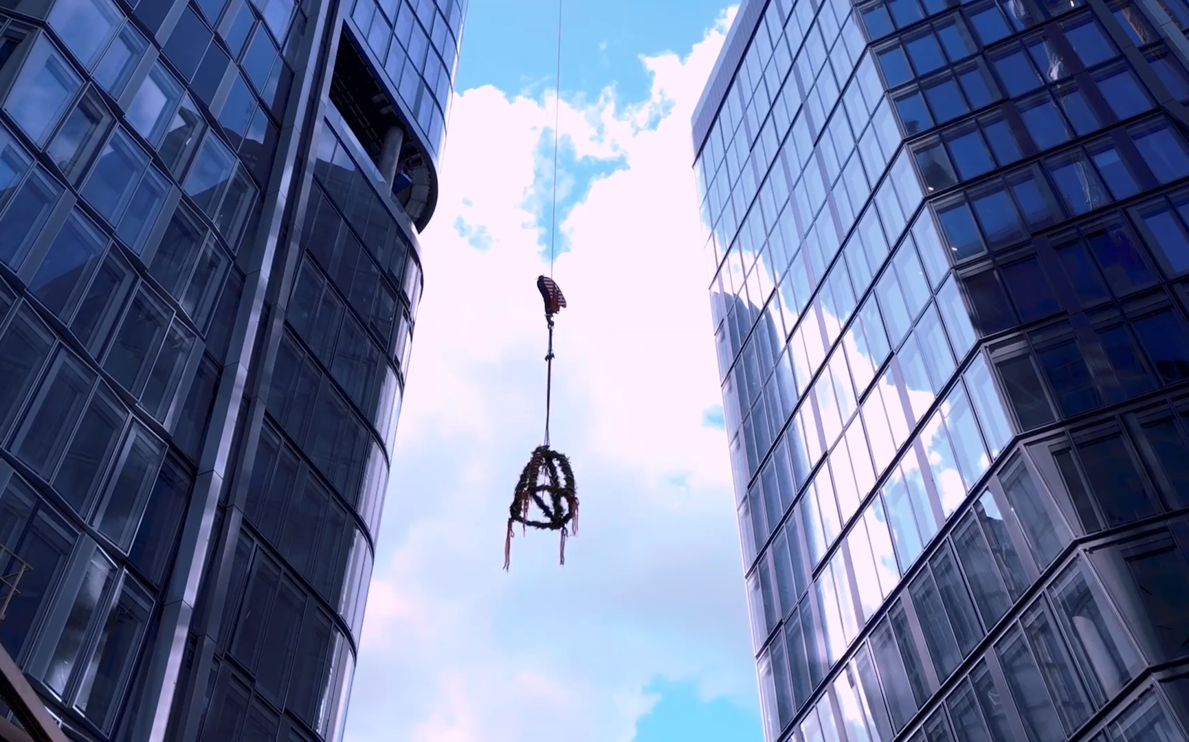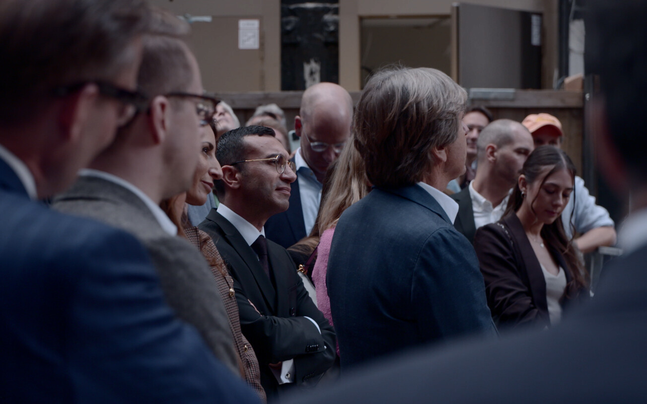 A celebratory ceremony then followed on stage with project participants and political actors from Frankfurt. For this we developed a dramaturgical sequence that included the show opening, speeches by Jürgen Groß, Ben van Berkel from UNStudio and the Mayor of Frankfurt Mike Josef, including a ceremonial topping out with presentation of the wreath and musical acts.