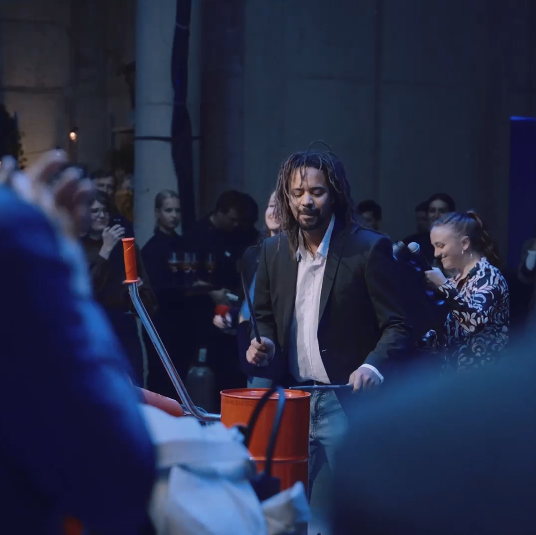 After the invited guests had gathered on the event site for the first part of the ceremony, a surprising show element drew attention to the following stage program. For this purpose, some musicians from the crowd began to form, drum on various construction site utensils and form an ensemble. Little by little, they attracted the attention of all guests before opening the official stage program.
