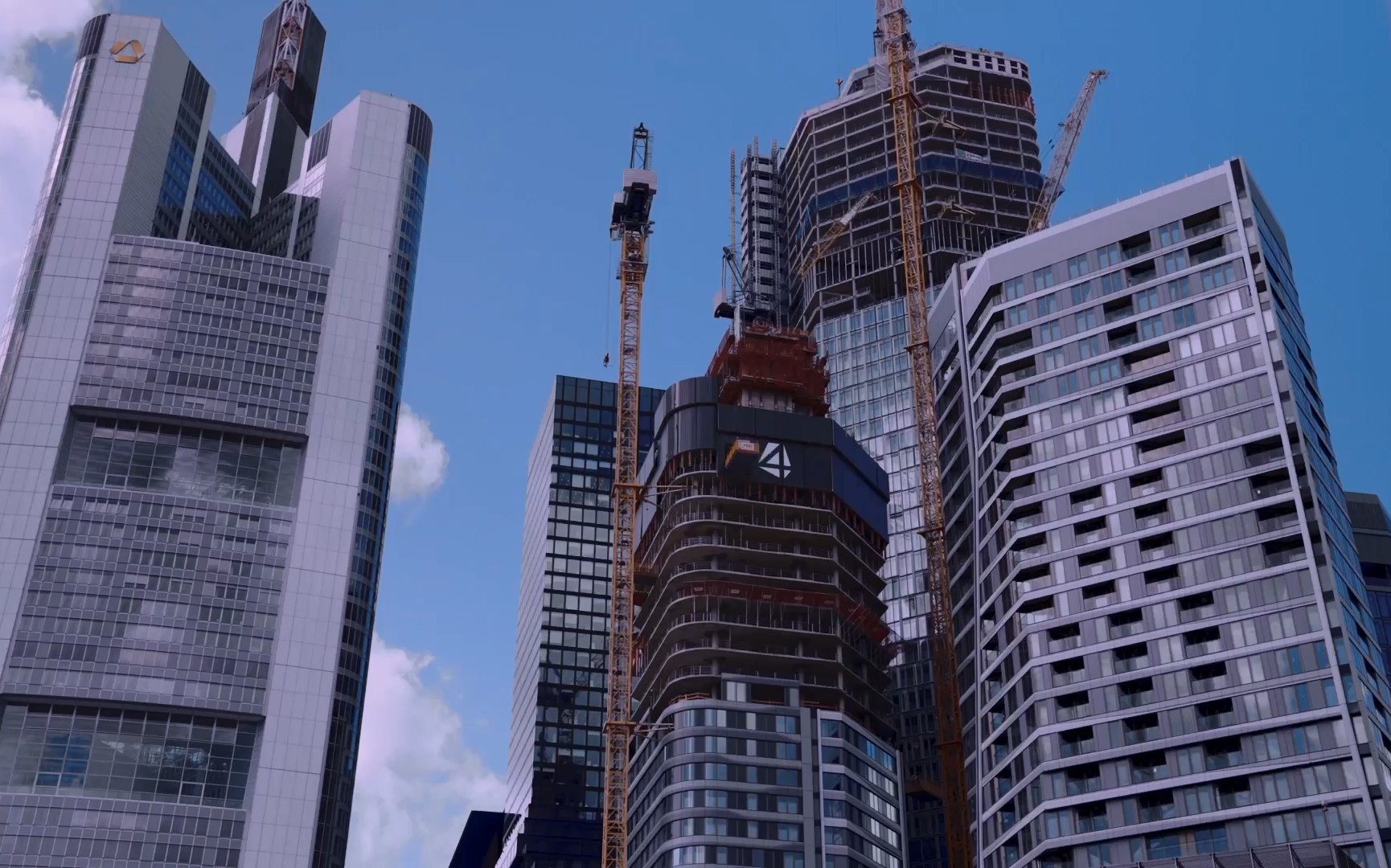 Four new skyscrapers will be built in the middle of Frankfurt according to current architectural and sustainable standards. With the completion of the shell construction of all towers, we were commissioned by our customer Groß & Partner to design a suitable ceremony both spatially and in terms of staging. For this purpose, we planned and implemented a two-part topping-out ceremony in a building in the FOUR area that is currently being built. Decision-makers from the company and politics were invited to the first part of the topping-out ceremony, while a second part in the evening was planned for the employees.
