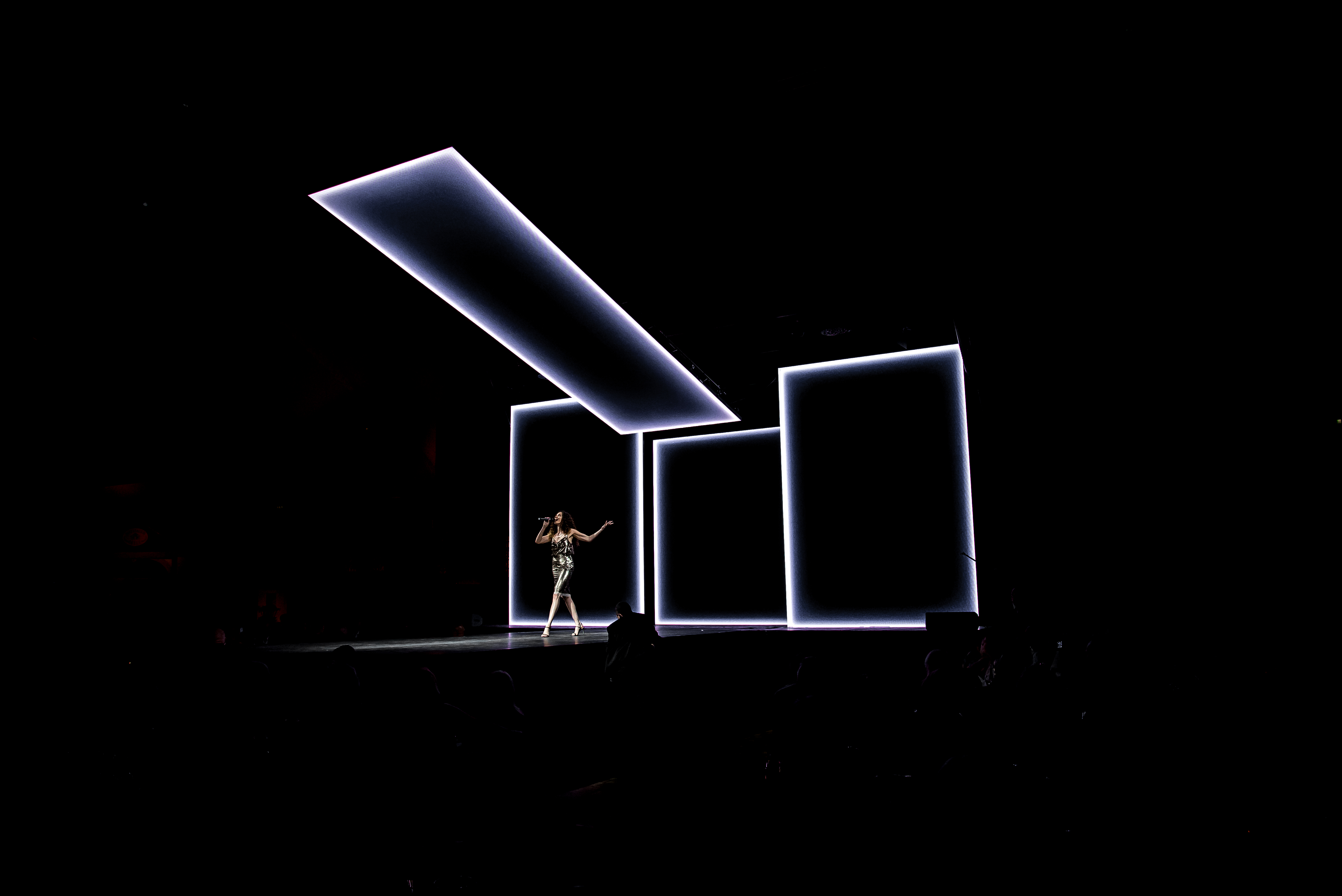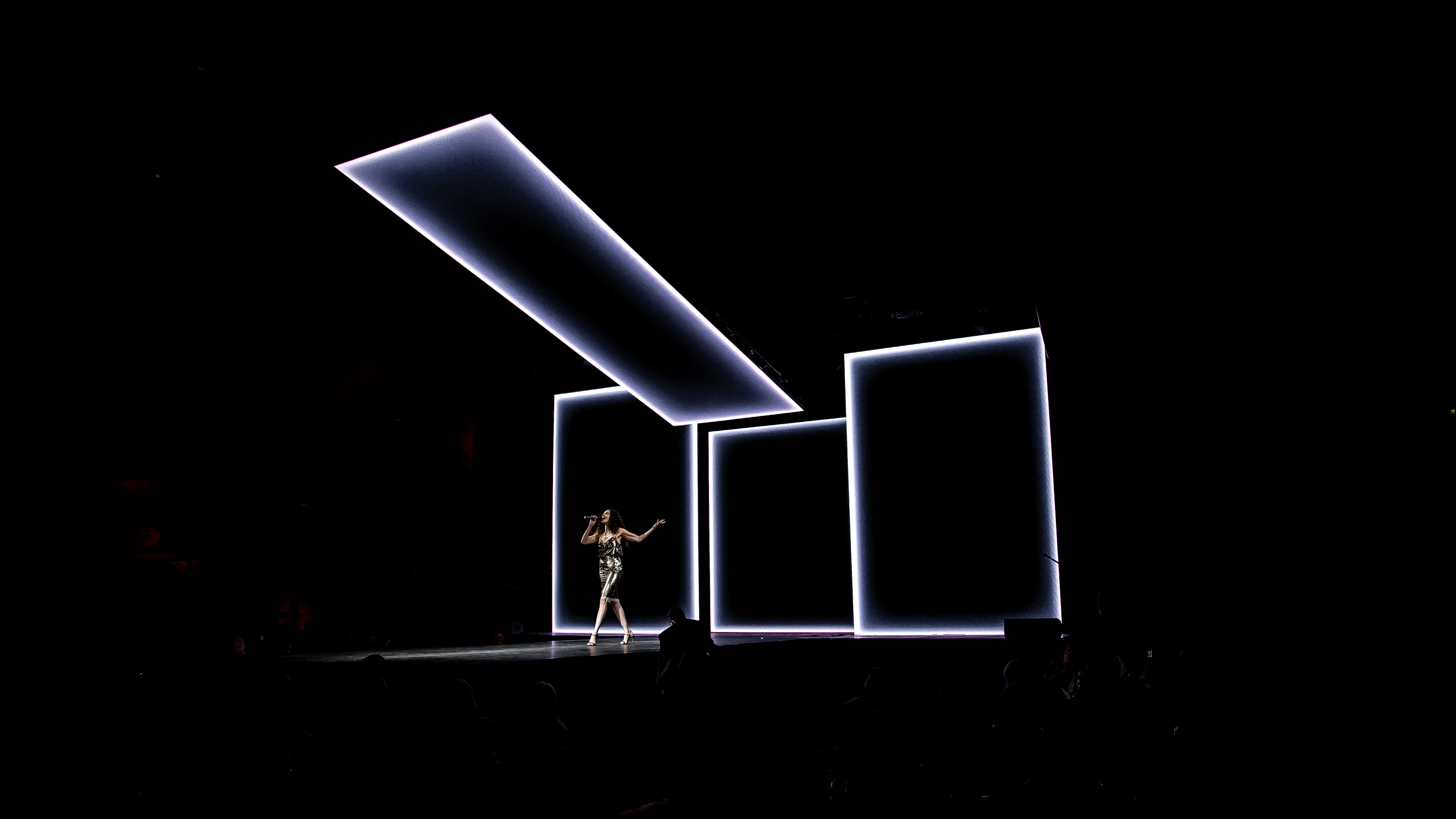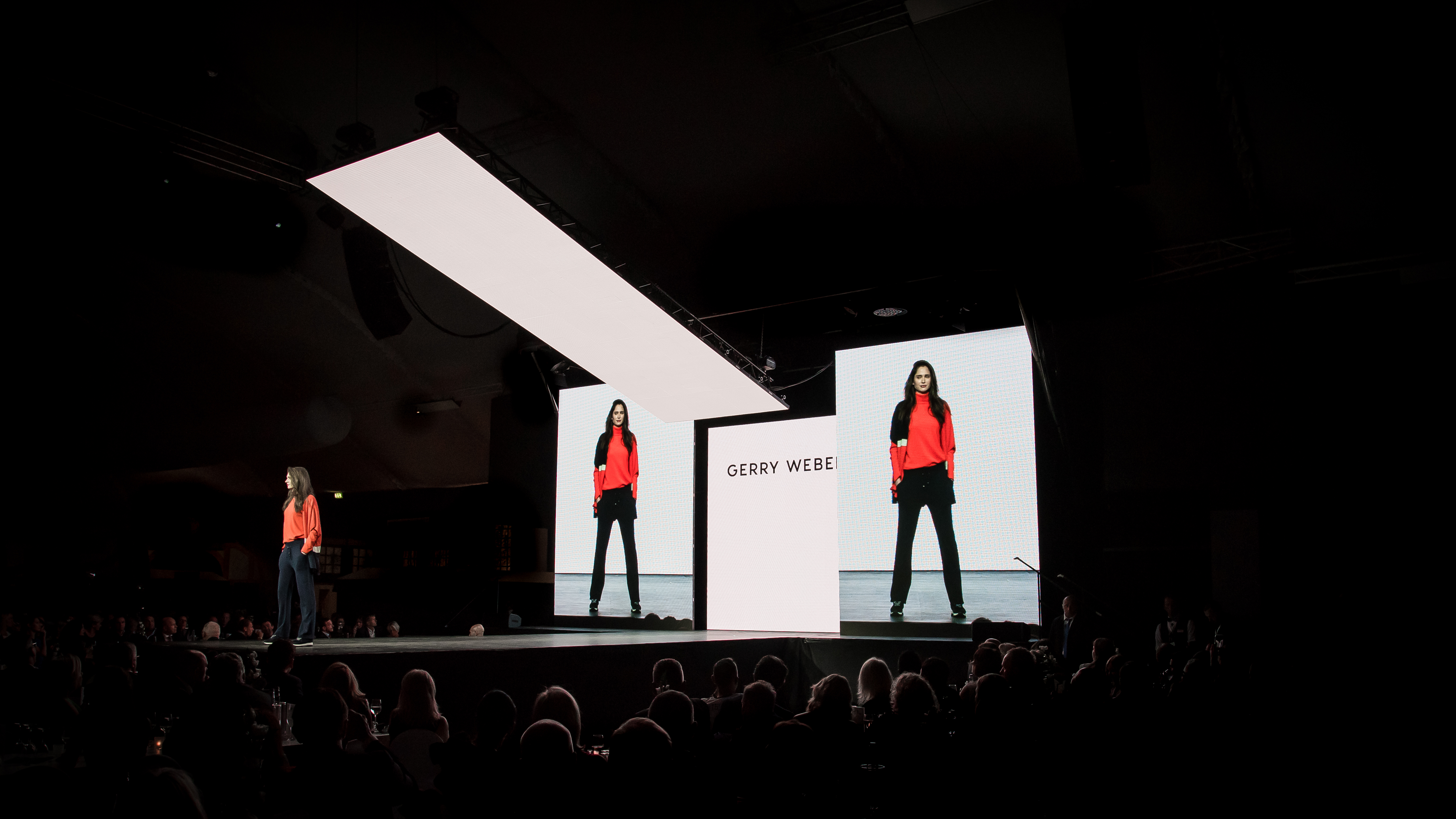 Before an audience of around 1600, the international supermodel Eva Herzigova announced the opening of the Gerry Weber Fashion Show 2018. Our stage design and imaginative presentations gave the four multifaceted brands - GERRY WEBER, TAIFUN, talkabout and HALLHUBER - the chance to shine. Scenographic choreography was the chosen vehicle for putting the brands across. The striking 'X factor module' on the stage ceiling, in combination with digital panels on the back wall and media projections, created ever-changing spatial scenarios. The slogan 'Look closer' determined the media content down to the last detail, while the patterns and structures encouraged spectators to immerse and lose themselves in the collections.