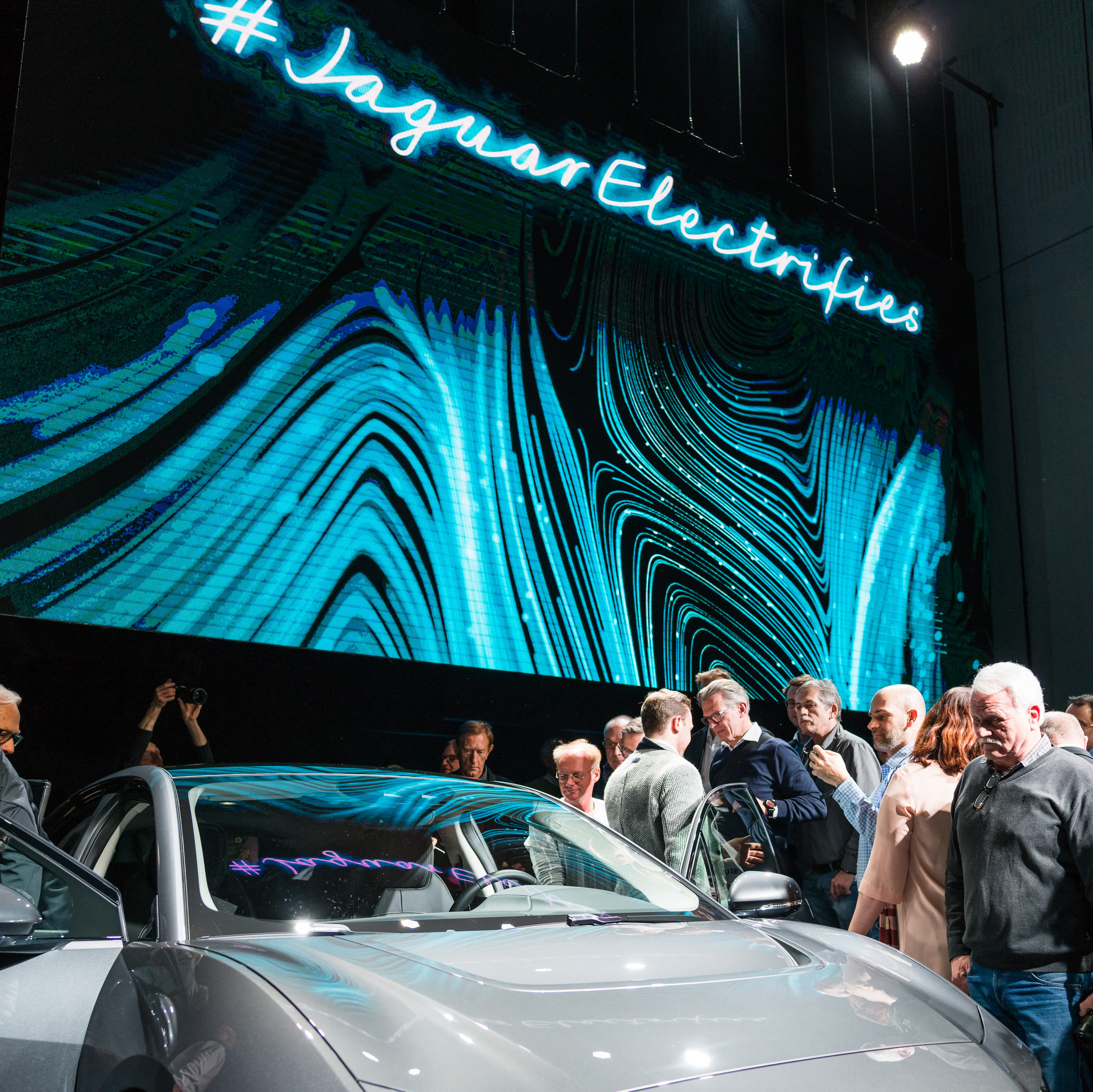 On 1 March 2018, before an audience of 320 selected guests, the world premiere of the first fully electrical SUV, the Jaguar I-PACE, took place in Düsseldorf. We had the honour of realising this exclusive unveiling in the exhibition room of the famous K20 Museum of Modern Art. In the style of a British TV show, the 40-minute world premiere was streamed live from the Magna Steyr factory in Graz directly to Düsseldorf. Exciting infotainment relating to electromobility was accompanied by an 'electrifying' light installation. Immediately following the unveiling, the 320 guests were actually able to experience the Jaguar I-PACE live, before the evening came to an end with a programme of electronic music.