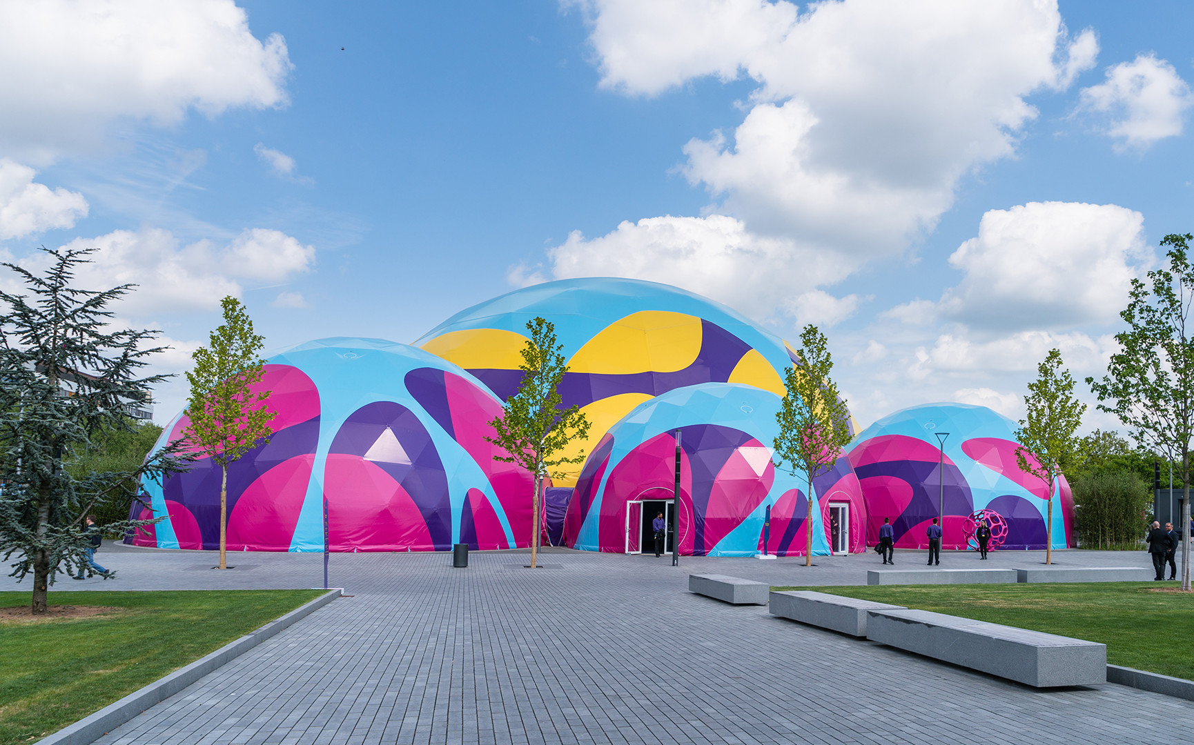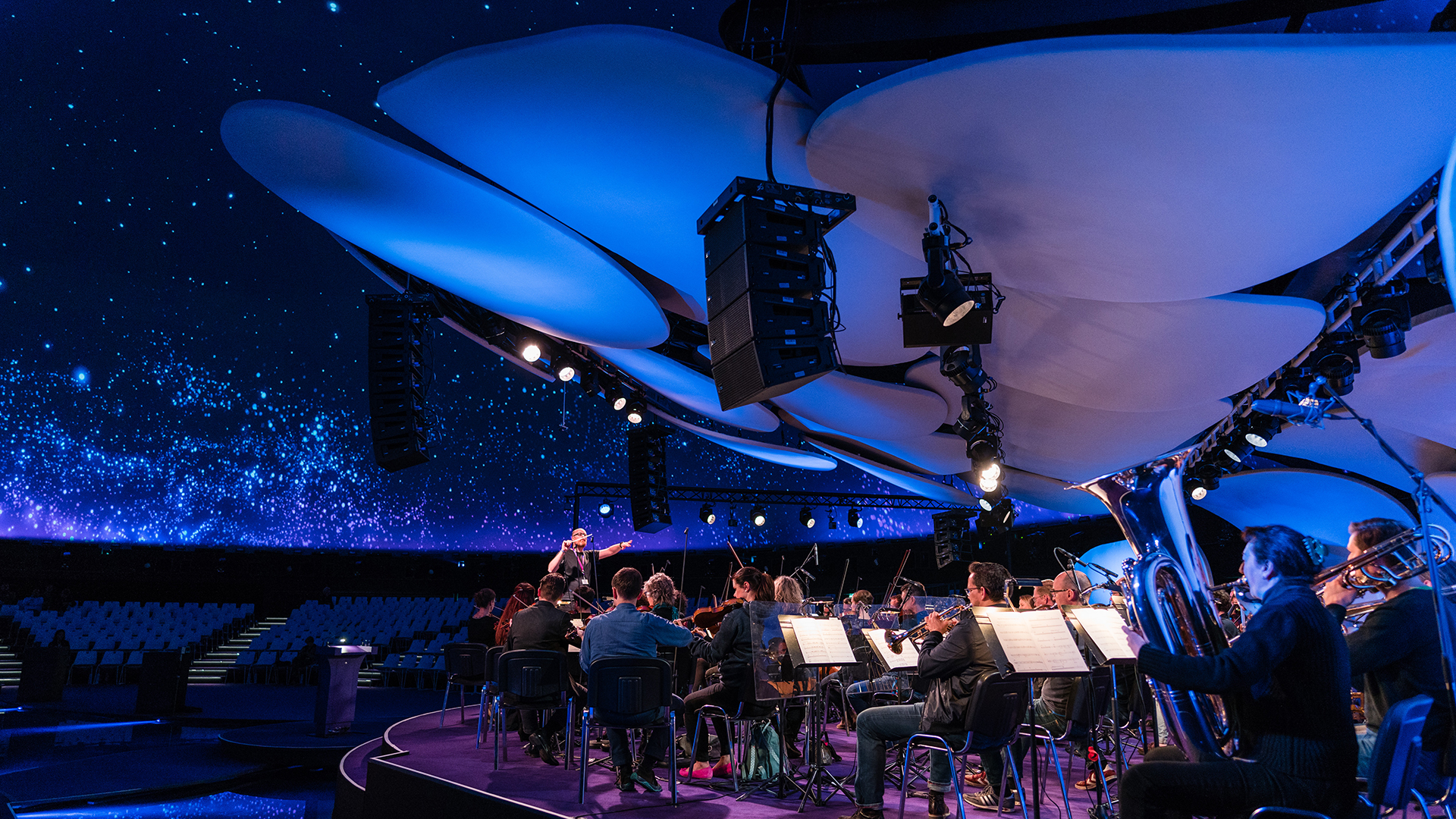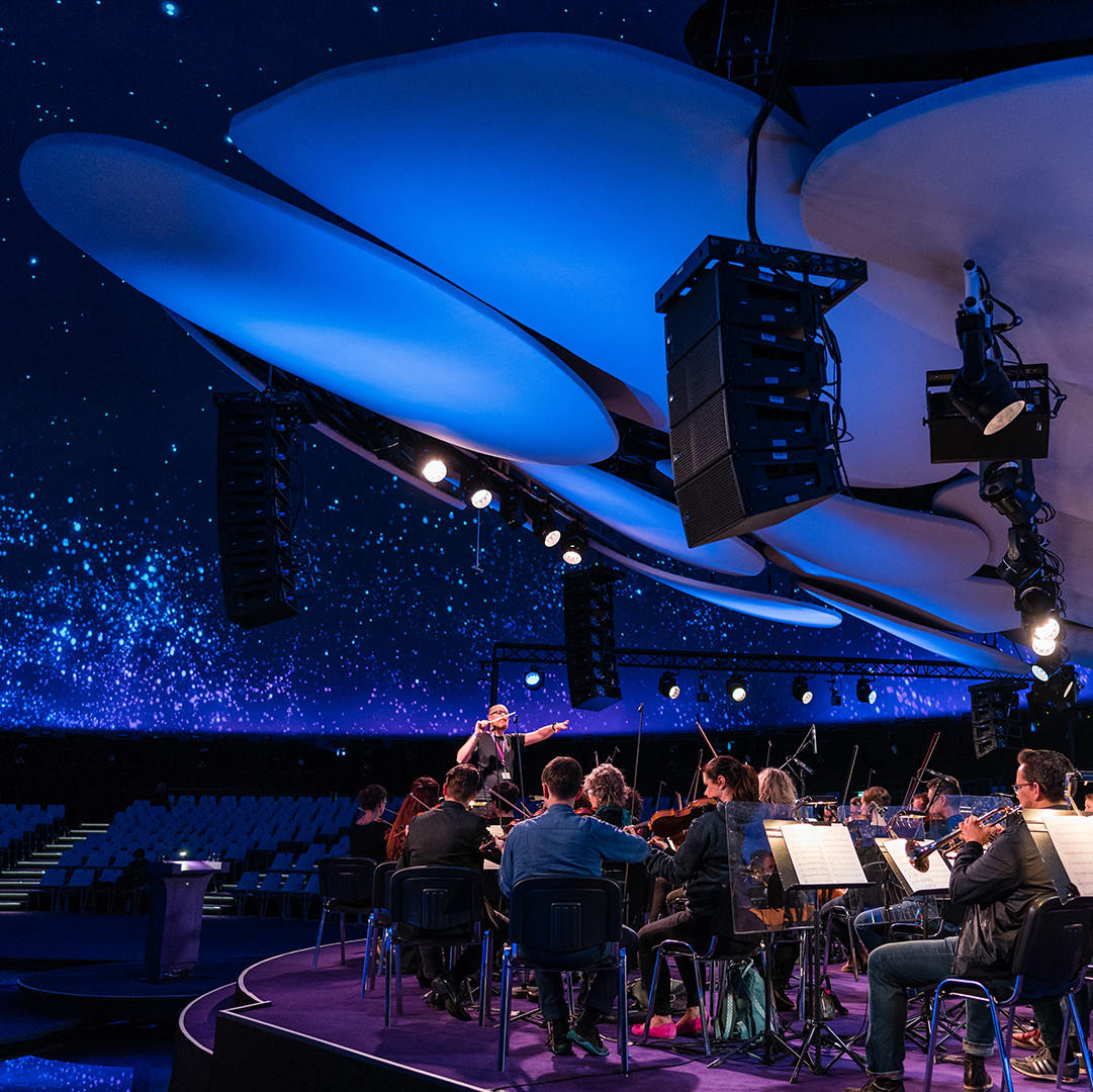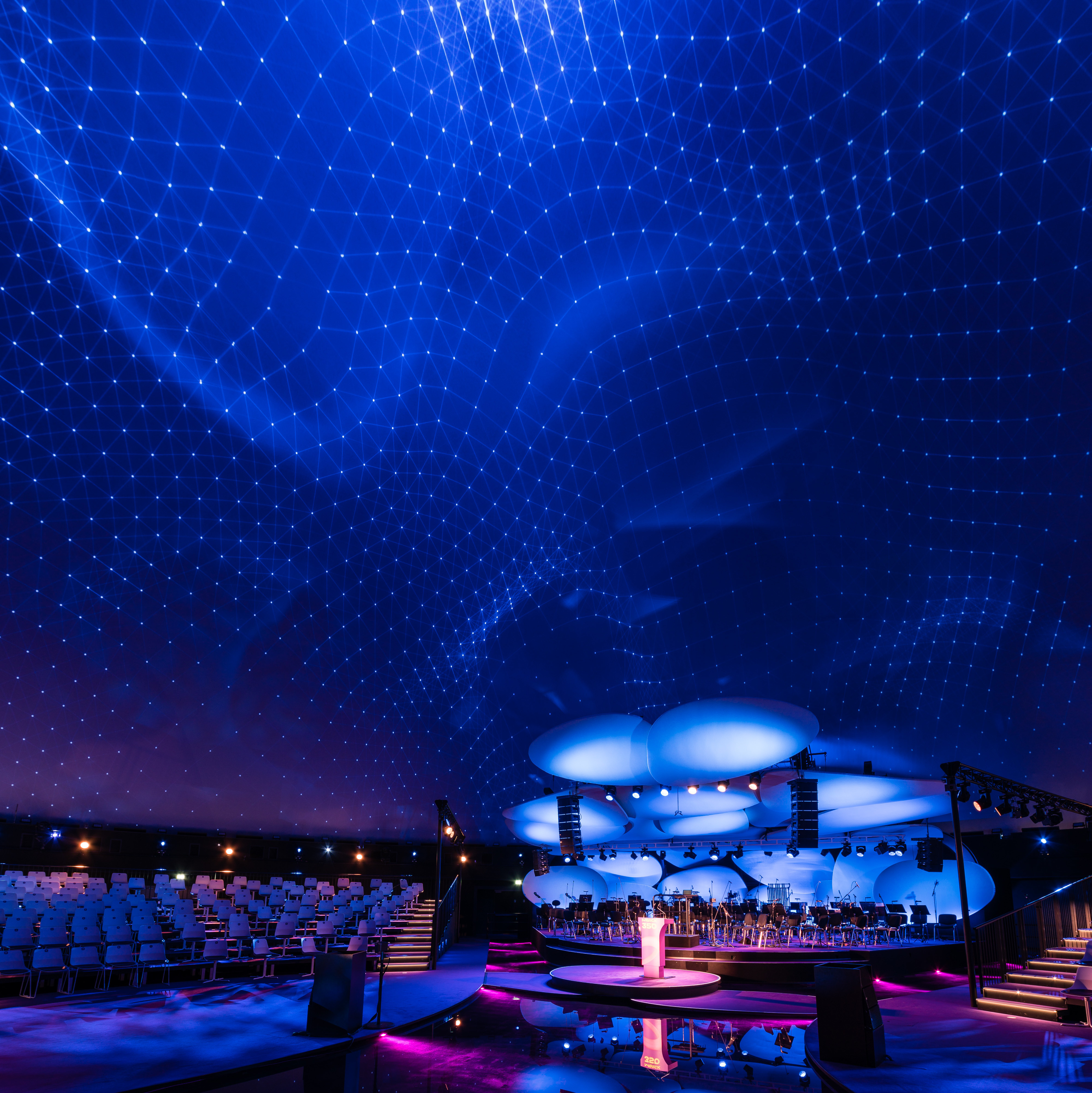 A 360 degree dome film linked significant milestones in the company's history with contemporary scientific and historical events. A water basin, which we had specially designed for the ceremony, emphasised and enlarged the central inner space and accentuated the effect of the media showings with its animated reflections.
