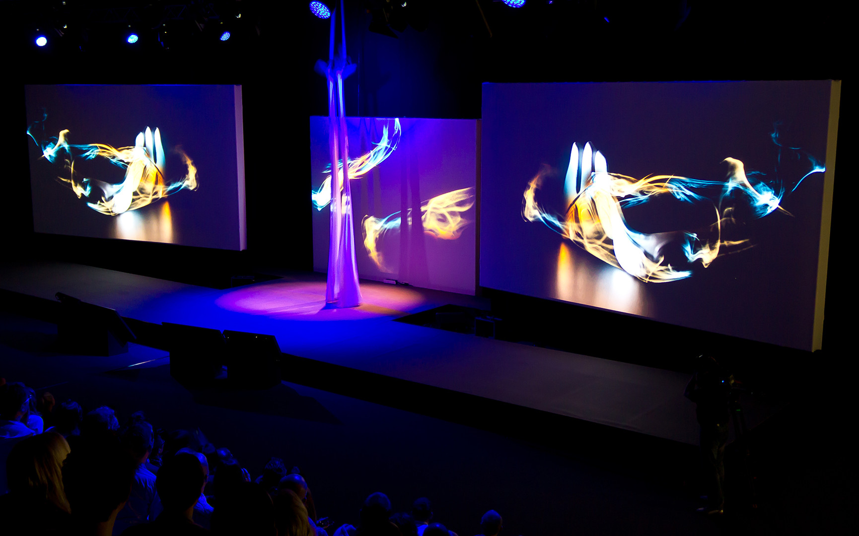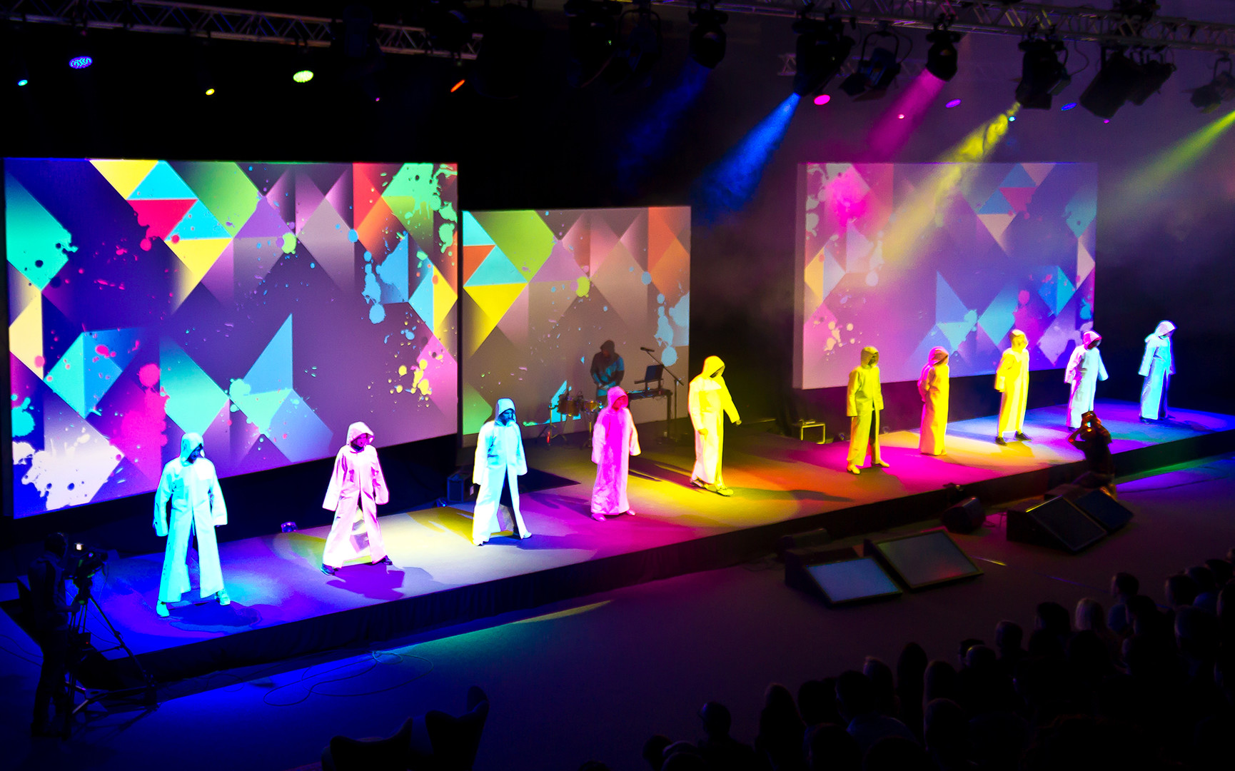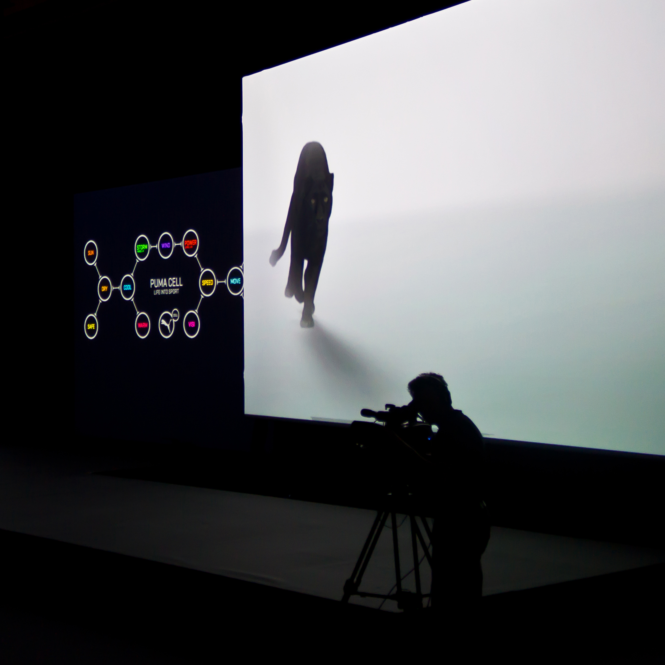 At the PUMA 360° Meeting, 800 leading employees from all over the world experienced the innovations of the Lifestyle and Performance product divisions in a staging of contrasts: loud and quiet, brightly colored and black and white, cat walk and street dance, parkour runners and cloth acrobatics. Each collection with its own identity, in a symbiosis of the various forms of presentation with multimedia elements and the beats, sounds and voices of a live music performance that captivated every participant.