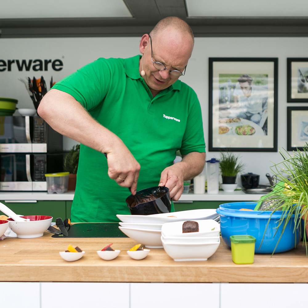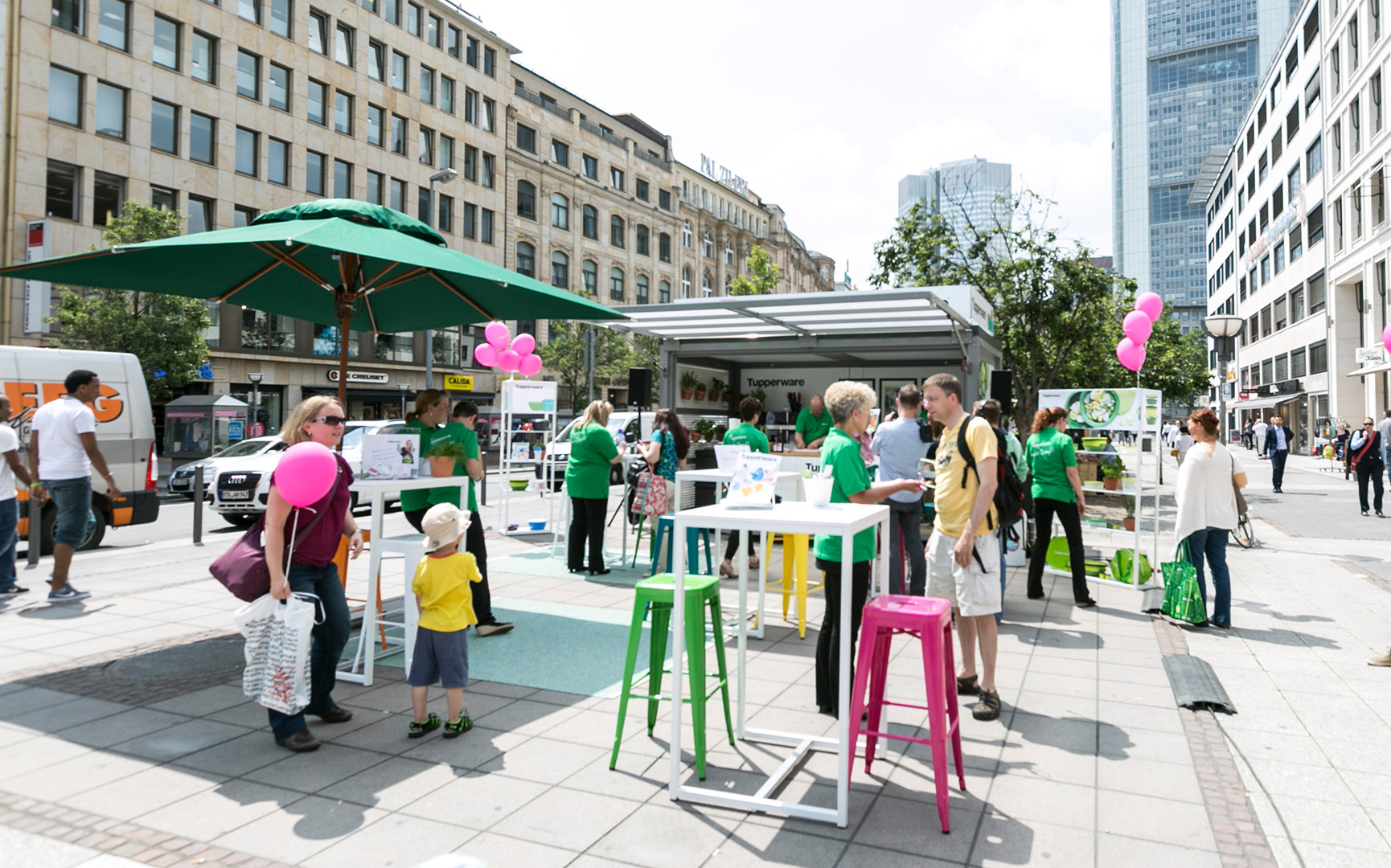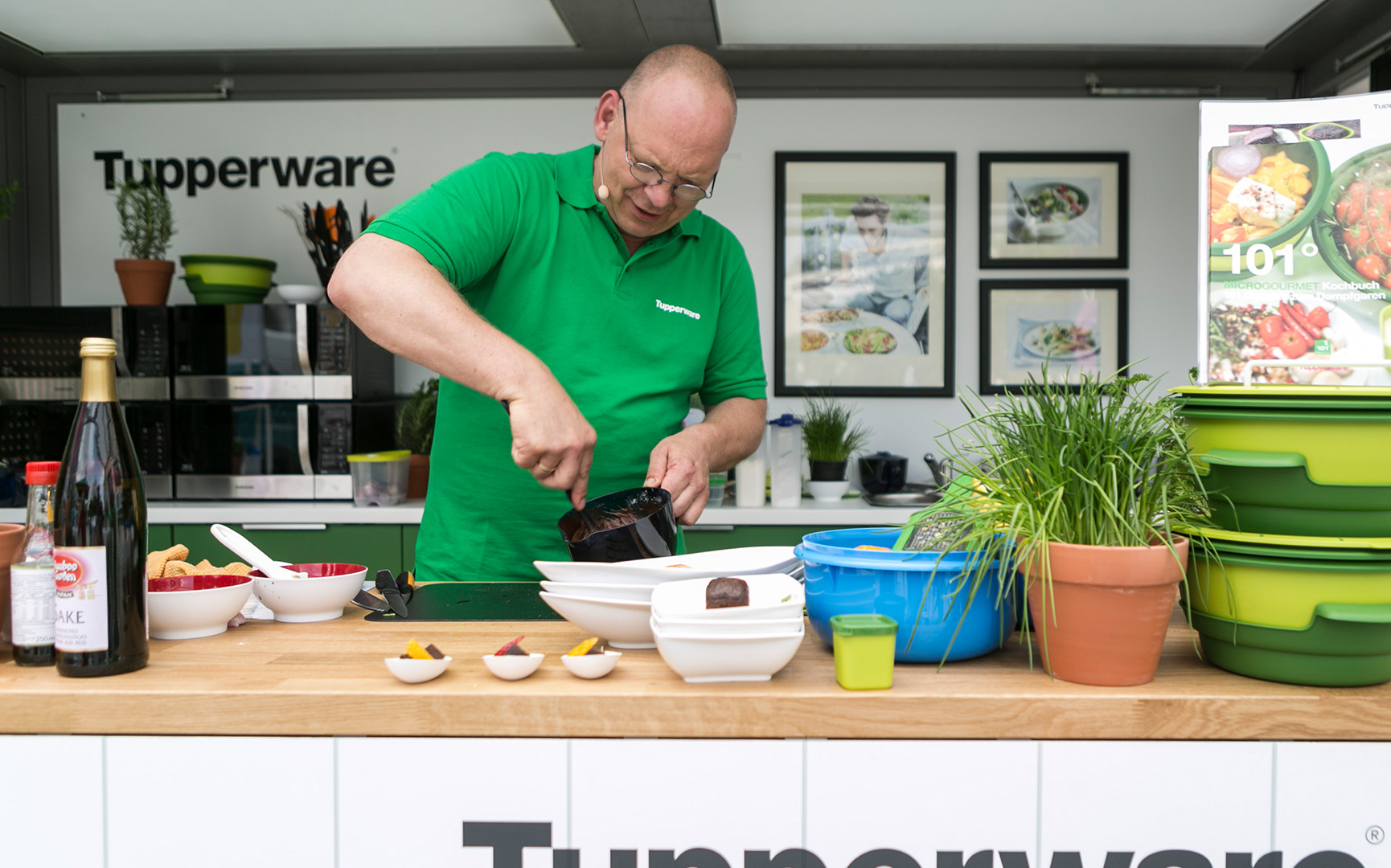 For the first time ever, we are bringing the legendary Tupperware parties to the streets as an event. The roadshow will visit 15 different cities across Germany to present Tupperware's product of the year, the first microwave steamer, the Tupperware MicroGourmet. We were responsible for the concept, organization, and implementation of the roadshow. We created a unique look for the tour by designing a cozy lounge with a kitchen and guest area. A long table and smaller table islands invite visitors to sample the freshly cooked delicacies together.