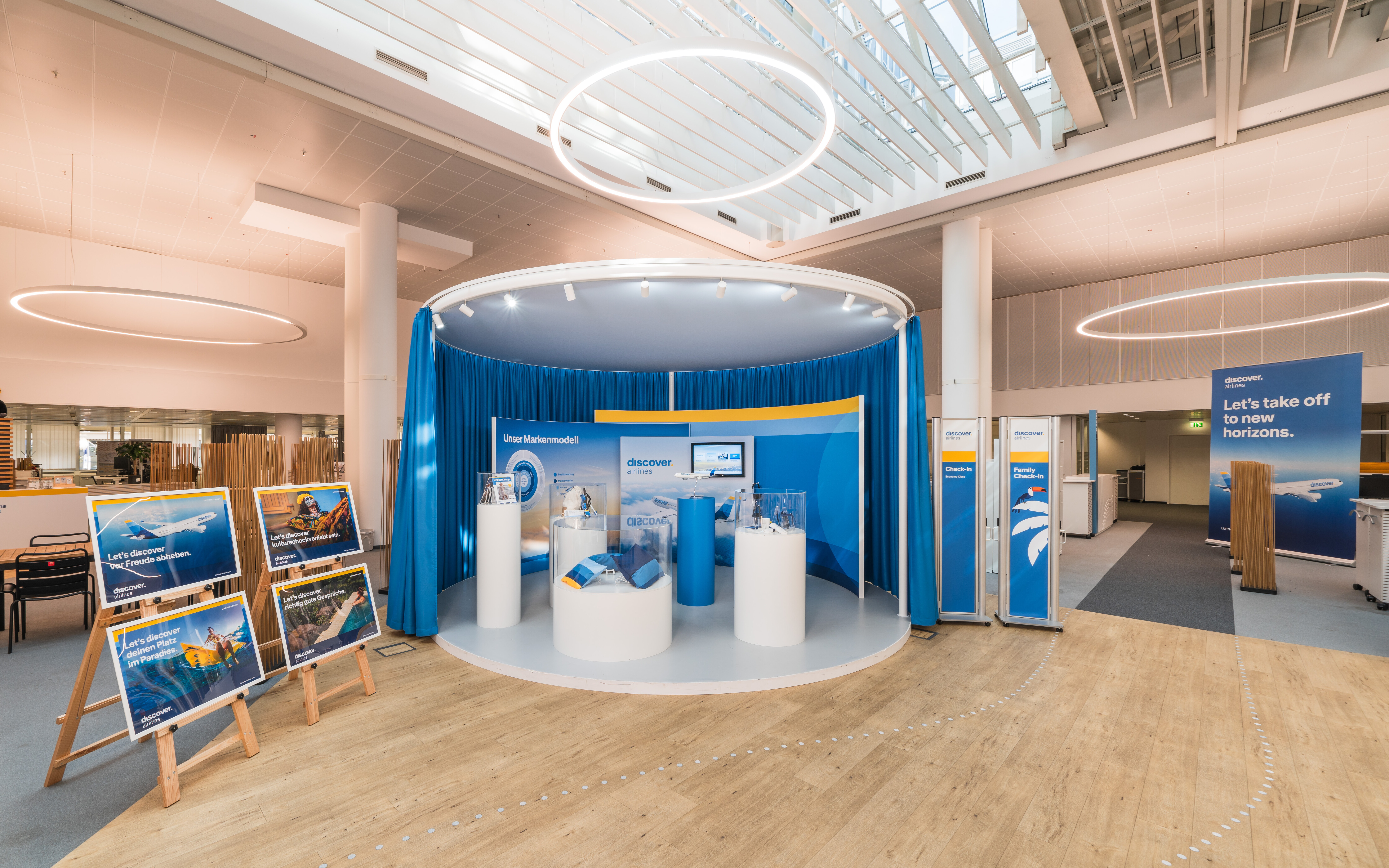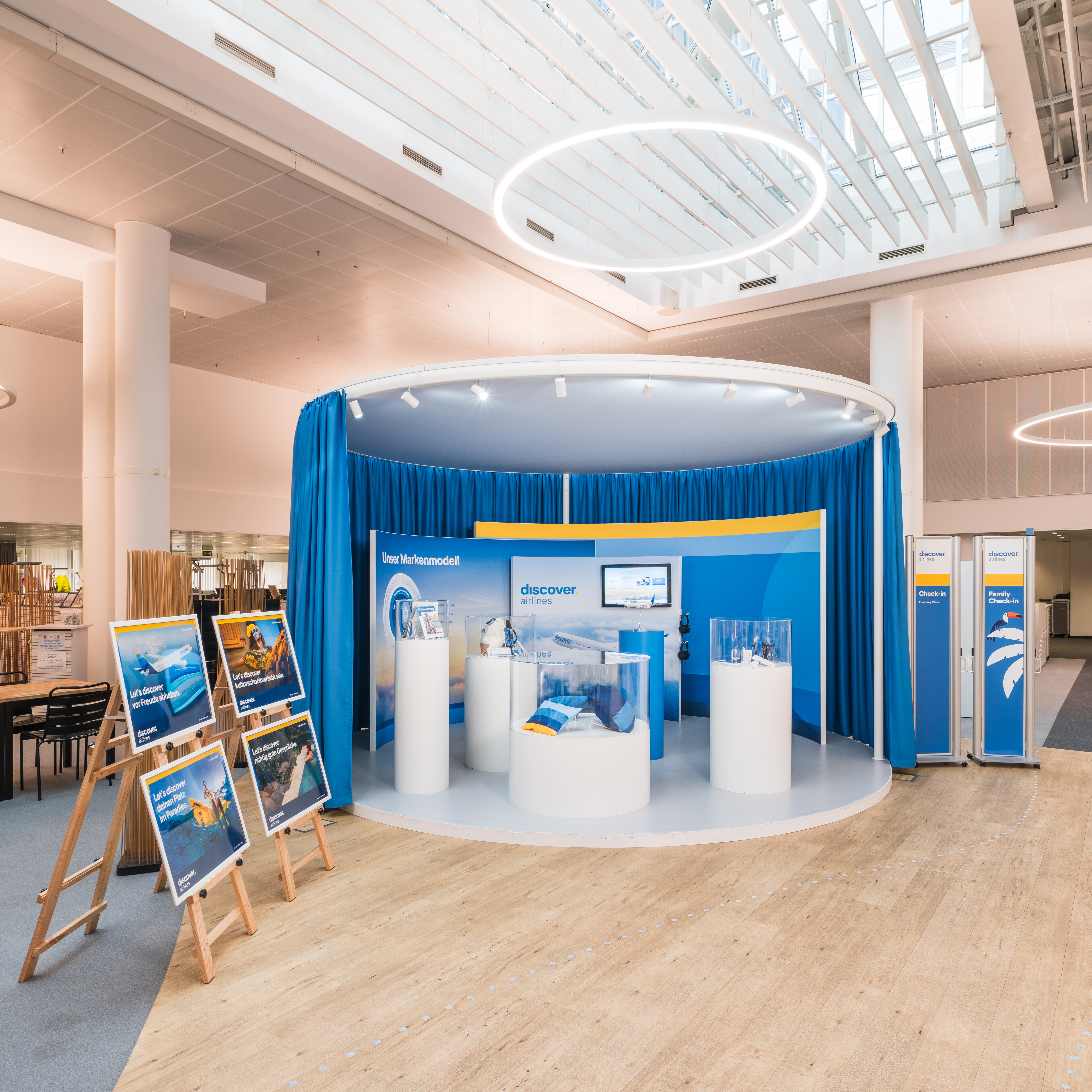 We were responsible for the spatial design of the brand for the airline Discover Airlines. The subsidiary of the Lufthansa Group – formerly Eurowings Discover – presented its new look and name as “Discover Airlines” for the first time.