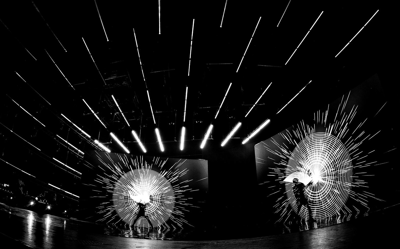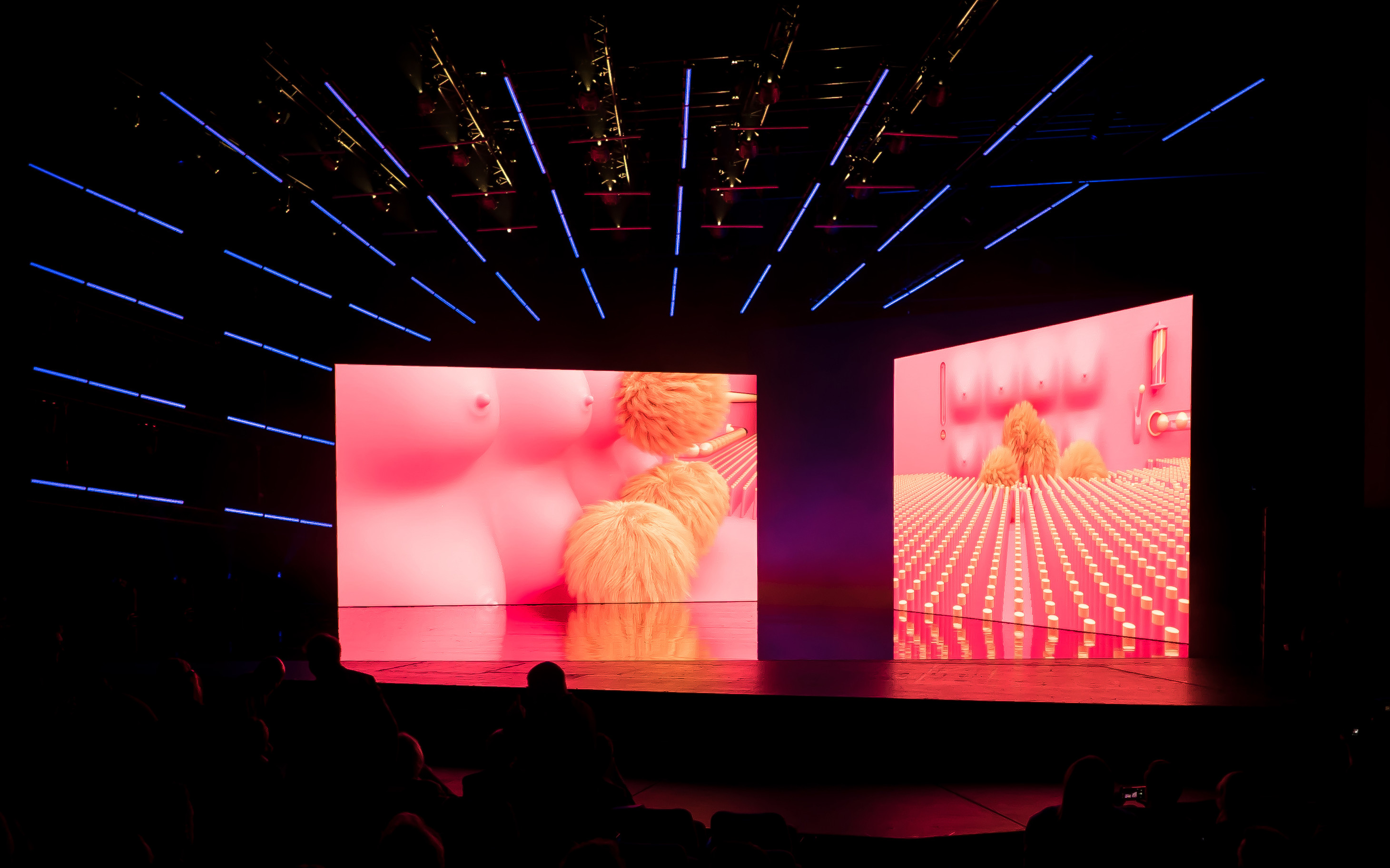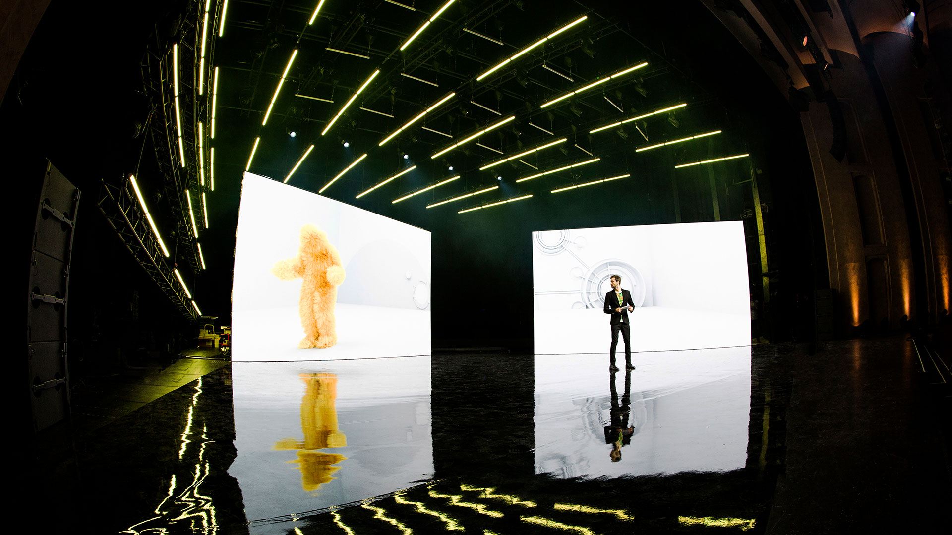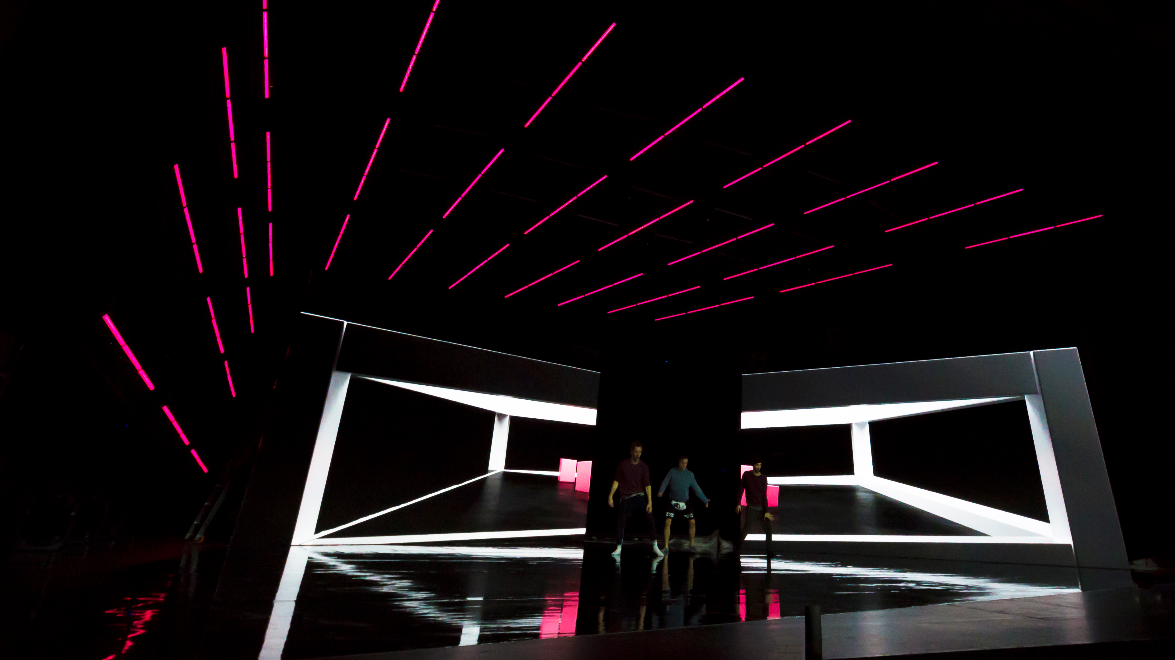 Two screens, freely positioned in space on a mirror surface, created extra visual depth for the stage while at the same time giving the spectators a completely new perspective. With artistic media content from Congaz, Björn Hermann's lighting design and the minimalist design of the stage area, we were able to create a different space for each item on the programme.