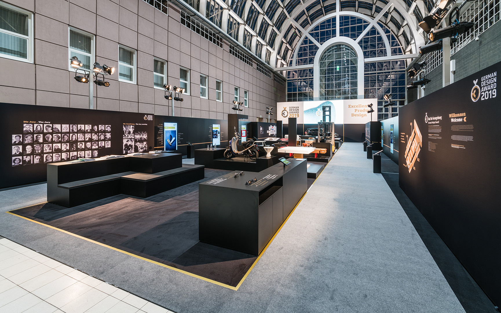 Restructuring, backed up by thematically clear zone demarcations, created a manageable and well-defined experience for visitors to the show. The simple typology and minimalist forms and colours, in keeping with the branding of the Council, resulted in an impression of restraint, directing the visitor's attention to the things that really counted here - the prizewinning design projects themselves, as an object of haptic or digital perception.