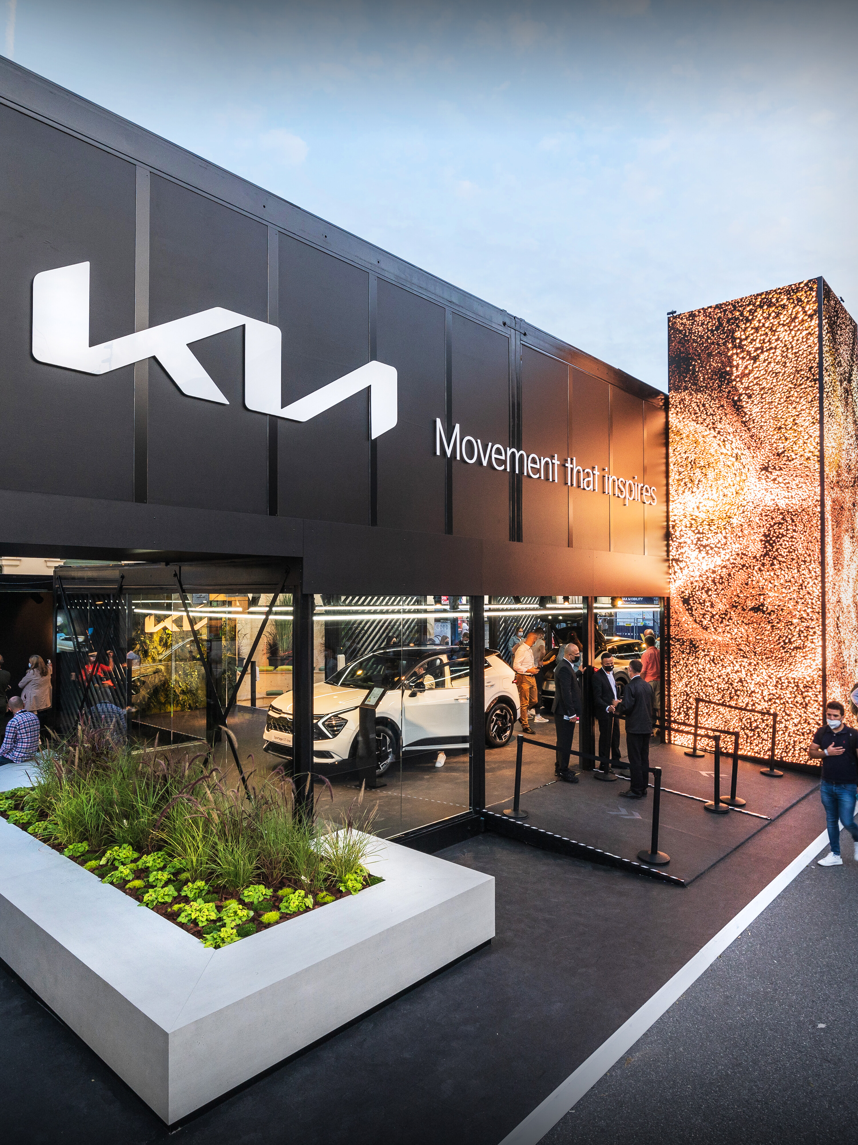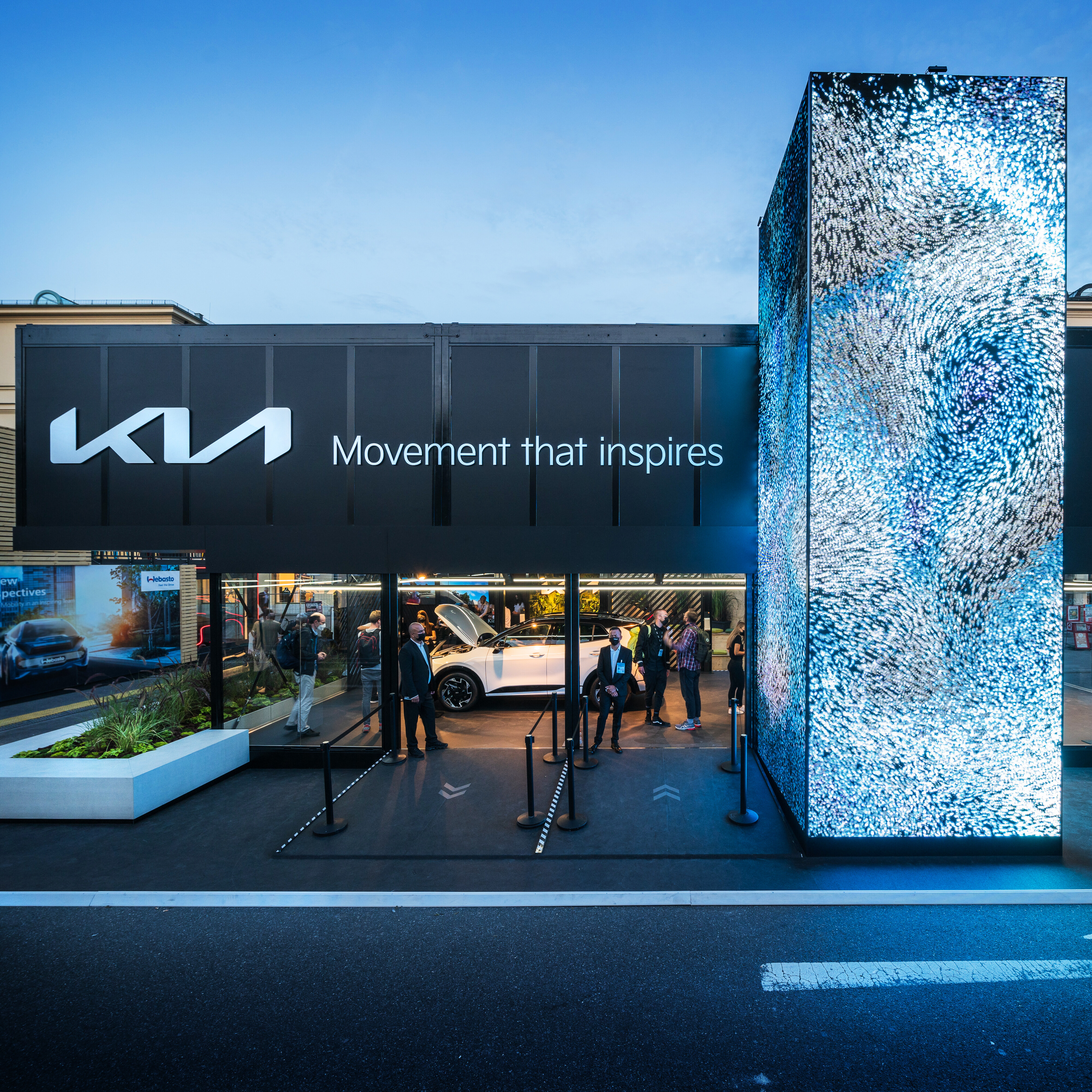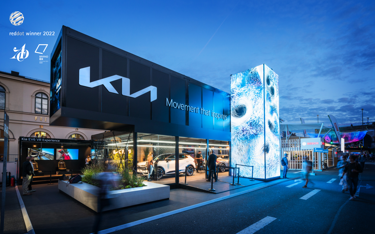 In line with Kia's philosophy of using people's movement as a source of inspiration for their products, we developed a holistic design concept together with our friends from bright! and transformed Kia's new corporate identity into a spatial, urban and interactive experience.