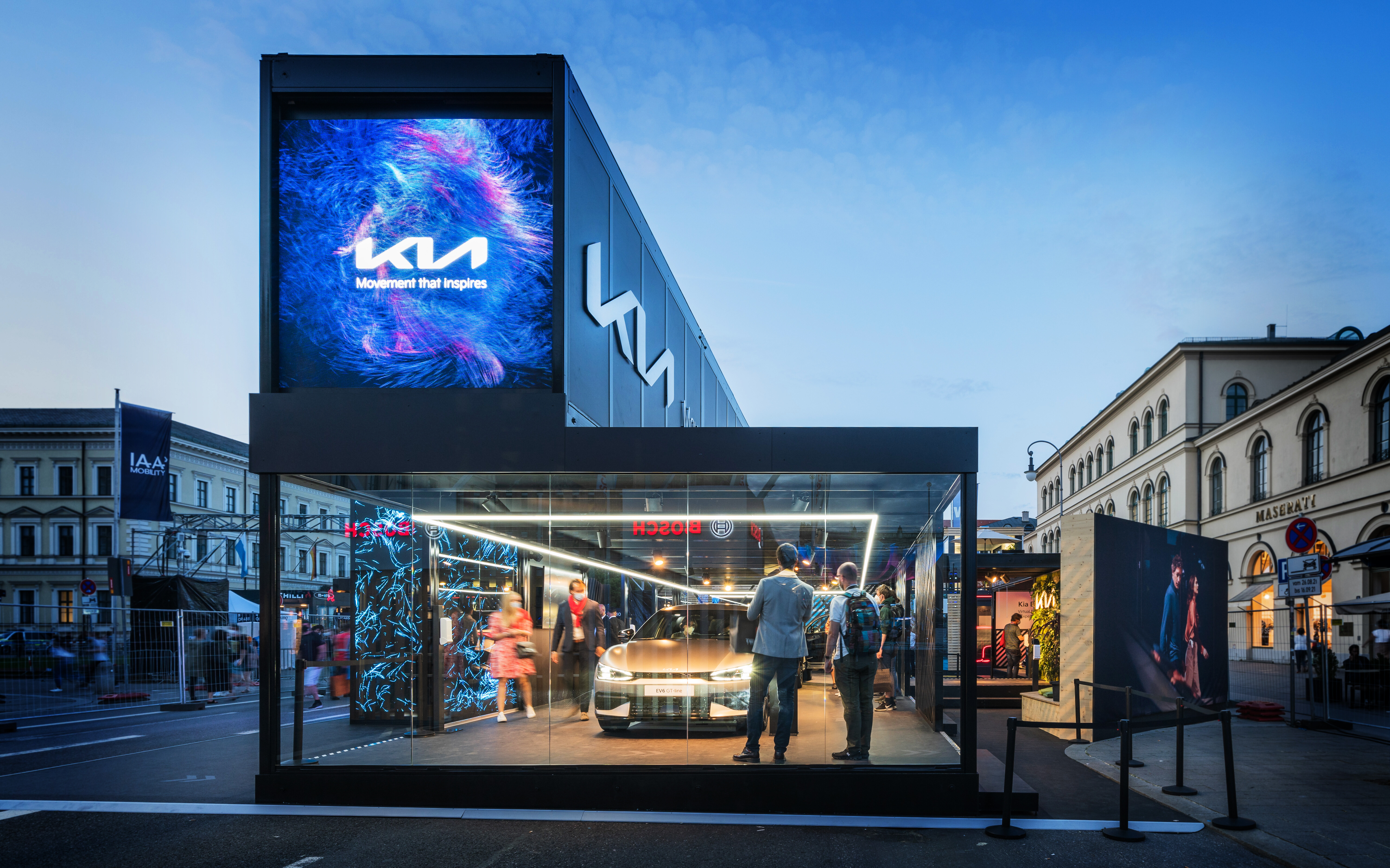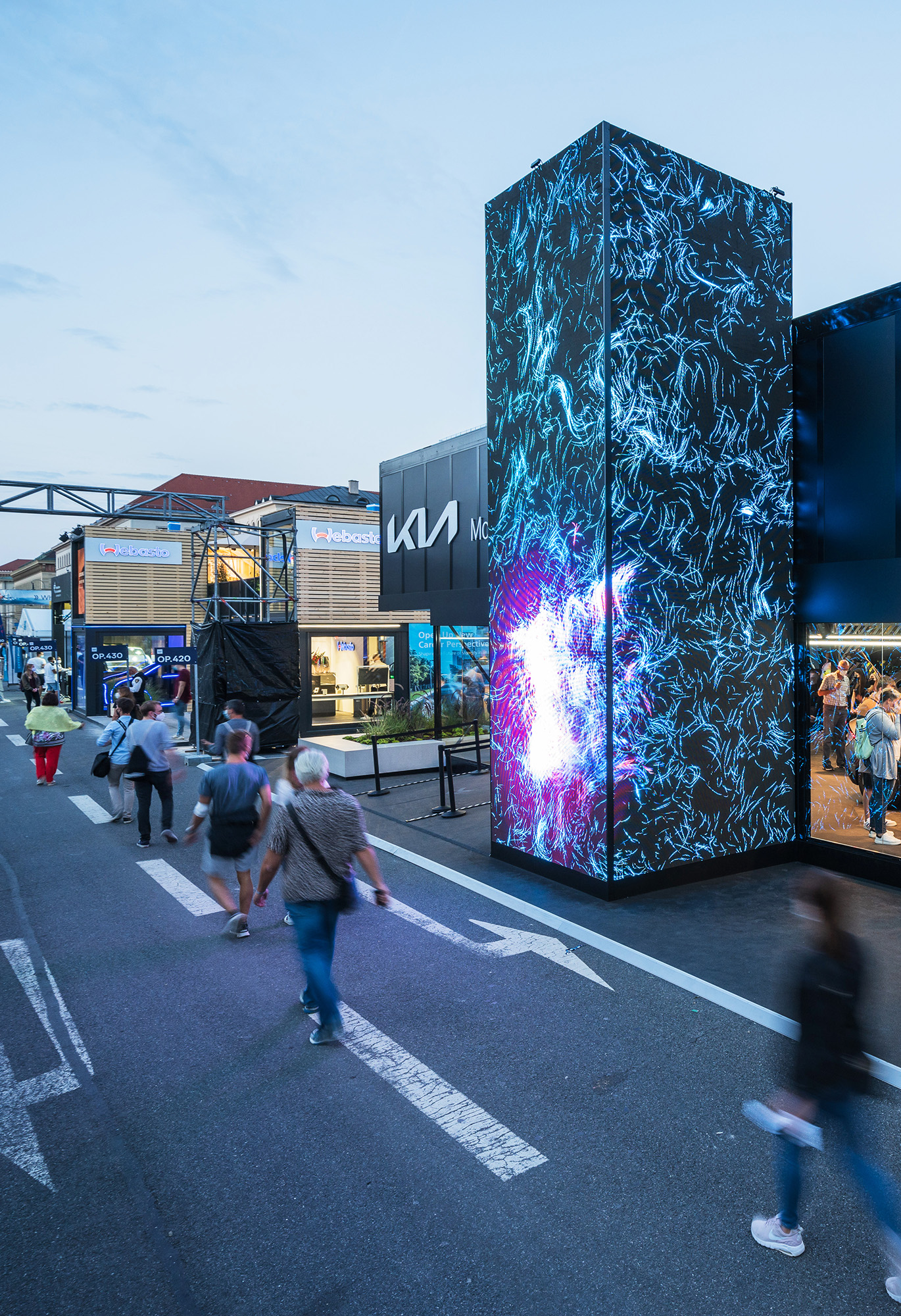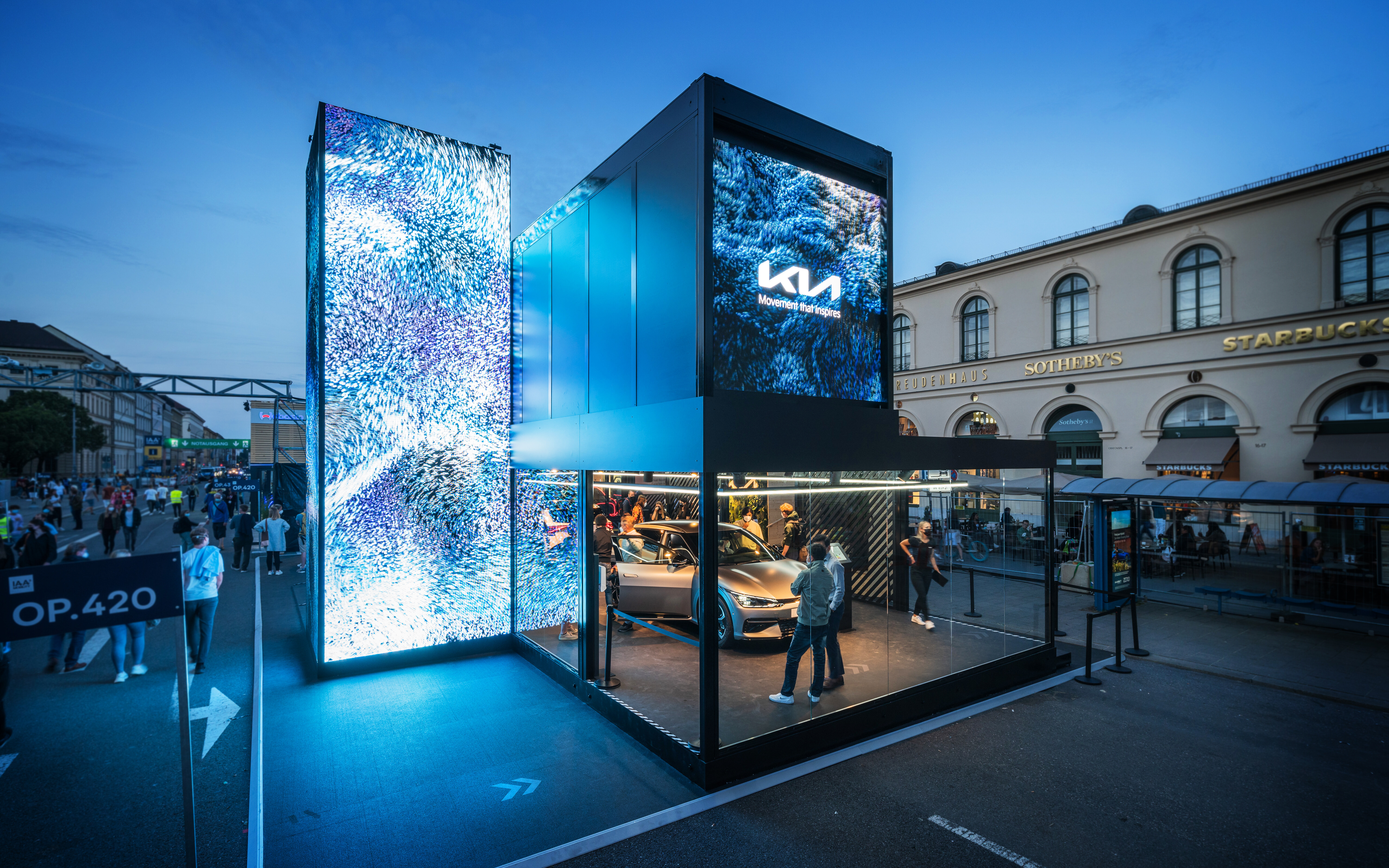 In line with Kia's philosophy of using people's movement as a source of inspiration for their products, we developed a holistic design concept together with our friends from bright! and transformed Kia's new corporate identity into a spatial, urban and interactive experience.