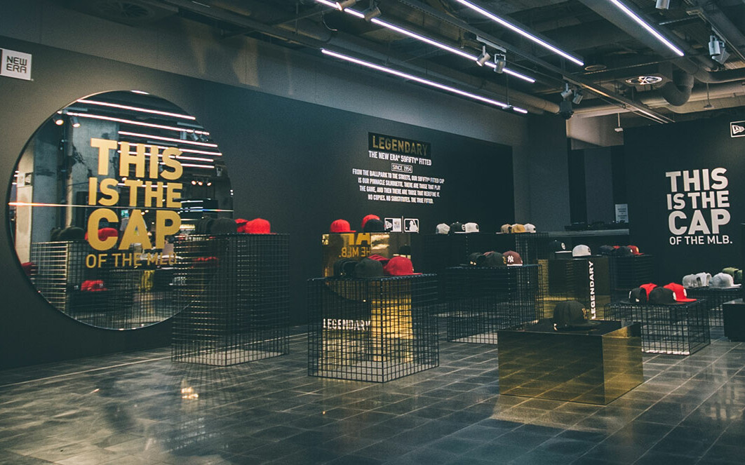 New Era has always been known for its nearly 100 years of history and sense of style. In a pop-up zone at Munich's Oberpollinger department store, we had the exciting task of presenting the brand in a sophisticated way on 50 square meters of space alongside the regular sales area. Simplicity and recognizability have always been the hallmarks of the caps produced by this leading global manufacturer. In keeping with this, we also chose the design of the temporary exhibition, which revolves around the classic – the iconic 59Fifty Fitted Cap, the official cap of Major League Baseball (MLB). We opted for an urban and abstract design with a few, strategically used CI colors, which gives the individual elements enough space to make an impact.