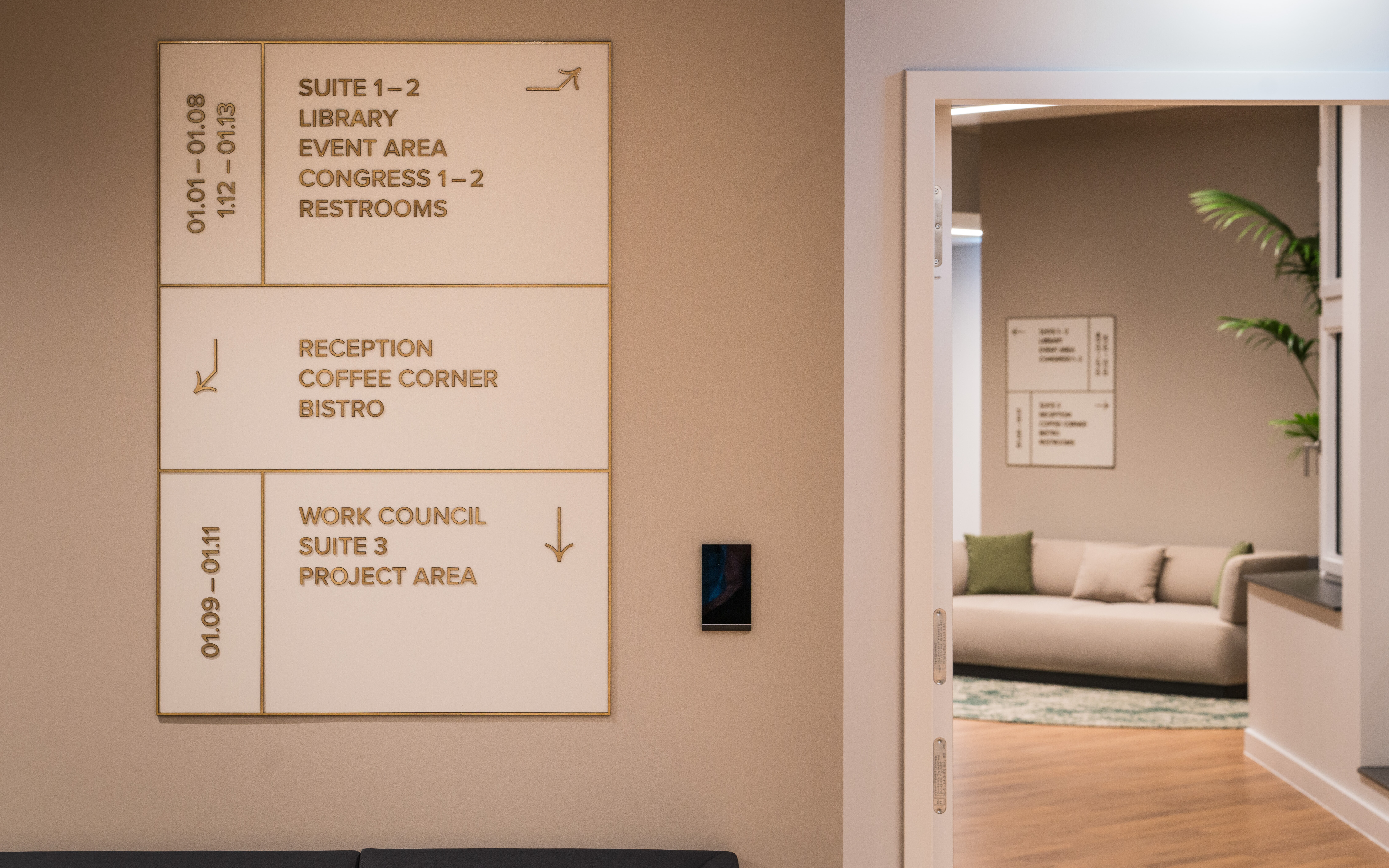 - Suites – Differently designed, flexible meeting rooms for workshops, teamwork and creative processes that adapt to different usage needs.